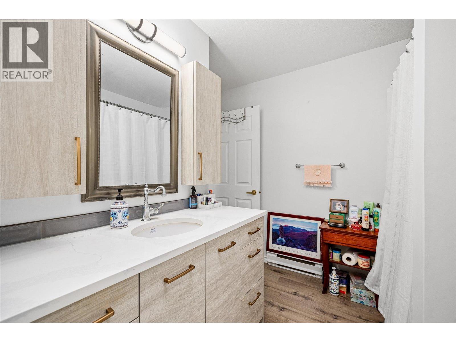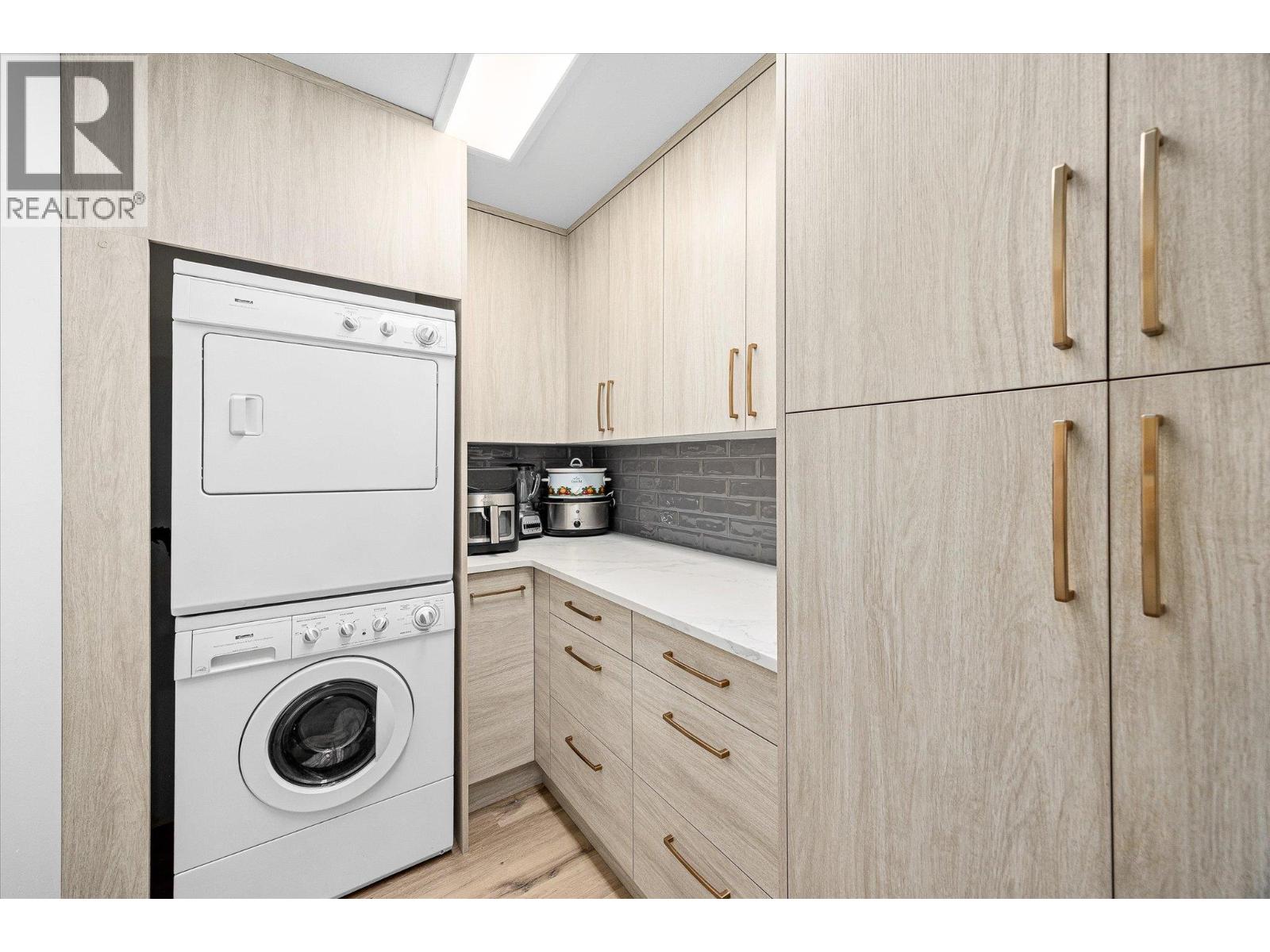 Tastefully renovated condo at The Colonial! Entering the unit, you’re greeted by a thoughtfully updated kitchen complete with luxury finishes like quartz counters, custom cabinetry, modern lighting, and a sizeable pantry/laundry room combo with additional counter/storage space. Furthermore, the unit features two bedrooms, a den, a unique jack-and-jill bathroom setup connecting the 4-piece ensuite to a second 2-piece bath, and a nicely-sized patio space! Residents at The Colonial enjoy great amenities including a social lounge with a kitchen, a library, a fitness area, a games room, and a large dining room! Additionally, the complex boasts a great central location near Kelowna’s downtown core, within walking distance to a wide array of amenities like restaurants, parks, entertainment, and more! (id:58842)