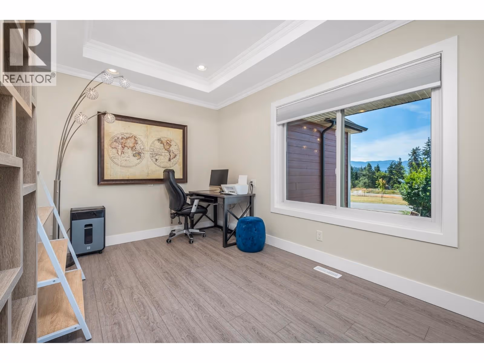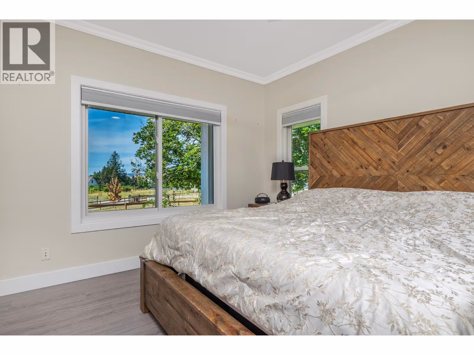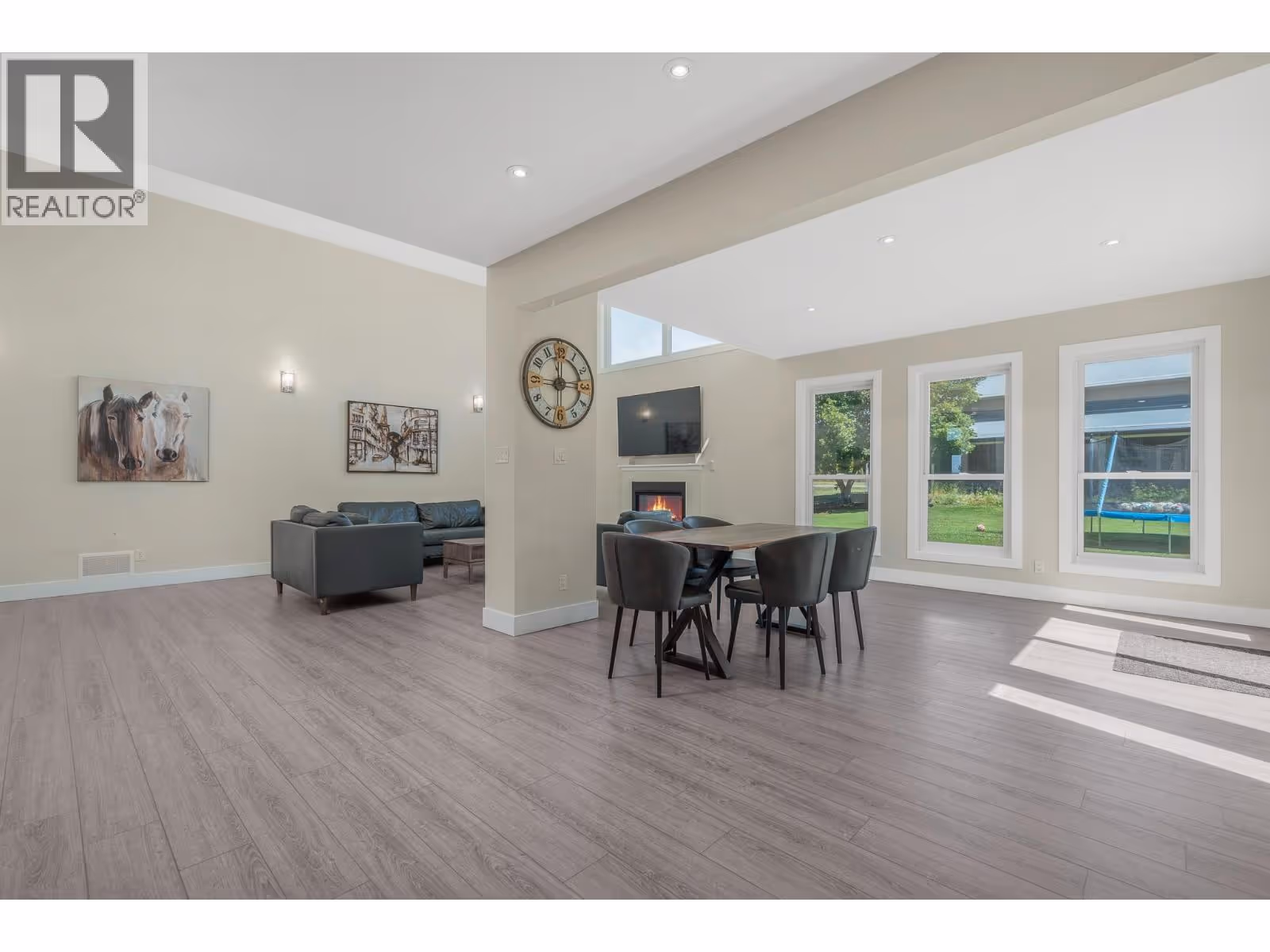 Set on 3 flat, landscaped acres in the heart of the BX, this property really has it all-space, privacy, and versatility. The home is 4 bedrooms plus an office with 5 bathrooms, and it feels bright and open with soaring 19-foot vaulted ceilings, huge windows, and brand-new laminate flooring throughout. The kitchen has oak cabinets, granite counters, and flows nicely into the main living space. The primary bedroom is on the main floor and has its own expansive ensuite with heated tile floors. All of the windows in the home have been replaced, which is a huge bonus. Downstairs is a newly renovated walk-out basement with a big rec room, a large bedroom, full bathroom, loads of storage, and direct access outside. The shop is one of the best features—37’ x 59’, fully heated with 16-foot ceilings, two brand-new 14-foot overhead doors, a mechanics pit with a safety grate, a 2-piece bathroom, and gas radiant heat. There’s also an extra detached garage for even more space. The acreage is fully fenced, completely usable, underground irrigation, and plenty of room to add a pool. You get the peace and privacy of rural living while still being just minutes to town, schools, and amenities. (id:58842)