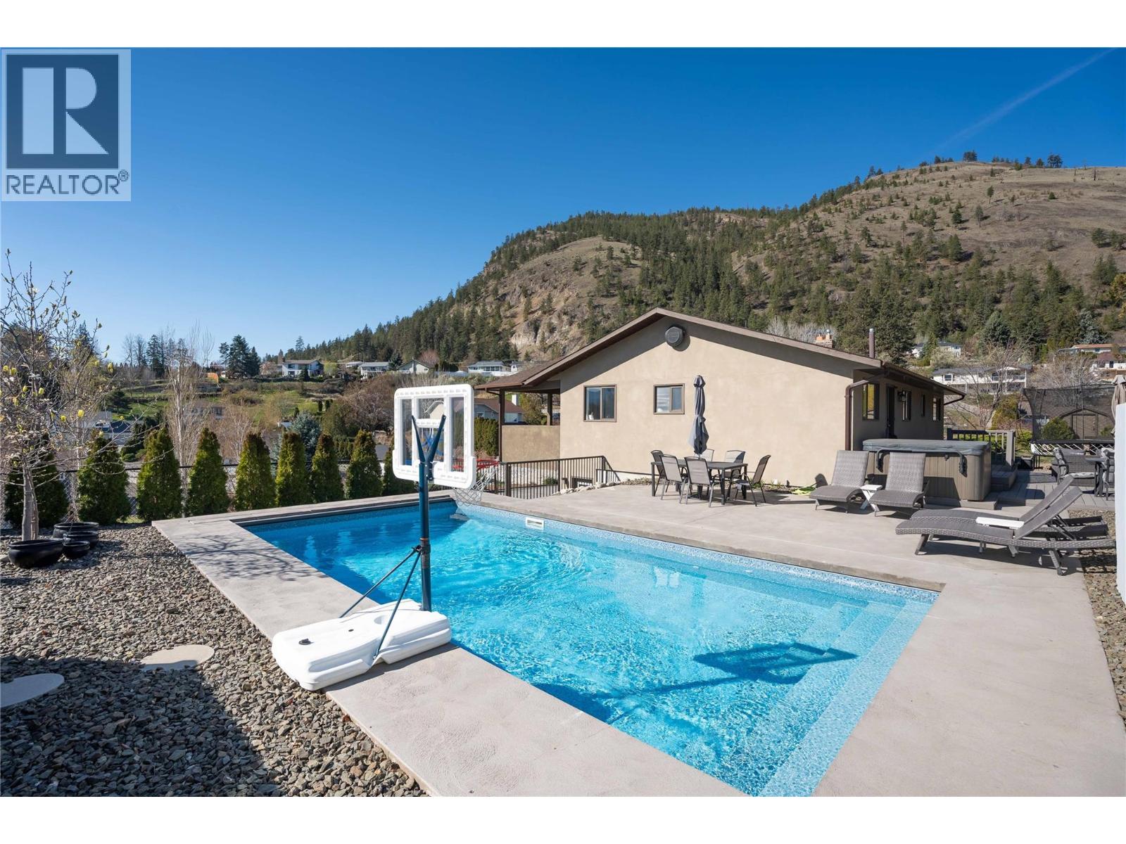 Welcome to this exceptional 4–5 bedroom family home set on a 0.37-acre lot, offering incredible outdoor living. The fully remodeled lower-level features vinyl plank flooring, a modern 3-piece bathroom with walk-in shower, a separate laundry room with added cabinetry and sink, plus two bedrooms and a spacious rec room complete with a gas fireplace. Upstairs, you’ll find an open-concept main living area with vaulted ceilings, engineered hardwood flooring, and plenty of natural light. The primary suite includes an updated 3-piece ensuite & walk-in closet, while two additional bedrooms provide flexibility—perfect for a growing family, nursery, or home office. The functional kitchen and dining area flow seamlessly onto a fully covered deck for seasonal use. Step outside to your private backyard oasis featuring a fully fenced yard, multiple patio spaces, a hot tub, and a stunning 14' x 28' heated saltwater pool (installed by Fun Water in 2020)—perfect for entertaining and cooling off in the summer. For safety and efficiency, the pool also boasts a powered auto cover with a secure keypad function to access. There’s also ample storage, a garden area, and underground irrigation. High-efficiency furnace, central air conditioning, and central vacuum. Plenty of parking for all the toys, plus a single garage with workshop/storage space and an attached carport. Homes like this are rare—book your private showing today and you could soon be living the Okanagan lifestyle at it’s best. (id:58842)