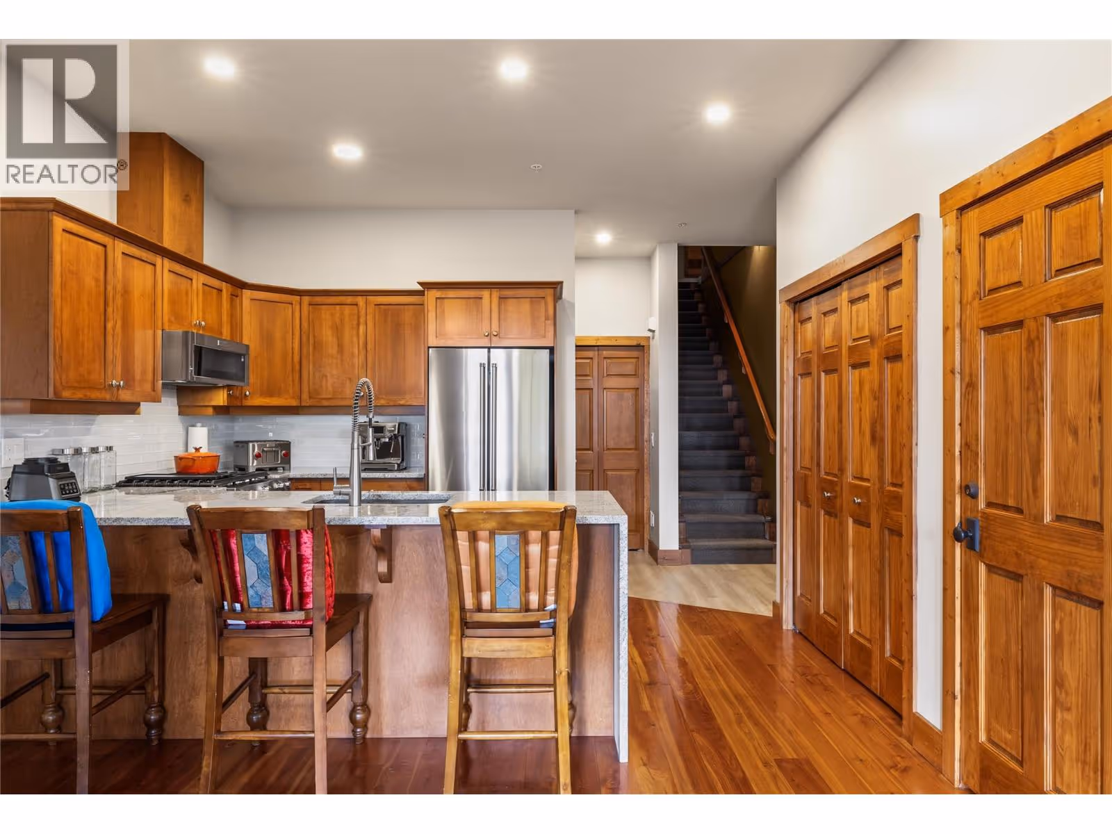 Welcome to Snow Pines—an owner-quality retreat designed for quiet living and effortless ski days. With a private garage and driveway, you’ll skip the winter shuffle and step into true ski-out access right from your door. After a day on the slopes, relax on your spa deck with hot tub, cold plunge, and firepit for evenings beneath the stars. Inside, the home blends alpine warmth with modern comfort: wood accents, a stone fireplace, and bright windows create a welcoming feel, while the chef-inspired kitchen features pro-style appliances, gas cooking, waterfall granite, and fresh finishes. Recent updates include new lighting, fresh paint, and a brand-new espresso machine to kickstart first tracks mornings. Sleeping nine, the layout offers a serene primary suite, a bunk room with trundle, and versatile flexible space. Unlike busy village condos, this property provides privacy, sunrise views, and exceptionally low strata fees (~$225/month), while lifts, dining, and services remain close at hand. More than just a hotel-style unit, it delivers quality, function, and mountain ease. With new direct flights to Kelowna from Los Angeles, Toronto, and Montreal, Big White has never been more accessible—just an hour from YLW, where Canada’s premier ski destination offers some of the best snow in North America. (id:58842)