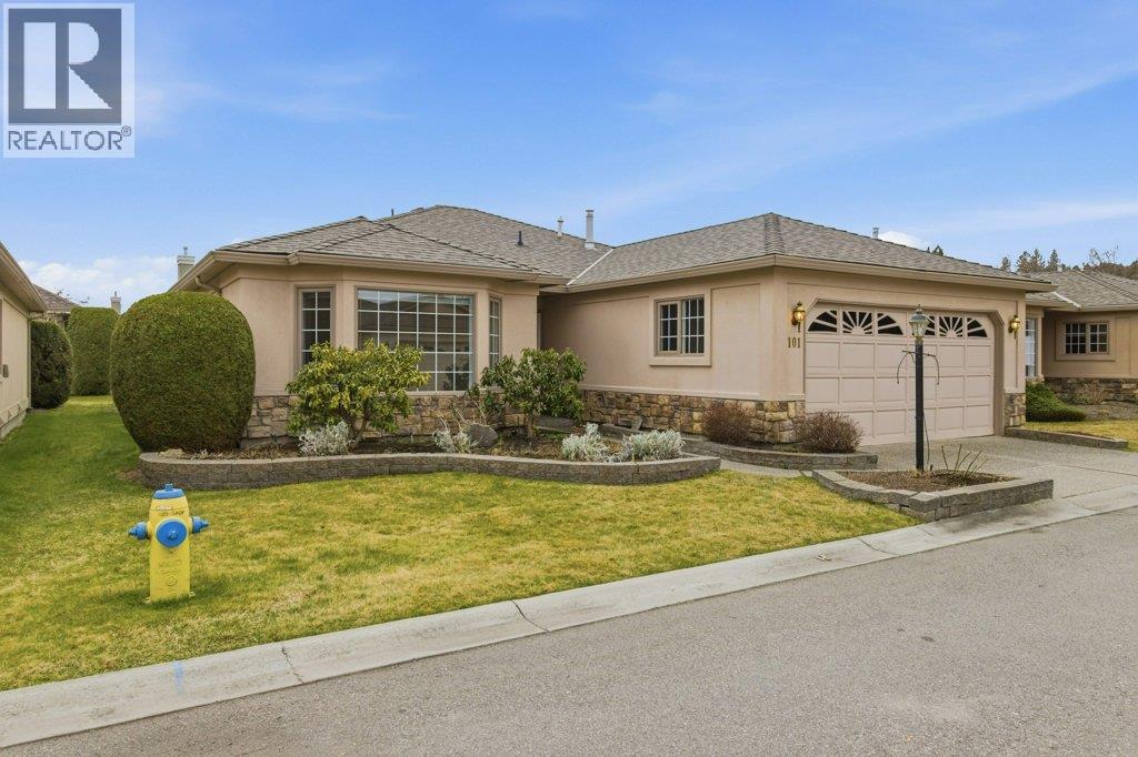 IMMEDIATE POSSESSION AVAILABLE!!! All Poly B plumbing has been removed, a brand new hot water tank has been installed, and the home has been freshly painted - ready for you to move right in! Beautifully maintained and immaculately clean this 2 bdrm/2bath home features a bright white kitchen with granite countertops, under cabinet lighting and stainless steel appliances. The spacious primary bedroom includes a walk-in closet and full ensuite, while the main bathroom offers a wheelchair accessible walk-in shower. Enjoy the comfortable family room off the kitchen with a cozy fireplace, large windows that bring in plenty of natural light, laminate flooring and updated light fixtures. Step outside to a private backyard with a spacious covered patio perfect for relaxing or entertaining. This 55+ gated community features beautifully landscaped grounds with tranquil water features as well as a clubhouse with indoor and outdoor pools and a hot tub. Pet restrictions: Up to 2 dogs, 2 cats, or 1 of each with a maximum height of 15"" at the shoulder. Located in one of Kelowna's most sought after retirement communities, this home offers comfort, convenience and a fantastic lifestyle! (id:58842)