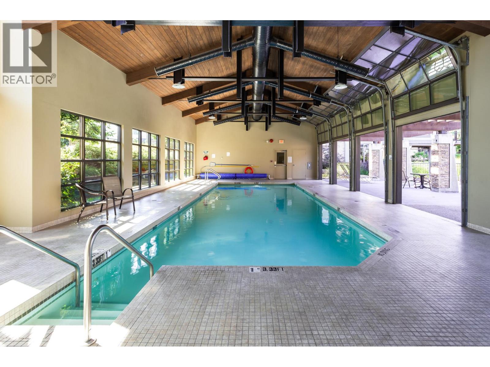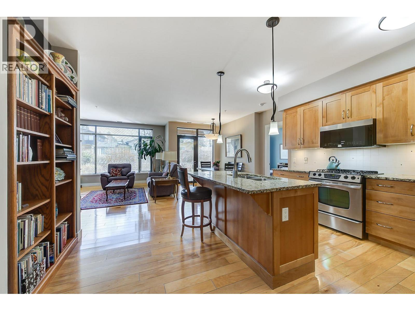 LUXURIOUS LIVING AT UPSCALE ""SOUTHWINDS AT SARSONS""...a 10 Minute walk to Sarsons Beach! This stunning 1497 SF Level Entry Condo with a Beautiful South facing Covered Patio on landscaped grounds is beautiful. Huge windows flood the unit with tons of natural light, high 9' ceilings and open plan give feeling of real spaciousness. Warm decor, engineered hickory hardwood in main living areas, tile in bathrooms and cozy carpets in bedrooms. Open Maple Kitchen with large island, granite counters, and under cabinet lighting. SS appliances, New Bosch dishwasher. Dining area with glass door to a covered concrete patio and garden area allows for seamless in-out fun. Generous Great room features a gas feature fireplace and huge wall to wall windows bringing the outside in. Double glass doors to an office off the entry - perfect for crafts. Extra large 5 piece Ensuite with separate soaker tub/shower, travertine style tile floors, high granite counters. Split design with private second bedroom with walk through closet and shared 3 piece bathroom with huge walk in tile/glass shower. Big laundry rm with cabinets. Southwinds is a ""Cut Above"" in Executive design and luxury living. Impressive open main entry, Sep clubhouse with full exercise facilities, big indoor pool and hot tub, & extensive landscaped and pond areas. Convenient parking with secure storage. After dinner swim in the Pool...Sure thing! Quick Workout? Wine with friends on the patio? Come on over! 1 dog or cat, 15"" or 12kg. (id:58842)