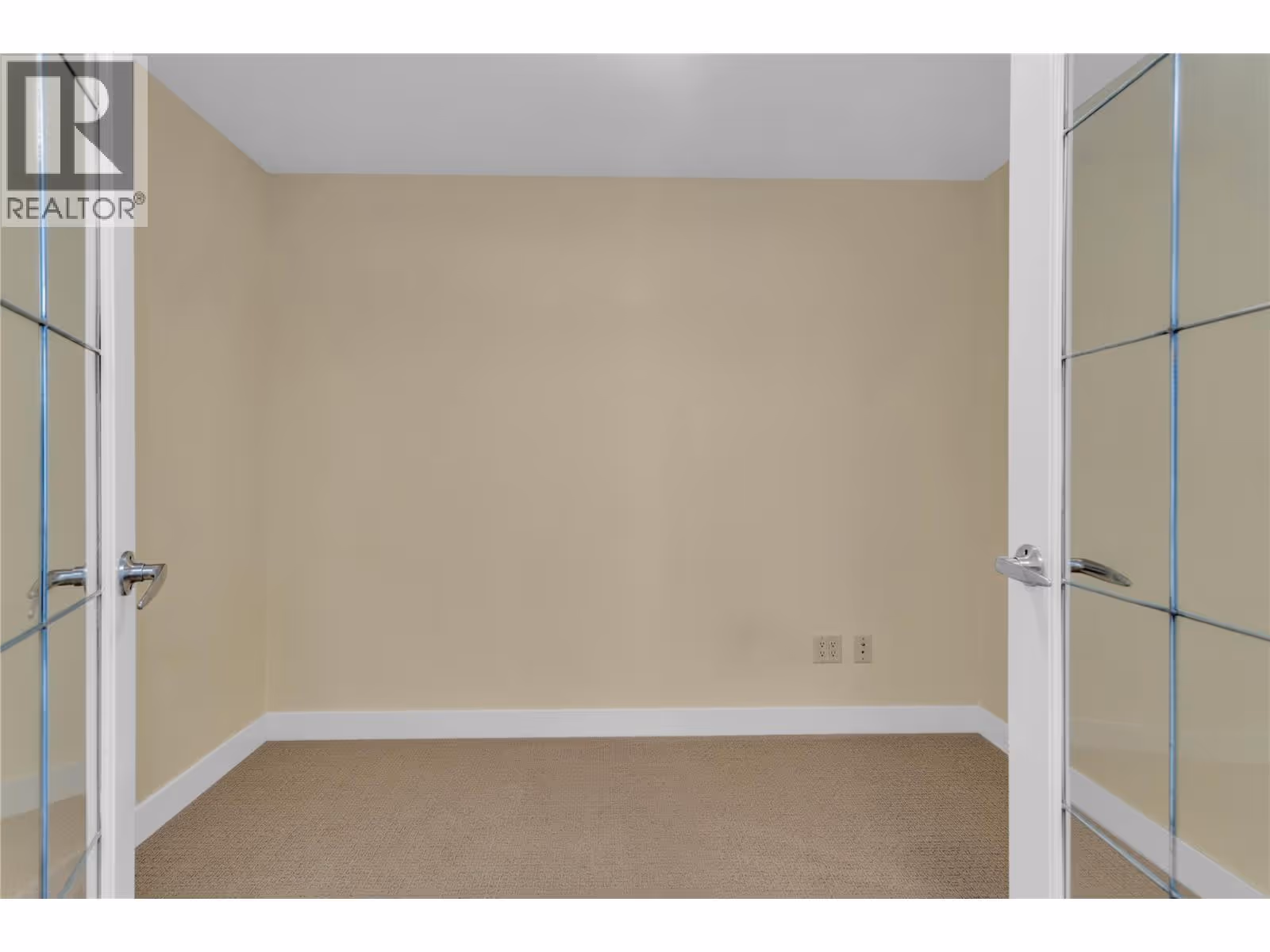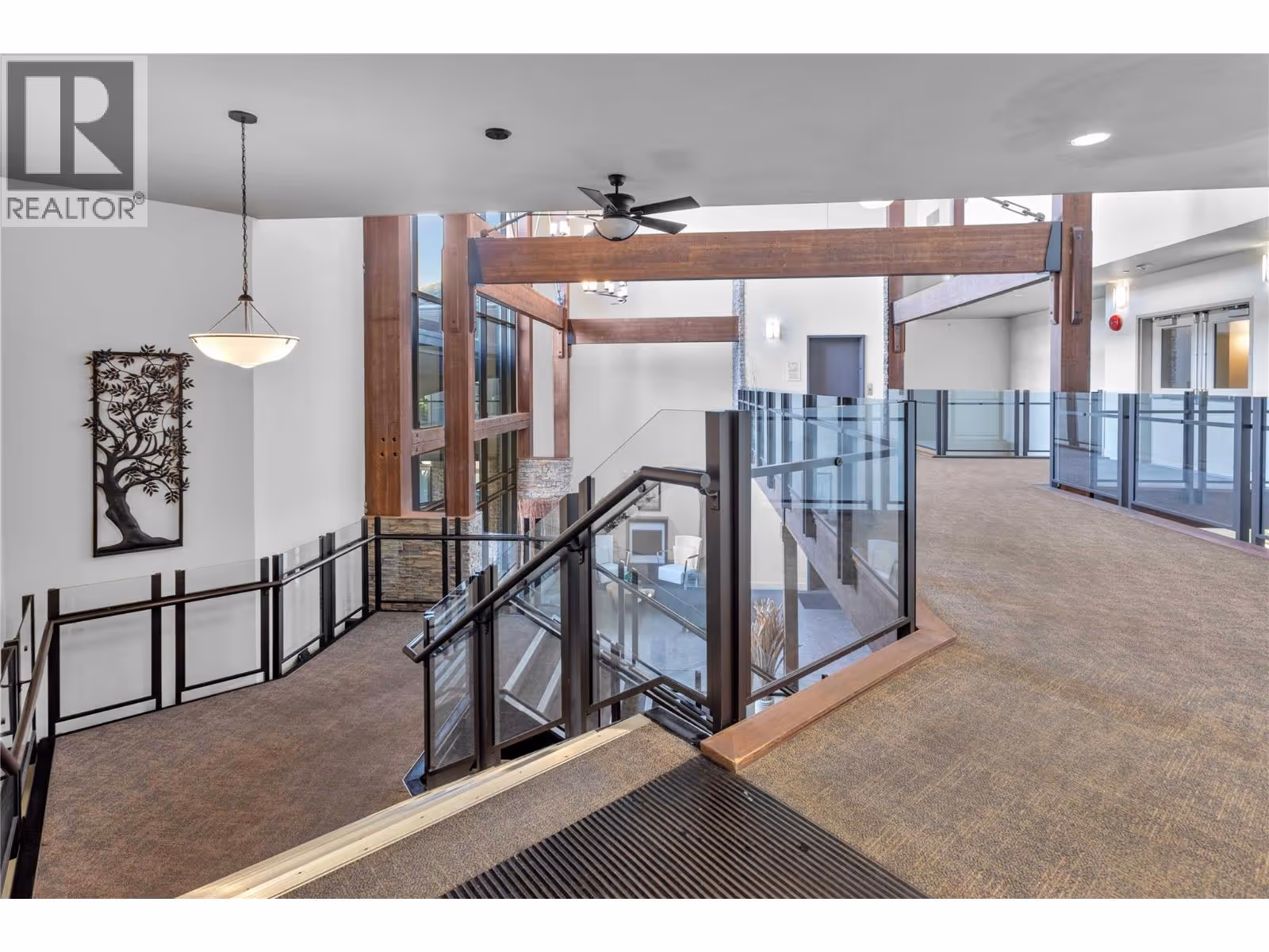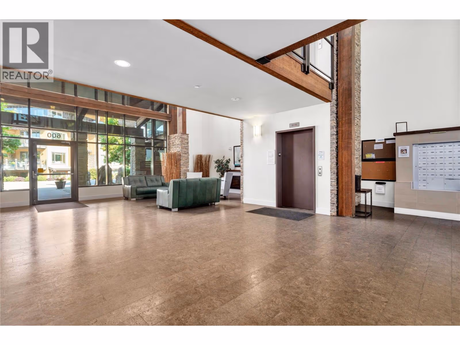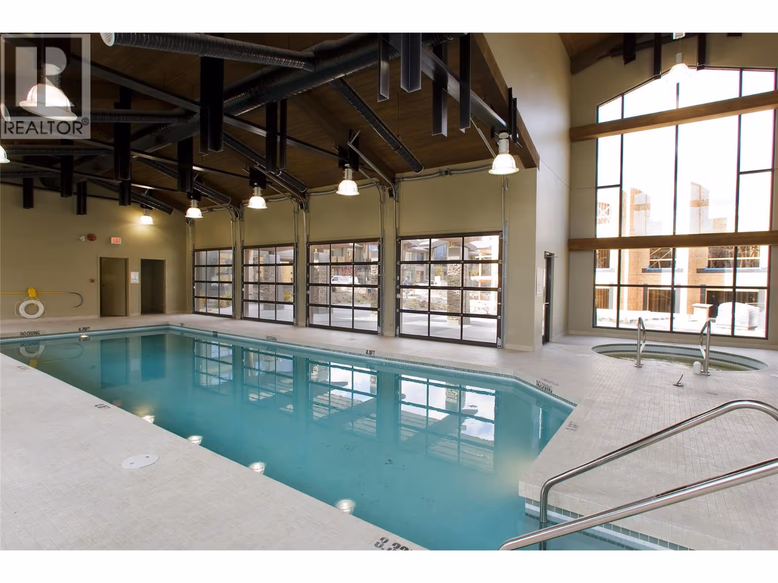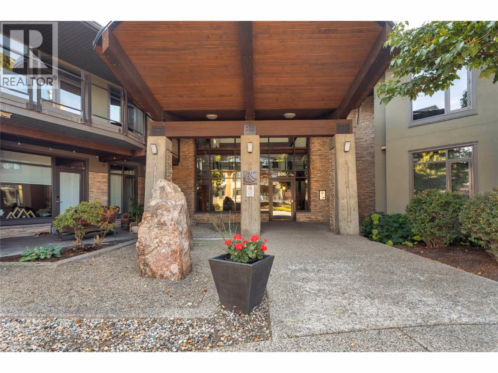 RARE OPPORTUNITY to own a TOP FLOOR executive condo in the sought after 'Southwind at Sarsons' community in the heart of the Lower Mission. TWO side x side PARKING STALLS included! This 2-Bedroom plus Den, 2-Bath home offers nearly 1,500 sq. ft. of bright open living space with soaring 18' vaulted ceilings and expansive south-facing windows that flood the home with natural light. Perfect for entertaining, the kitchen features a large island with granite counters, maple cabinetry, a gas stove, and flows seamlessly into the spacious living area with hardwood floors and a cozy gas fireplace. The primary suite includes a generous walk-in closet and a spa-inspired ensuite with double sinks, soaker tub and separate shower. A versatile flex area makes for the perfect den, home office or craft room. Strata fee includes environmentally friendly geothermal heating/cooling and first-class on site amenities include an indoor/outdoor pool, hot tub, fitness center and private residents lounge. Stunning landscaped grounds showcasing award-winning gardens and a beautiful water feature/pergola. Separate secured storage locker in parkade. One pet permitted <15"" from shoulder and max 12 kgs. Rentals allowed - 6 month minimum. Minutes to Sarsons Beach, Sunshine Market, Barn Owl Brewing, H2O Center, Mission Greenway, Michaelbrook Golf Course and world renowned Wineries! Experience Okanagan living at its finest! Move-In Ready! **Furnished photos have been virtually staged** (id:58842)