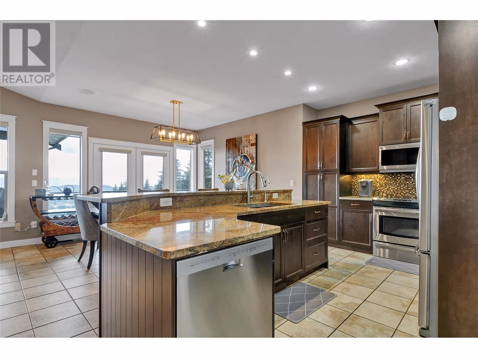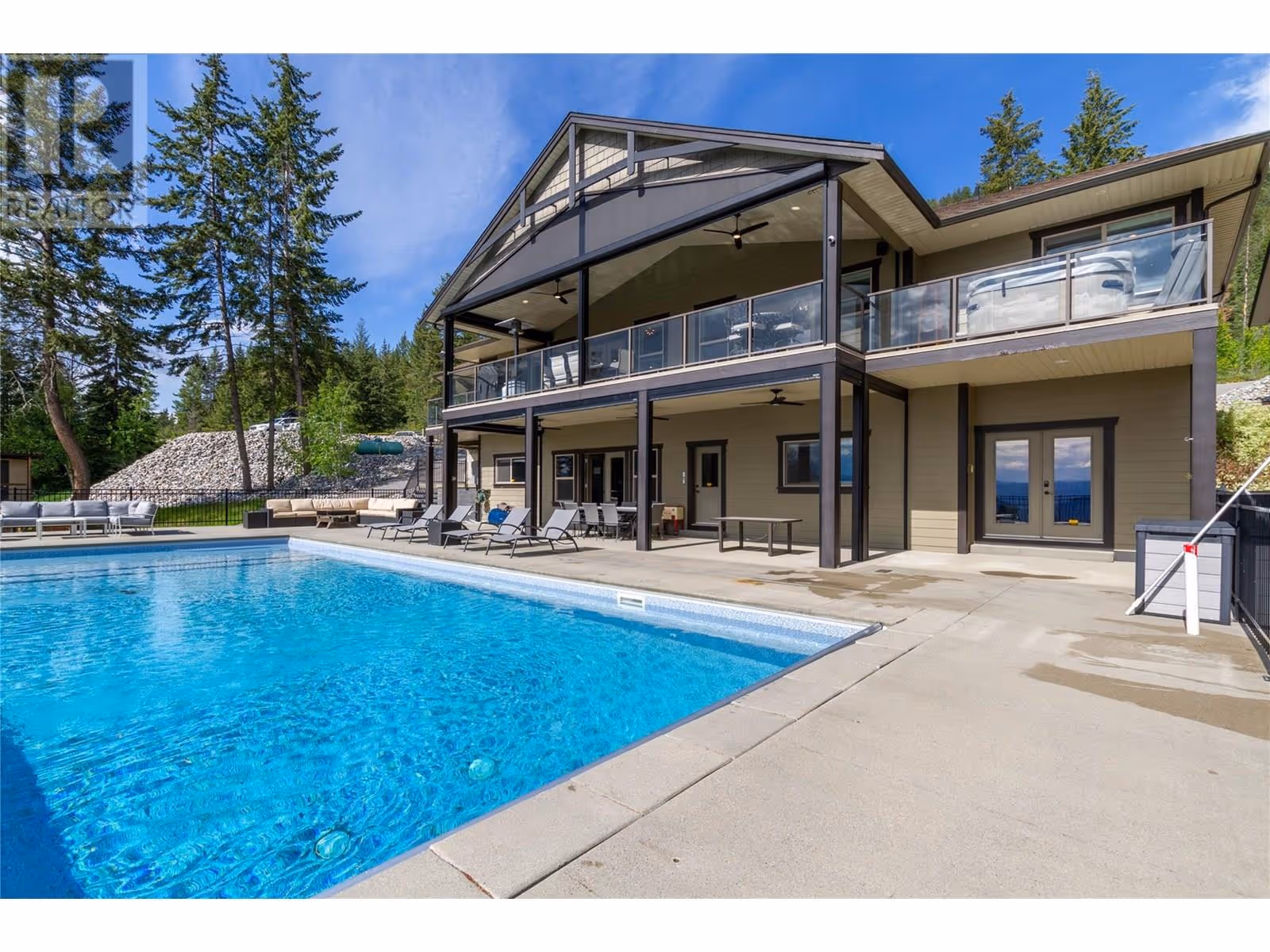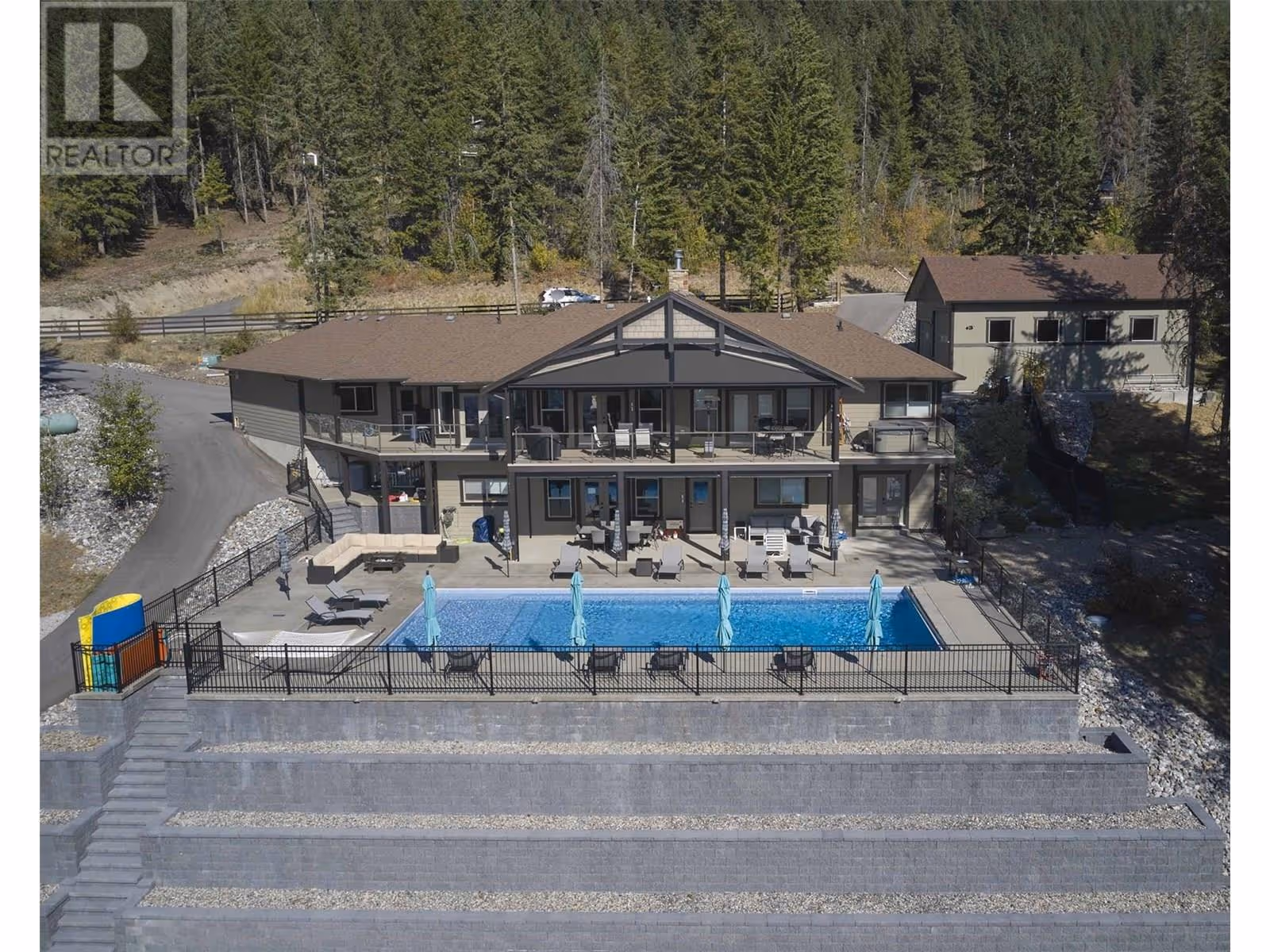 Welcome to your dream home! This custom-built 5-bedroom rancher with a walkout basement is nestled on 5 private acres in the idyllic North BX area. Enjoy a serene, tree-lined rural setting with breathtaking city and lake views. The main level features 3 spacious bedrooms plus a den, an open-concept living area with large windows that offer stunning views, and a gourmet kitchen equipped with high-end appliances and ample counter space. The fully self-contained basement suite is perfect for guests or as an income helper. Outdoor amenities abound, including an expansive backyard with an inground saltwater heated pool, complete with an automatic cover and state-of-the-art features. The large, maintenance-free artificial green space is perfect for kids. The property also offers ample paved parking with a unique drive-thru access gated driveway. Additional features include an oversized heated garage and a detached shop for extra storage or projects. 26x42 shop with 16 ceilings! The location is ideal, with close proximity to hiking, ATV, and mountain biking trails, as well as the Silver Star ski mountain for year-round outdoor activities. This property is the perfect blend of luxury, comfort, and convenience, offering tons of space and endless potential. Don't miss out on this private and serene haven! (id:58842)