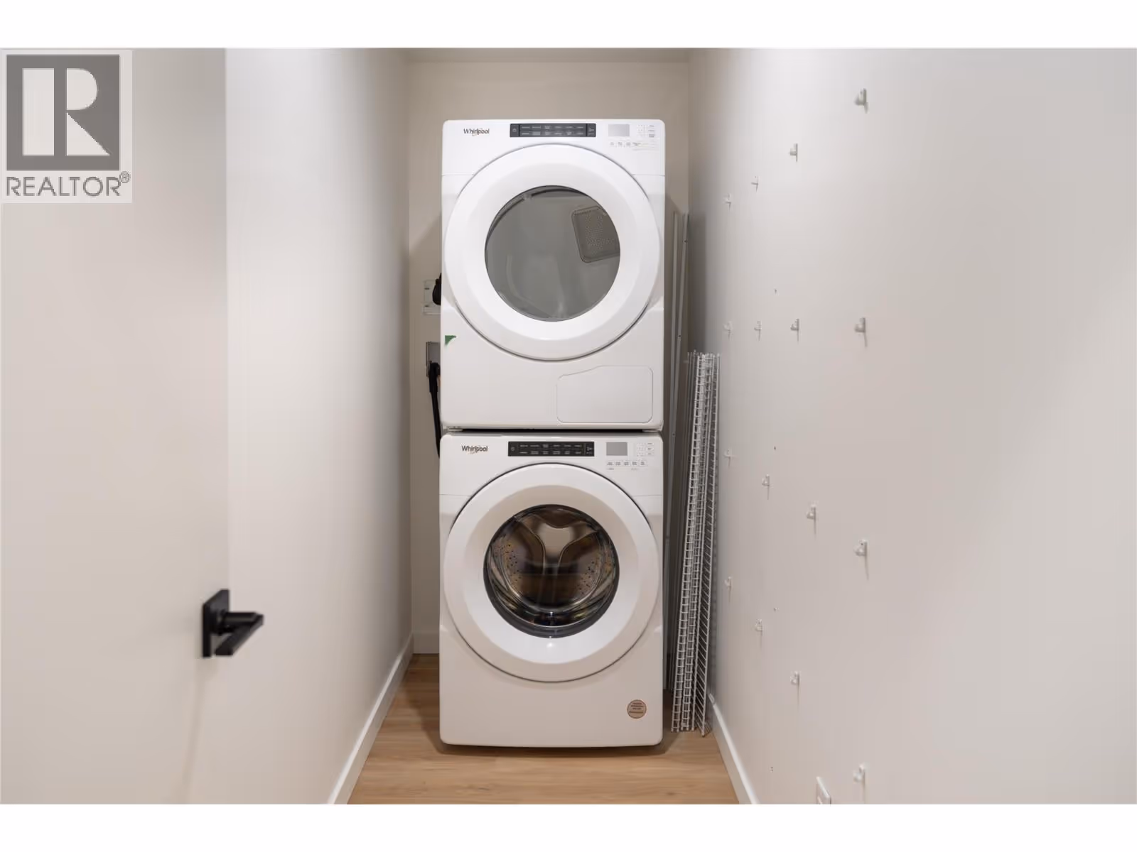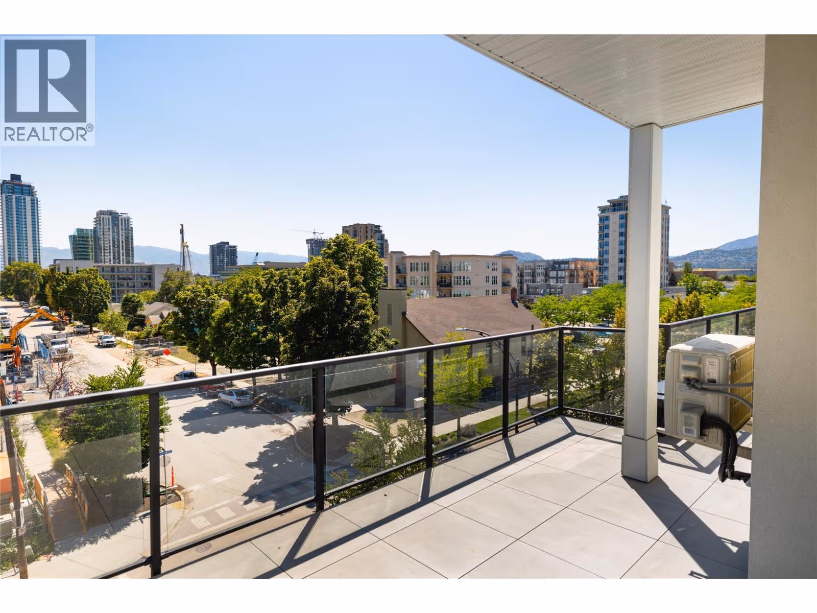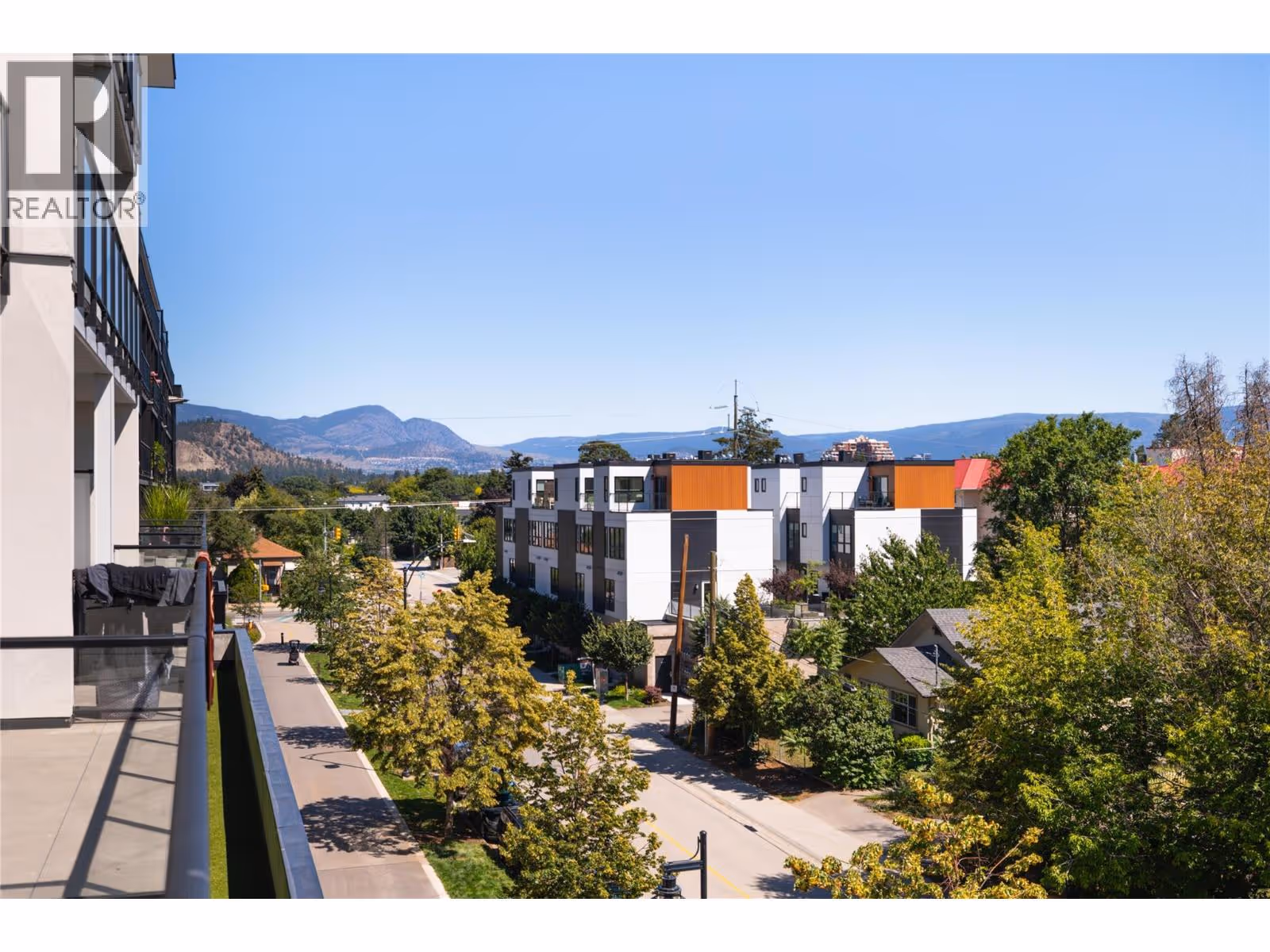 Welcome to this bright and spacious corner unit offering panoramic views of the mountain and city scape. This residence epitomizes sophisticated, modern living. With a bright, airy atmosphere and a stylish, contemporary design, it's perfectly situated near schools, parks, and the vibrant amenities of downtown Kelowna! Enjoy the convenience of biking or strolling to the city's heart! Exclusive to residents is access to an exceptional rooftop oasis, complete with sun-drenched lounging areas, ambient fire tables, raised garden beds, and charming pergolas for alfresco gatherings. Inside, you'll find a flexible 2-bedroom, 2-bathroom layout, ideal for a home office or growing families. The open-plan living area is bathed in natural light and showcases stunning city and mountain views. The kitchen features sleek cabinetry, an island, stainless steel appliances, ample cupboard space, and an undermount sink. The adjacent living space seamlessly flows out to the large, wrap-around deck, perfect for unwinding or hosting guests. Throughout the unit, resilient vinyl plank flooring offers both practicality and aesthetic cohesion. Pet-friendly and equipped with secure entry, underground parking, bicycle storage, and EV charging stations, this building ensures peace of mind for residents. Don't miss the chance to make this exceptional residence your own! (id:58842)