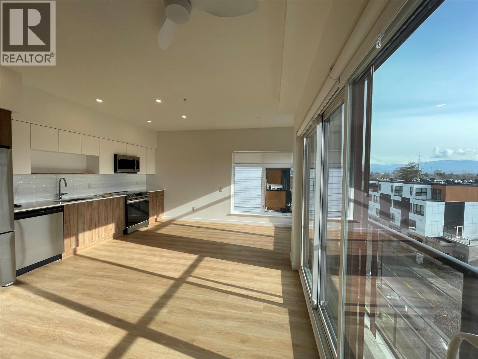 Welcome to this bright and spacious corner unit offering stunning city and mountain views, ideally located in Kelowna’s sought-after North End and right on the Cawston Active Transportation Corridor. Just minutes to Knox Mountain, the waterfront, local breweries, coffee shops, and downtown Kelowna, this location offers a highly walkable, connected lifestyle. Whether it’s a morning walk for coffee, a quick bike ride to the lake, or an evening out, everything is close by. Inside, the home features a functional open-concept layout that’s both comfortable and easy to live in. After a year of ownership, it has proven to be a practical space with great natural light throughout thanks to its corner positioning. The kitchen is equipped with stainless steel appliances, ample cabinet space, and an undermount sink, flowing seamlessly into the main living area — ideal for hosting or relaxing while taking in the views. With 2 bedrooms and 2 bathrooms, the layout offers flexibility for a home office, guests, or a variety of living situations. Durable vinyl plank flooring runs throughout for a clean, modern look with low-maintenance appeal. Residents enjoy access to a rooftop terrace with lounge areas, fire tables, garden beds, and pergolas — a great extension of your living space. Secure entry, underground parking, bike storage, EV charging, and a pet-friendly policy complete the package. A well-rounded opportunity in one of Kelowna’s most vibrant neighbourhoods. (id:58842)