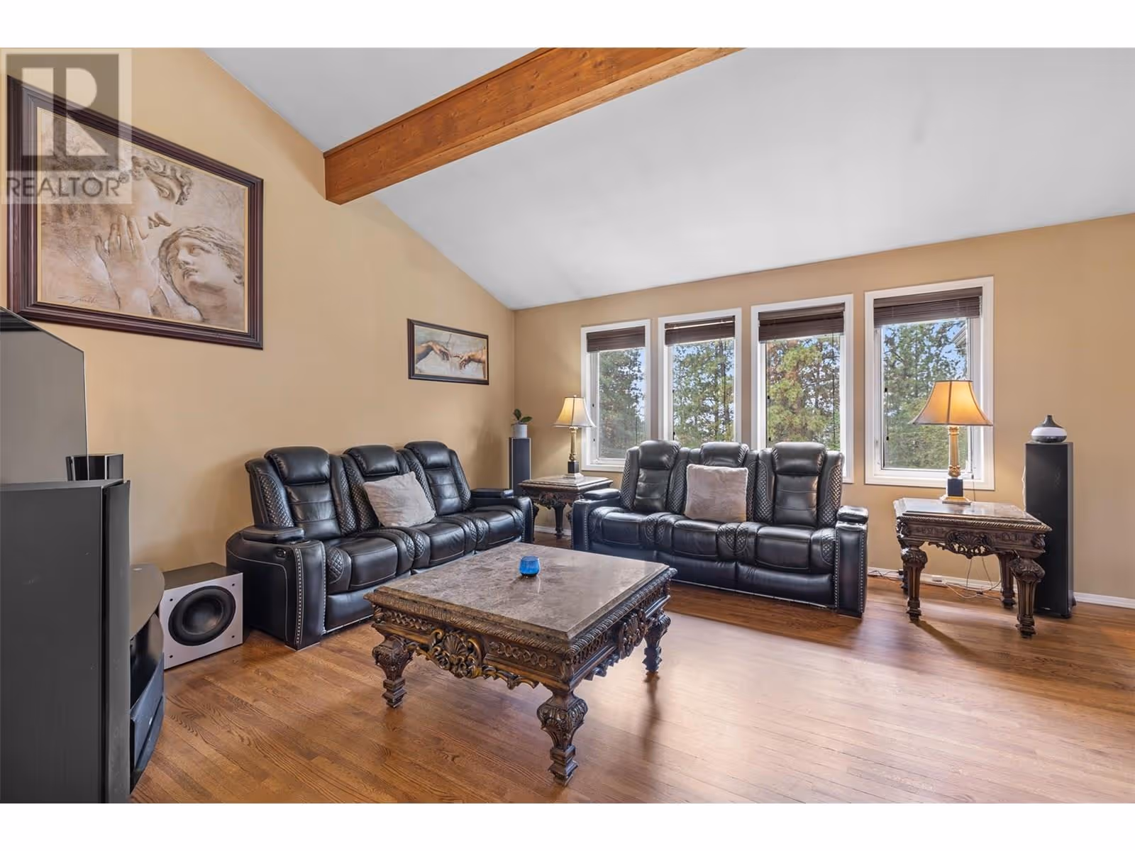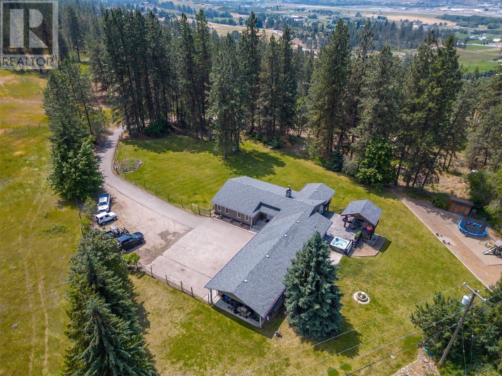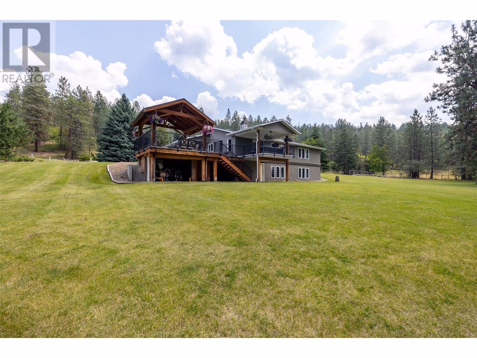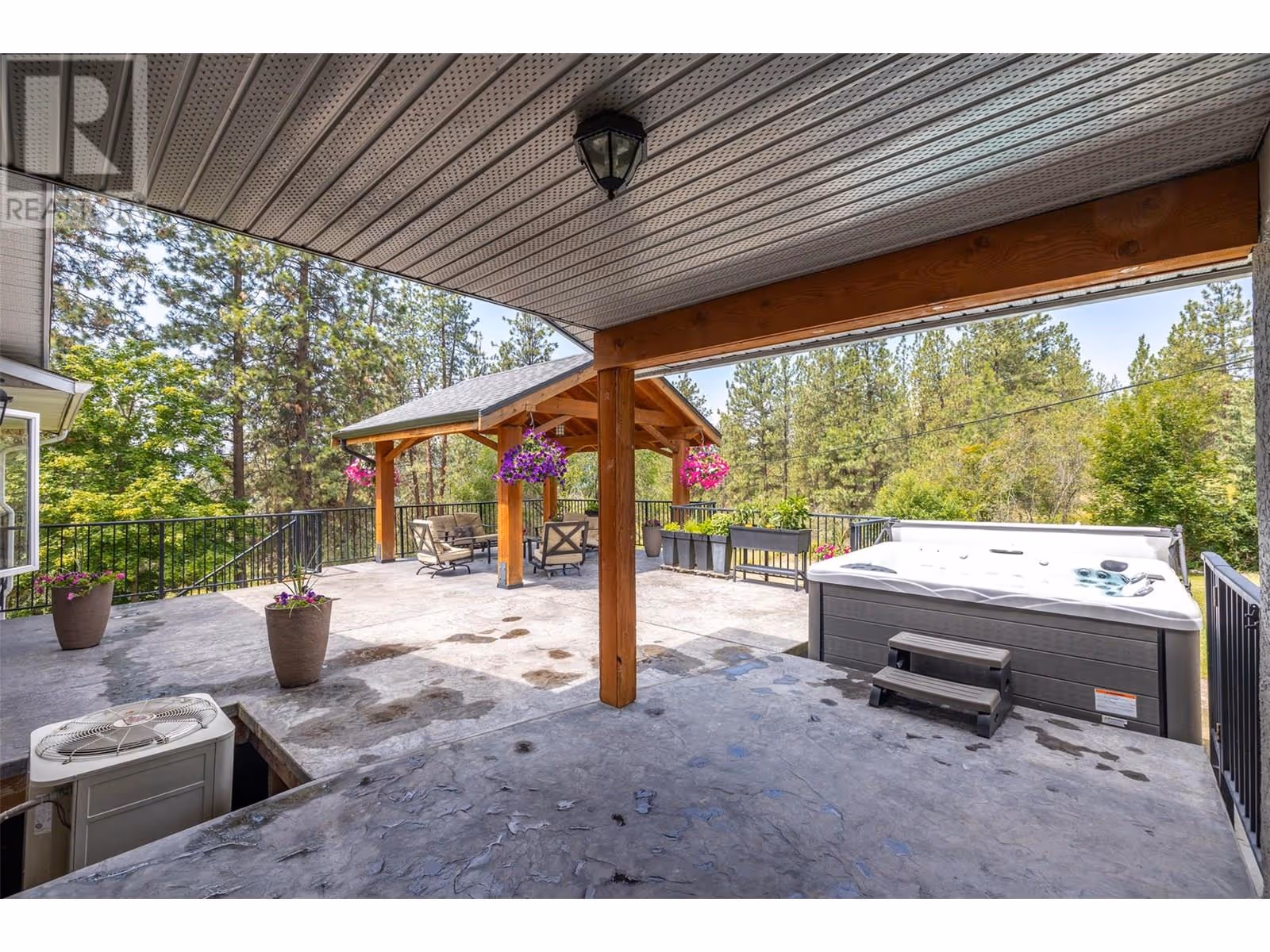 Welcome to your private paradise—an exceptional 6+ acre package nestled in nature. The walkout rancher offers well over 3,000 sq ft of thoughtfully designed living space. The main level features 3 bedrooms, including a luxurious oversized primary with a 4-piece ensuite, under cabinet lighting and a jetted rain shower. A formal dining room, cozy living area with a striking stone fireplace, and a chef’s kitchen with wall oven, quartz counters and a massive island take family gatherings to the next level. Step directly onto your stamped concrete patio, where two covered seating areas—including a custom fir pergola—and a hot tub await. Perfect for hosting or relaxing in total privacy. The walkout lower level offers a den, full bath, spacious games/rec room, gym, and ample storage, all with a wall of windows showcasing the peaceful, tree-lined yard. The fully fenced yard is a picture perfect 10/10. The property features several flat areas and provides space to create your dream lifestyle. Many other extras here including a Big Blue R/O & UV filtration system, central A/C, irrigation, new HWT, and don't forget the 4-car attached garage. Peace, privacy, and possibility await. (id:58842)