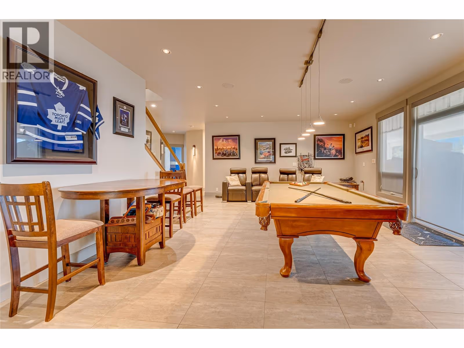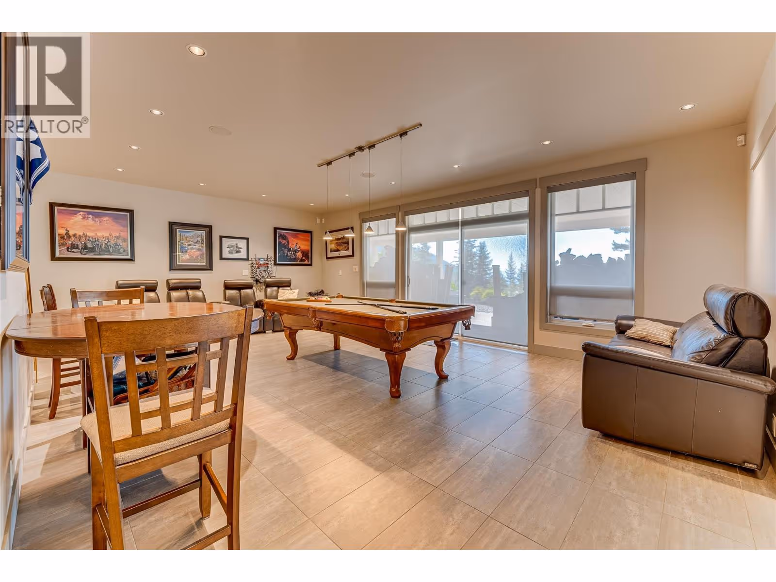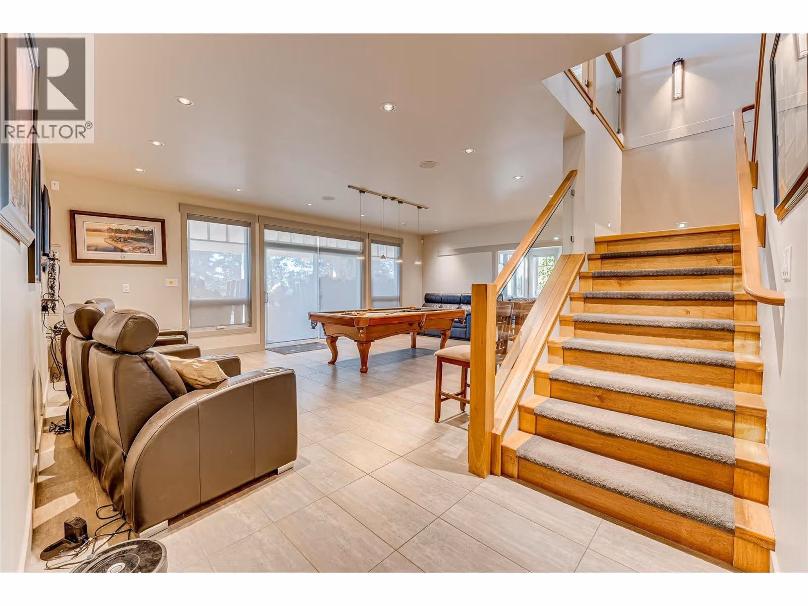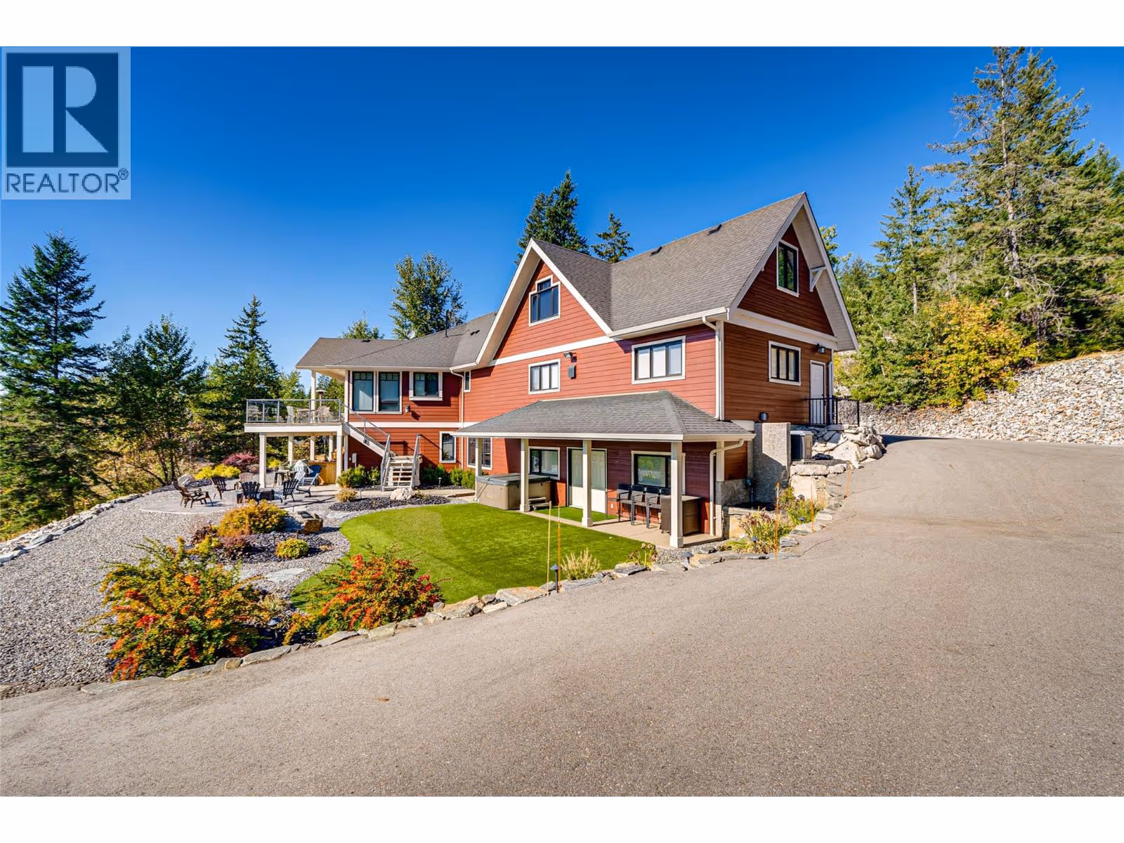 Welcome to this custom-designed 5-bedroom rancher, spanning over 5,000 sqft. Nicely nestled on a private 5-acre lot surrounded by nature, this peaceful retreat offers sweeping views of the city and Okanagan Lake, combining privacy, luxury, and comfort in perfect harmony. High-end finishes throughout and abundant space make this home truly exceptional. The chef-inspired kitchen is a showstopper, complete with custom cabinetry, a huge island with a built-in sink, a gas stove, under-cabinet lighting, a striking glass tile backsplash, The bright and airy eating nook offers panoramic views of the city and lake, with a partially covered stamped concrete deck. The amazing great room takes your breath away with its spectacular inlaid ceilings and cozy fireplace, creating a warm and inviting space. Large windows flood the room with natural light, highlighting the Canadian long-length maple hardwood flooring throughout the main level. The master suite features direct deck access and a spa-inspired 5-piece ensuite, Large walk in closet. The walkout basement, equipped with in-floor radiant heating, includes two spacious bedrooms, a full bathroom, a games room, a flex room, a TV room, and a laundry room. This property is ideally situated, offering easy access to hiking, ATV, trails. Need space for work or hobbies? The detached, fully finished 40’ x 50’ shop, complete with 12’ x 14’ drive-thru doors and a 16-foot ceiling, is the perfect addition. Plus, there’s ample paved parking for all your vehicles and toys Come explore this one-of-a-kind luxury estate – it’s everything you’ve been dreaming of and more. (id:58842)