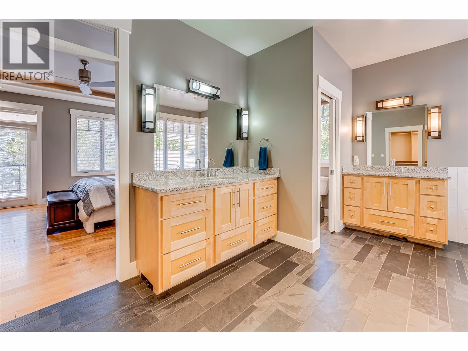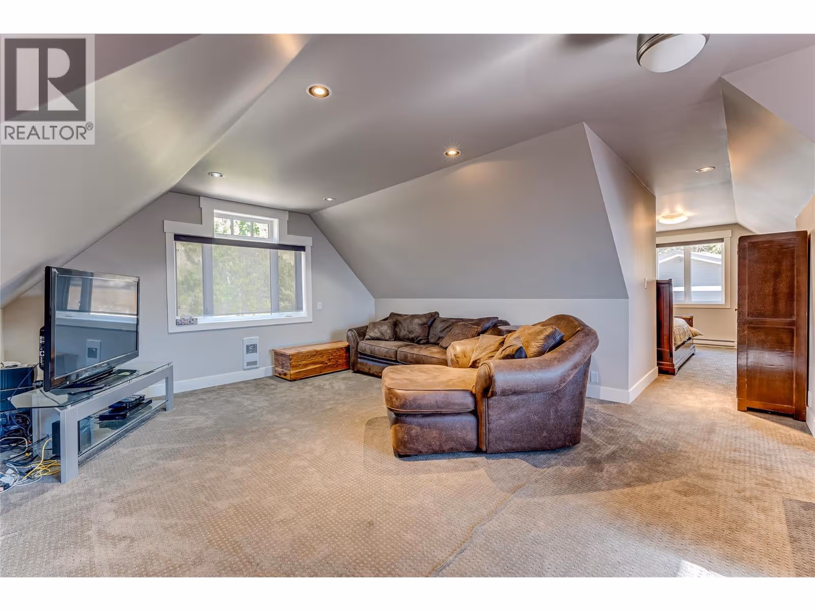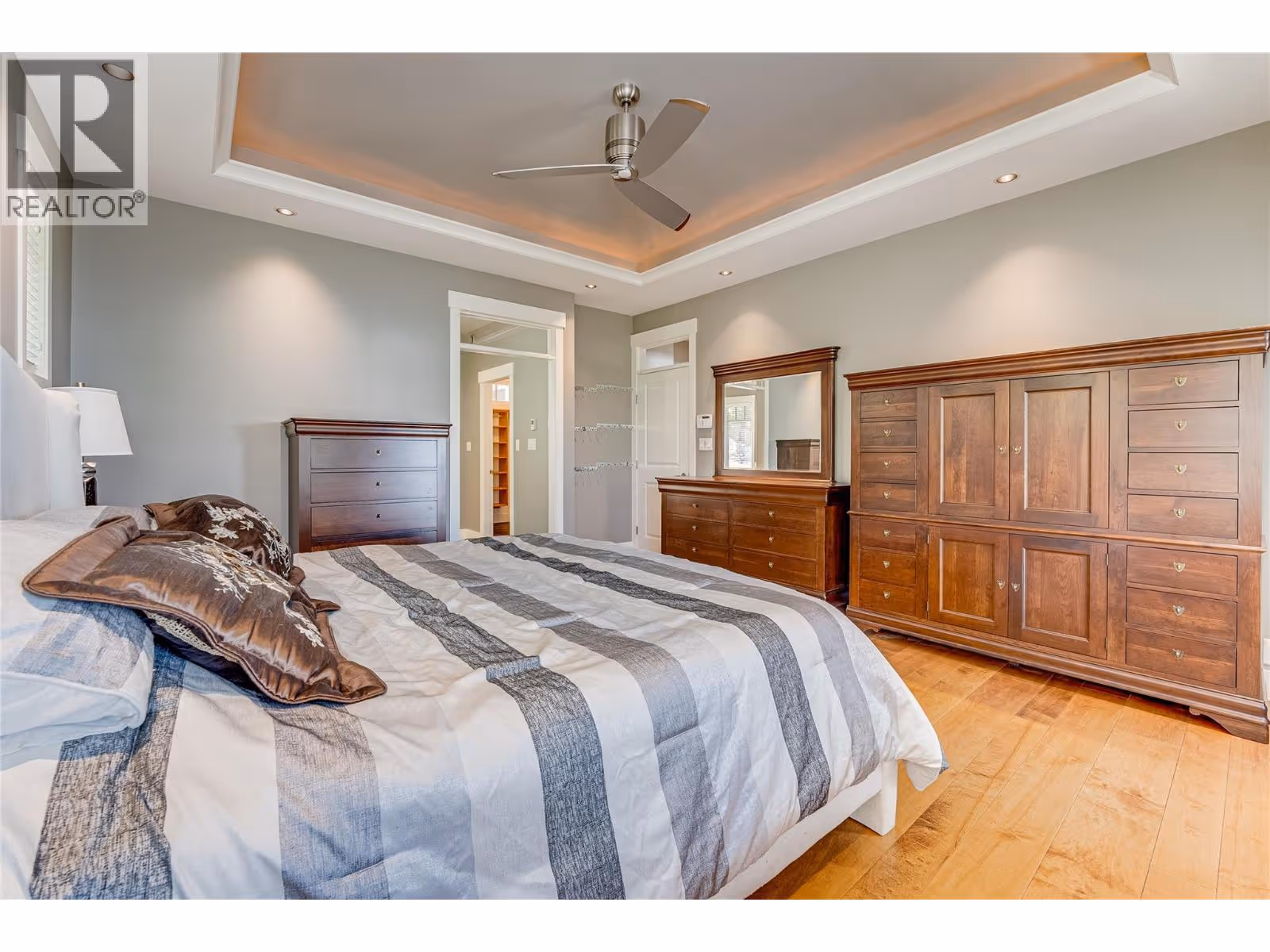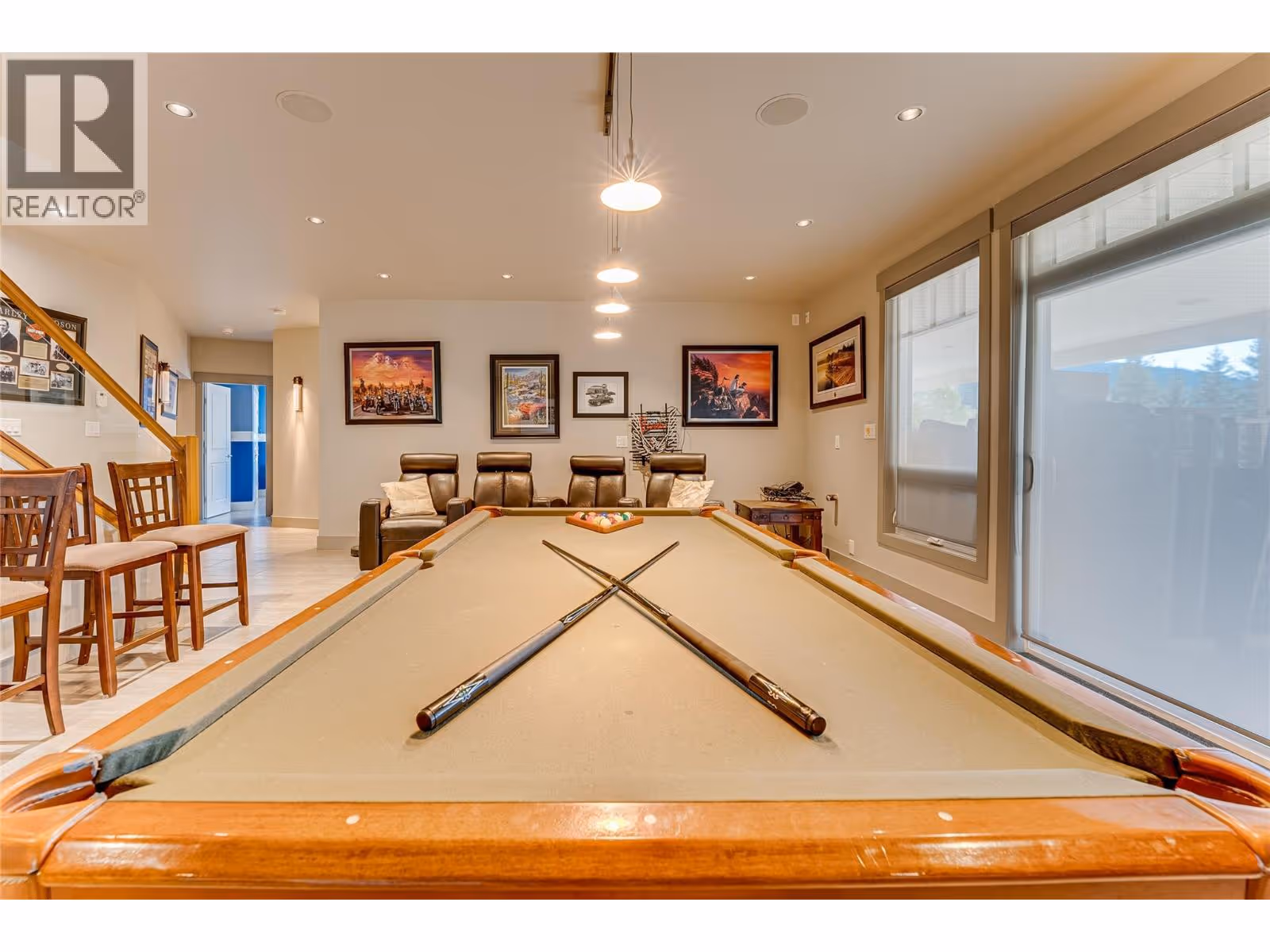 Welcome to this custom-designed 5-bedroom rancher, spanning over 5,000 sqft. Nicely nestled on a private 5-acre lot surrounded by nature, this peaceful retreat offers sweeping views of the city and Okanagan Lake, combining privacy, luxury, and comfort in perfect harmony. High-end finishes throughout and abundant space make this home truly exceptional. The chef-inspired kitchen is a showstopper, complete with custom cabinetry, a huge island with a built-in sink, a gas stove, under-cabinet lighting, a striking glass tile backsplash, The bright and airy eating nook offers panoramic views of the city and lake, with a partially covered stamped concrete deck. The amazing great room takes your breath away with its spectacular inlaid ceilings and cozy fireplace, creating a warm and inviting space. Large windows flood the room with natural light, highlighting the Canadian long-length maple hardwood flooring throughout the main level. The master suite features direct deck access and a spa-inspired 5-piece ensuite, Large walk in closet. The walkout basement, equipped with in-floor radiant heating, includes two spacious bedrooms, a full bathroom, a games room, a flex room, a TV room, and a laundry room. This property is ideally situated, offering easy access to hiking, ATV, trails. Need space for work or hobbies? The detached, fully finished 40’ x 50’ shop, complete with 12’ x 14’ drive-thru doors and a 16-foot ceiling, is the perfect addition. Plus, there’s ample paved parking for all your vehicles and toys Come explore this one-of-a-kind luxury estate – it’s everything you’ve been dreaming of and more. (id:58842)