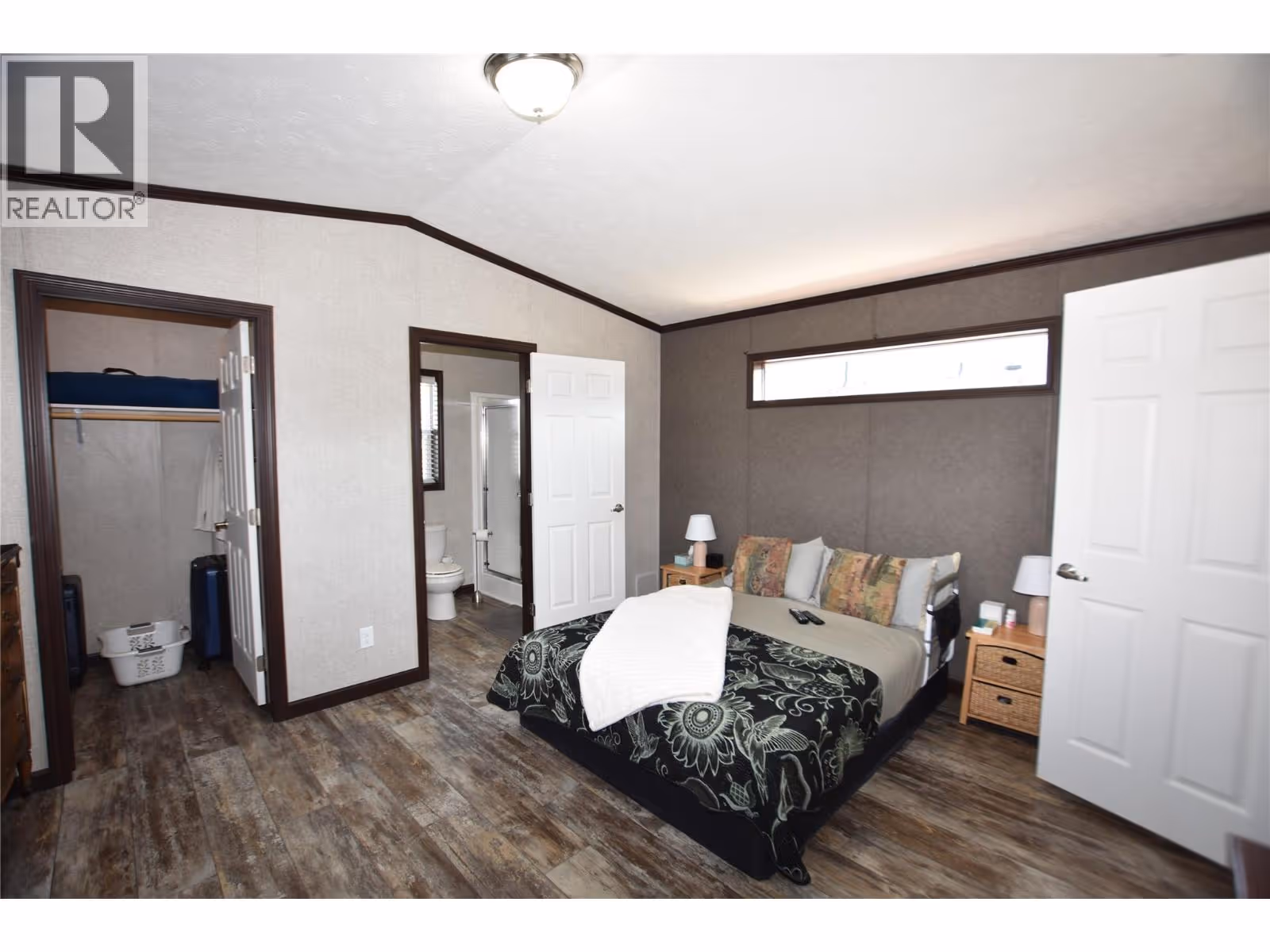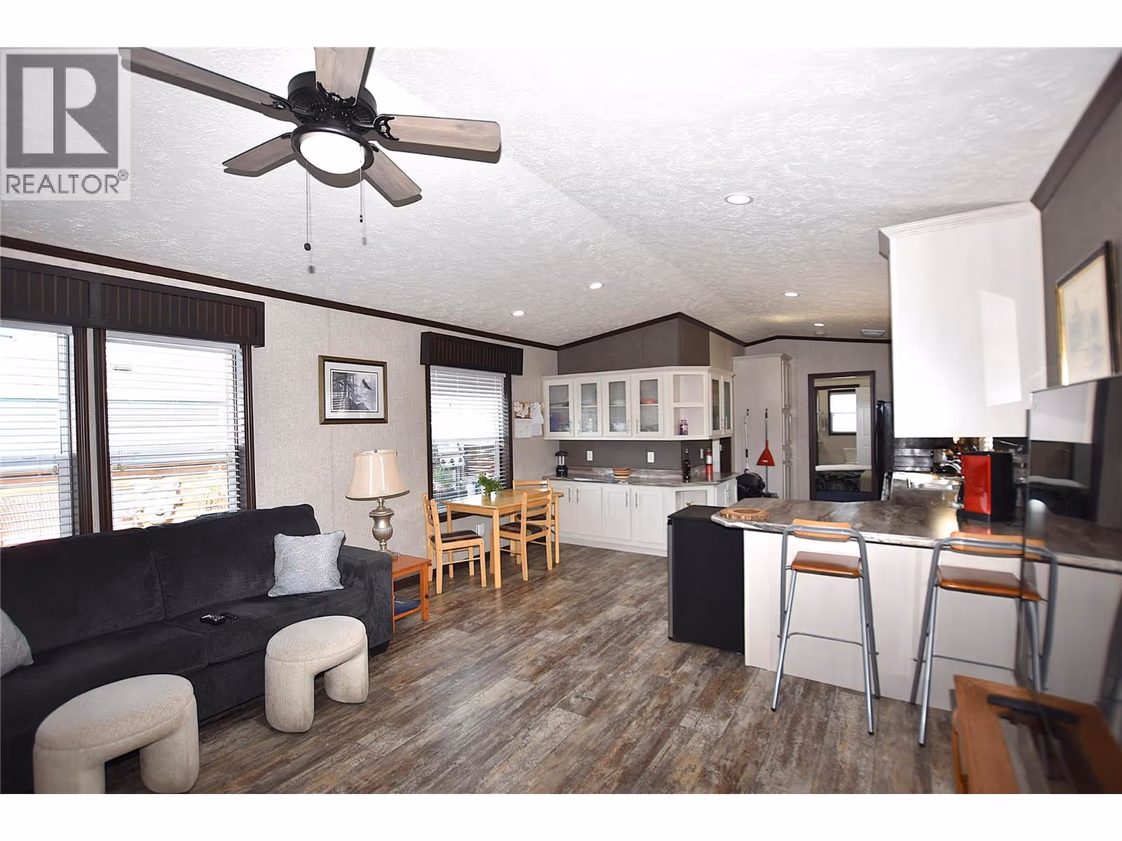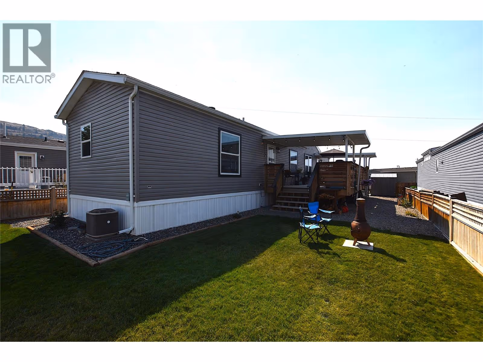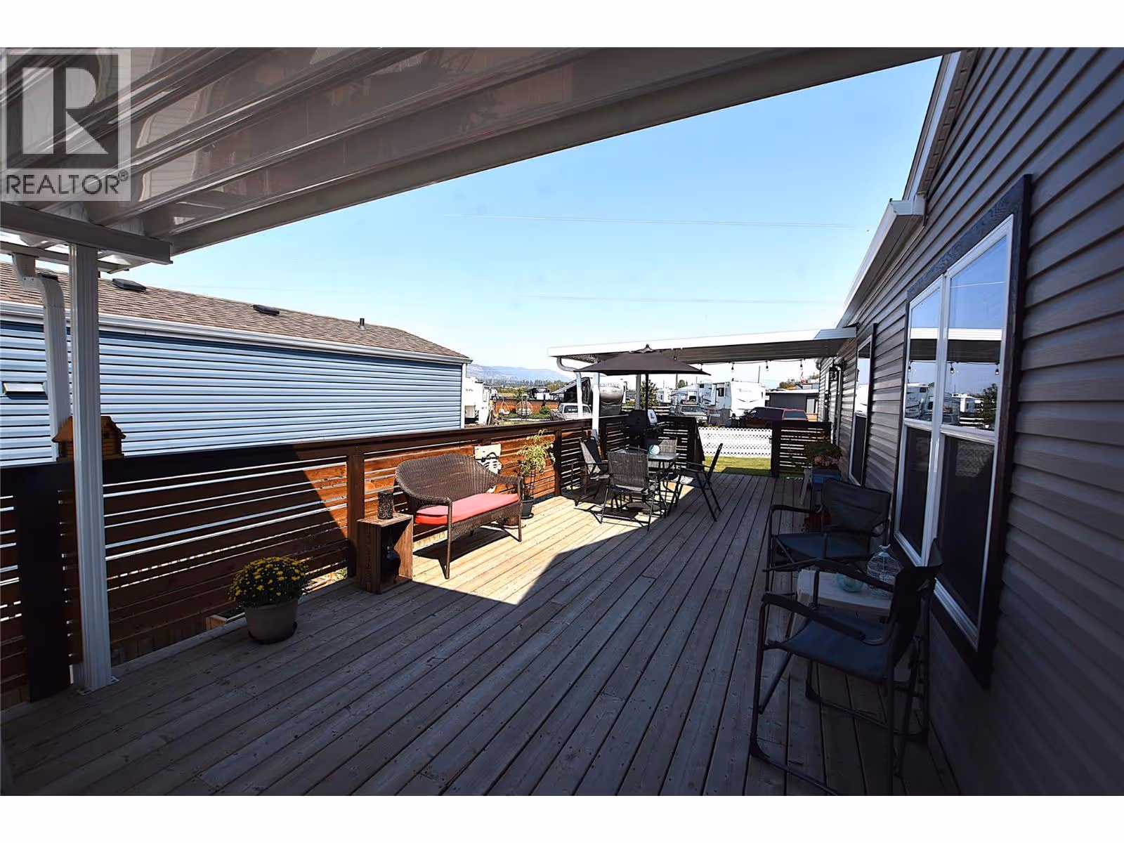 Well-maintained 2-Bedroom, 2-Bathroom 7 year old Modular Home in Louis Brothers Landing Mobile Home Park Discover this beautifully maintained 1056 sq. ft. modular home nestled on a spacious lot in the desirable Louis Brothers Landing Mobile Home Park, located at the scenic Head of the Lake in Vernon. Just a 12-minute drive to town and only 4 minutes to the golf course, this home offers the perfect blend of comfort and convenience. Features include: Open plan design with bedrooms on opposite ends for privacy Kitchen with built-in cabinetry, a pantry and sleek black appliances Spacious master bedroom with a walk-in closet and an en-suite with a double shower Large 35 x 12 partially covered deck, ideal for outdoor entertaining Fenced yard for pets and children Central air conditioning for year-round comfort Water softener and reverse osmosis system for quality water Pet-friendly community with park approval Boat and RV parking available Additional Details: Monthly pad rental of $429, which includes water, weekly garbage pickup, and road maintenance Shared access to beautiful Lake Okanagan Peaceful, country-like setting with quiet surroundings This home combines comfort, functionality, and a fantastic location. Don't miss the opportunity to enjoy lakeside living in a welcoming community! (id:58842)