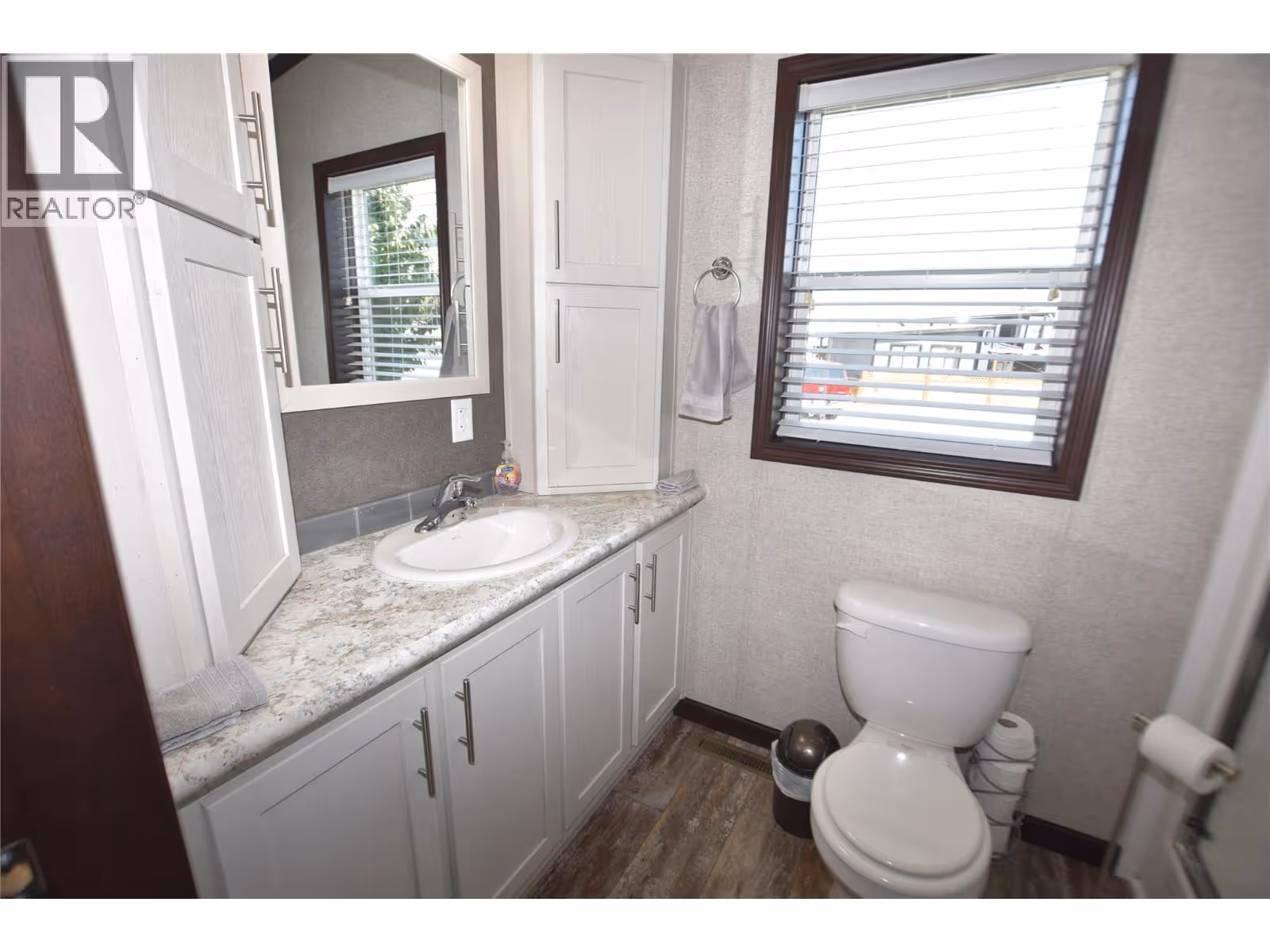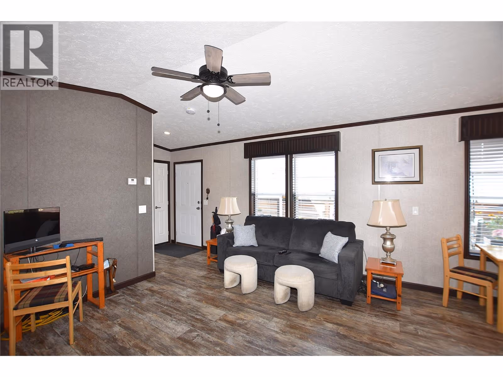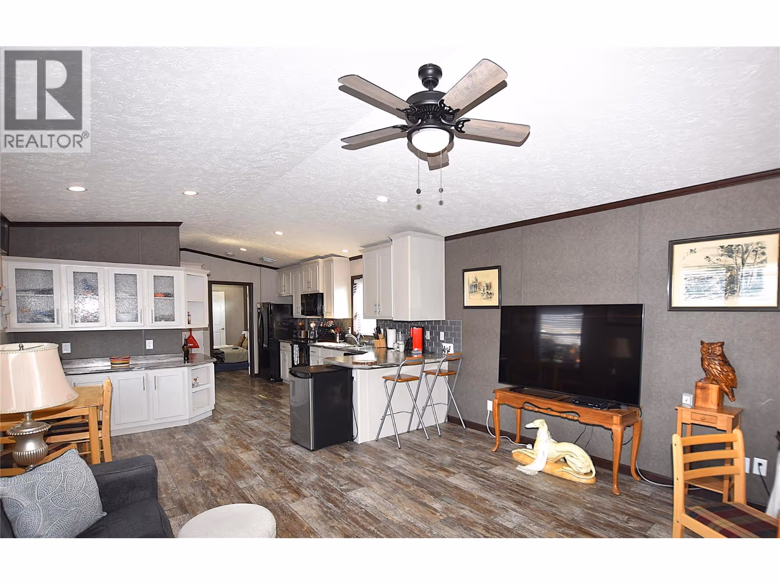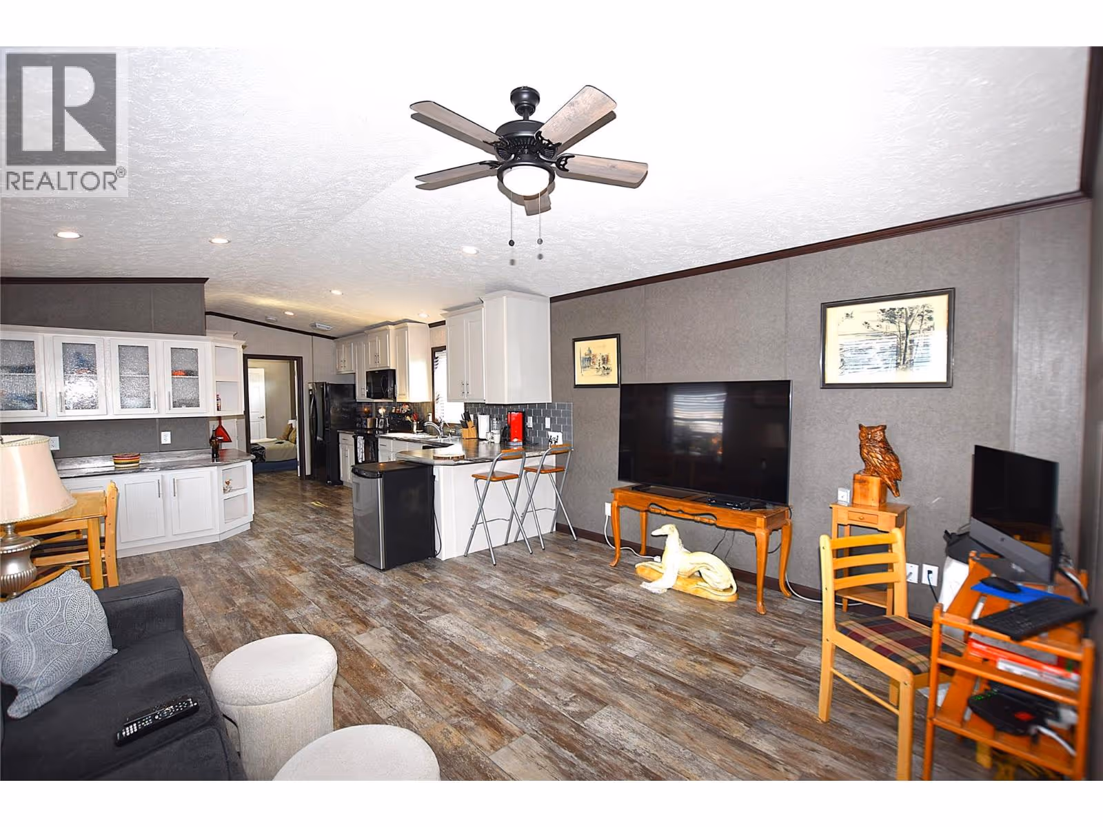 Well-maintained 2-Bedroom, 2-Bathroom 7 year old Modular Home in Louis Brothers Landing Mobile Home Park Discover this beautifully maintained 1056 sq. ft. modular home nestled on a spacious lot in the desirable Louis Brothers Landing Mobile Home Park, located at the scenic Head of the Lake in Vernon. Just a 12-minute drive to town and only 4 minutes to the golf course, this home offers the perfect blend of comfort and convenience. Features include: Open plan design with bedrooms on opposite ends for privacy Kitchen with built-in cabinetry, a pantry and sleek black appliances Spacious master bedroom with a walk-in closet and an en-suite with a double shower Large 35 x 12 partially covered deck, ideal for outdoor entertaining Fenced yard for pets and children Central air conditioning for year-round comfort Water softener and reverse osmosis system for quality water Pet-friendly community with park approval Boat and RV parking available Additional Details: Monthly pad rental of $429, which includes water, weekly garbage pickup, and road maintenance Shared access to beautiful Lake Okanagan Peaceful, country-like setting with quiet surroundings This home combines comfort, functionality, and a fantastic location. Don't miss the opportunity to enjoy lakeside living in a welcoming community! (id:58842)