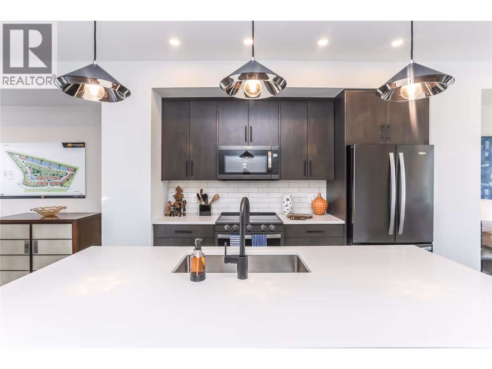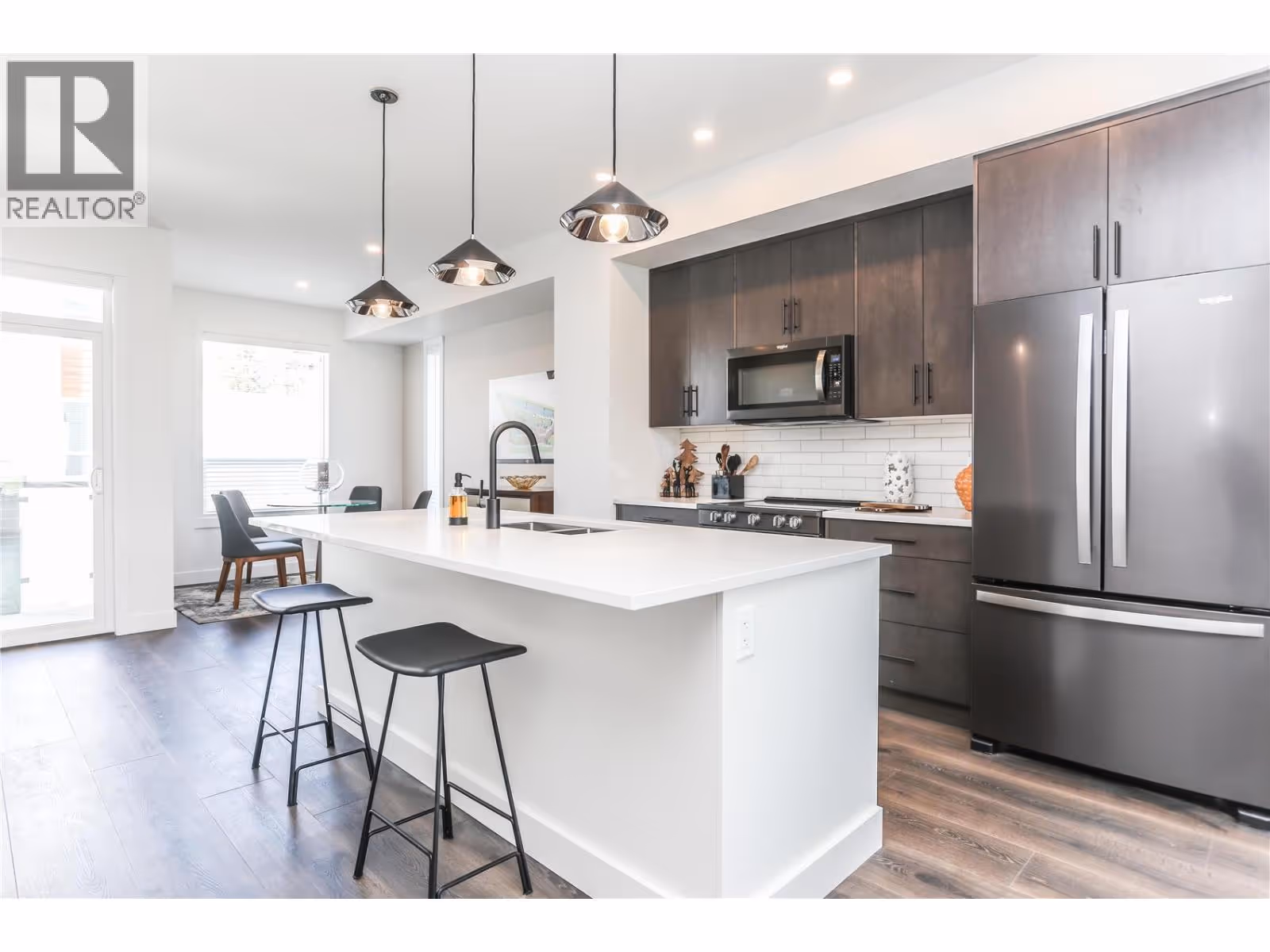 Located just a short walk to UBCO, 5 minutes to YLW, shopping, and the scenic Okanagan Rail Trail, this location is unbeatable for convenience and lifestyle. Whether you're buying for yourself, your student, or as an investment, this townhome checks all the boxes. The Delta 2 floor plan at Academy Ridge combines modern style with everyday function, featuring 3 bedrooms, 2.5 bathrooms, 9 ft ceilings, and sleek finishes throughout. This home is finished with the Sigma finishing package and comes fully loaded with stainless steel kitchen appliances, full-size laundry, central A/C with gas forced-air heat, window coverings, and a tandem garage. With low strata fees, pet-friendly bylaws ( you can have 2), and flexible options to live in or rent out, this is an ideal opportunity for students, families, or investors. Purchase price is plus GST. (id:58842)