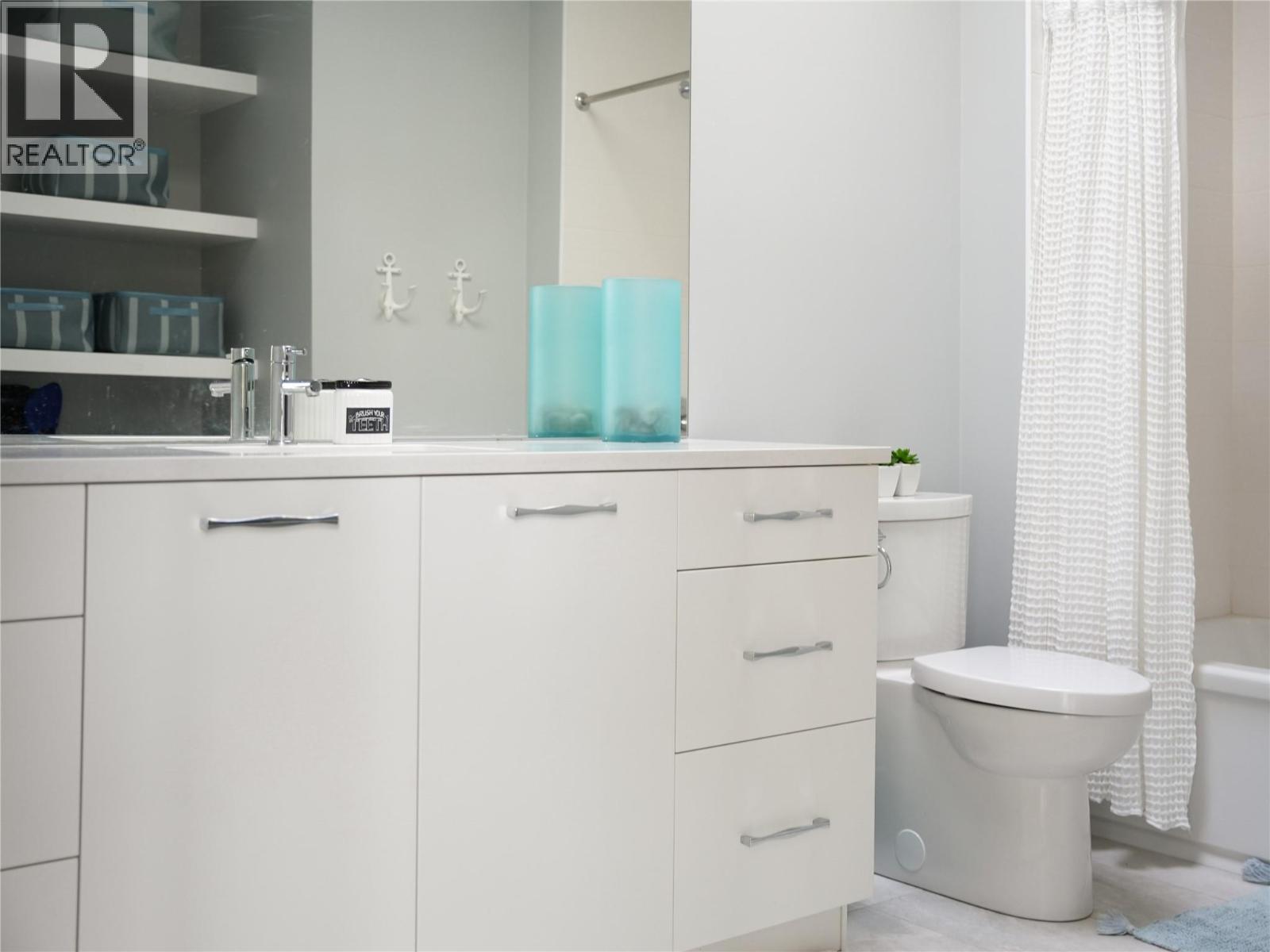 Remarkable Tommie Award winning semi-lakeshore modern home across the street from Rotary Park Beach. The epitome of Okanagan living where the best of all worlds come together in this exceptional three bedroom + den residence. Upon entering you are greeted by a two storey open entry, flanked by modern glass railing. The opening layout of the dining, kitchen and living flow effortlessly for entertaining and expanding outdoors to the private terrace. A designer kitchen fitted for a chef, with striking backsplash, lighting and an oversized central island. Whether it be evening cocktails or a movie fireside, the versatile living space will accommodate the grandest of scale and furniture needs. The expansive dining area welcomes vast seating. Roughed in for an elevator, there is ample storage available, including the built ins at the mudroom exit to the private rear yard and double garage. A powder room and bedroom complete the main floor. The second level offers a conveniently located laundry room with a sink, a flex/office space, and two additional bedrooms and full baths. With stunning lake views and sunsets to be had, the balcony off the primary bedroom is sure to be a favourite spot for morning coffee or nightcap. With vaulted ceilings and a flex space, it is only outdone by the sprawling ensuite with separate vanities and luxurious shower. The bounty of sunshine is captured in the roof solar panels. A pet friendly fenced yard offers additional parking for your boat! (id:58842)