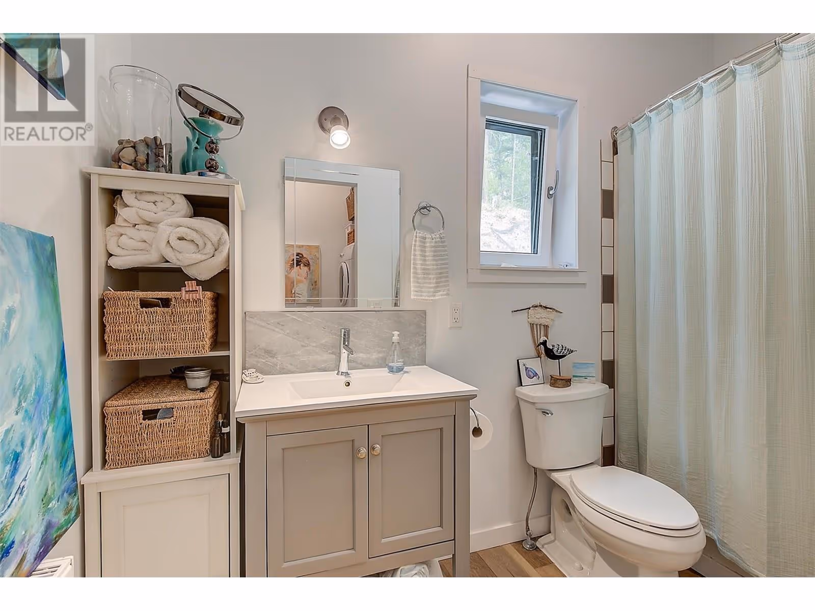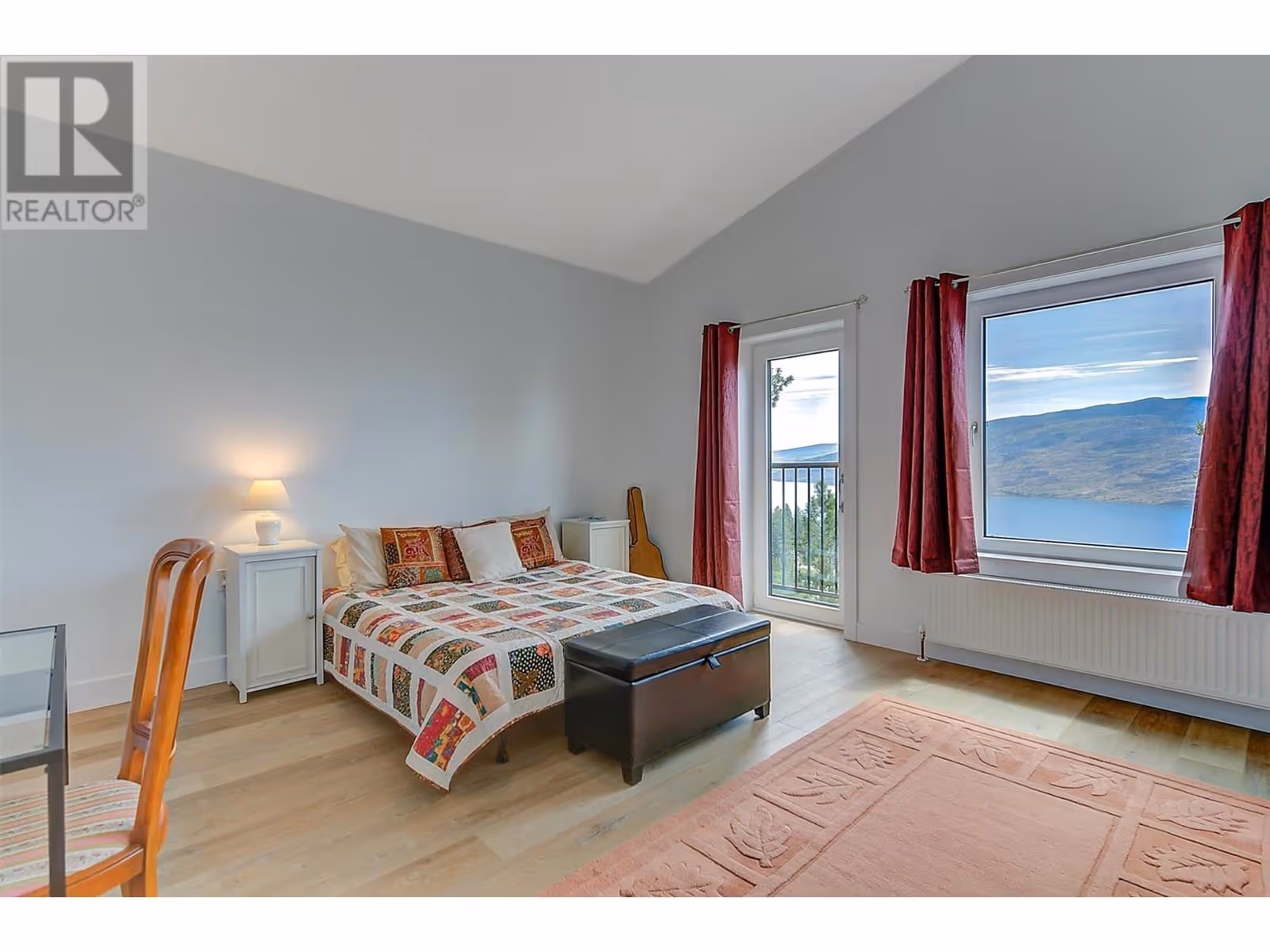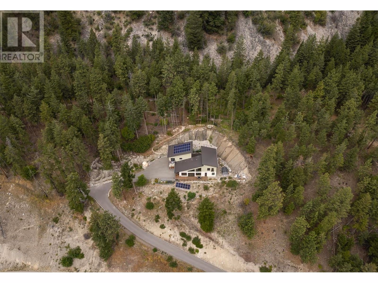 This 2019 owner-built home truly has the WOW factor and ticks all the right boxes. Perched on the hillside with stunning panoramic views of Okanagan Lake and the mountains, you can enjoy the breathtaking scenery from the spacious front deck or from inside the home. The bright, flexible, open-concept floor plan features soaring vaulted ceiling, a generous living room, and seamless flow into the dining area and beautifully appointed chef’s kitchen, complete with stainless steel appliances, quartz countertops, and a large island—allowing you to organize and entertain your way. Three generously sized bedrooms, each with walk-in closets and private access to modern bathrooms, offer exceptional space and comfort for family or guests. Step outside to relax in the peaceful garden patio surrounded by nature or explore the nearby trail system, providing a quiet, private, and serene lifestyle. Adding versatility, the home includes a separate one-bedroom legal suite with its own entrance—ideal for extended family, guests, or rental income. This high-performance home was owner-constructed to exceed the Building Code and is engineered to be fire-smart, wind-resistant, and earthquake-resistant for long-term protection and peace of mind. Year-round comfort is provided by the super high-efficiency design, radiant water heating system, and ductless split air conditioning units. The 10-kilowatt solar panel system, natural gas generator, and battery backup system support both sustainability and lower utility costs. For added convenience, the attached double garage features a Level 2 EV charger. This beautifully maintained Peachland home is the perfect blend of luxury, efficiency, and Okanagan lifestyle—move-in ready and not to be missed! (id:58842)