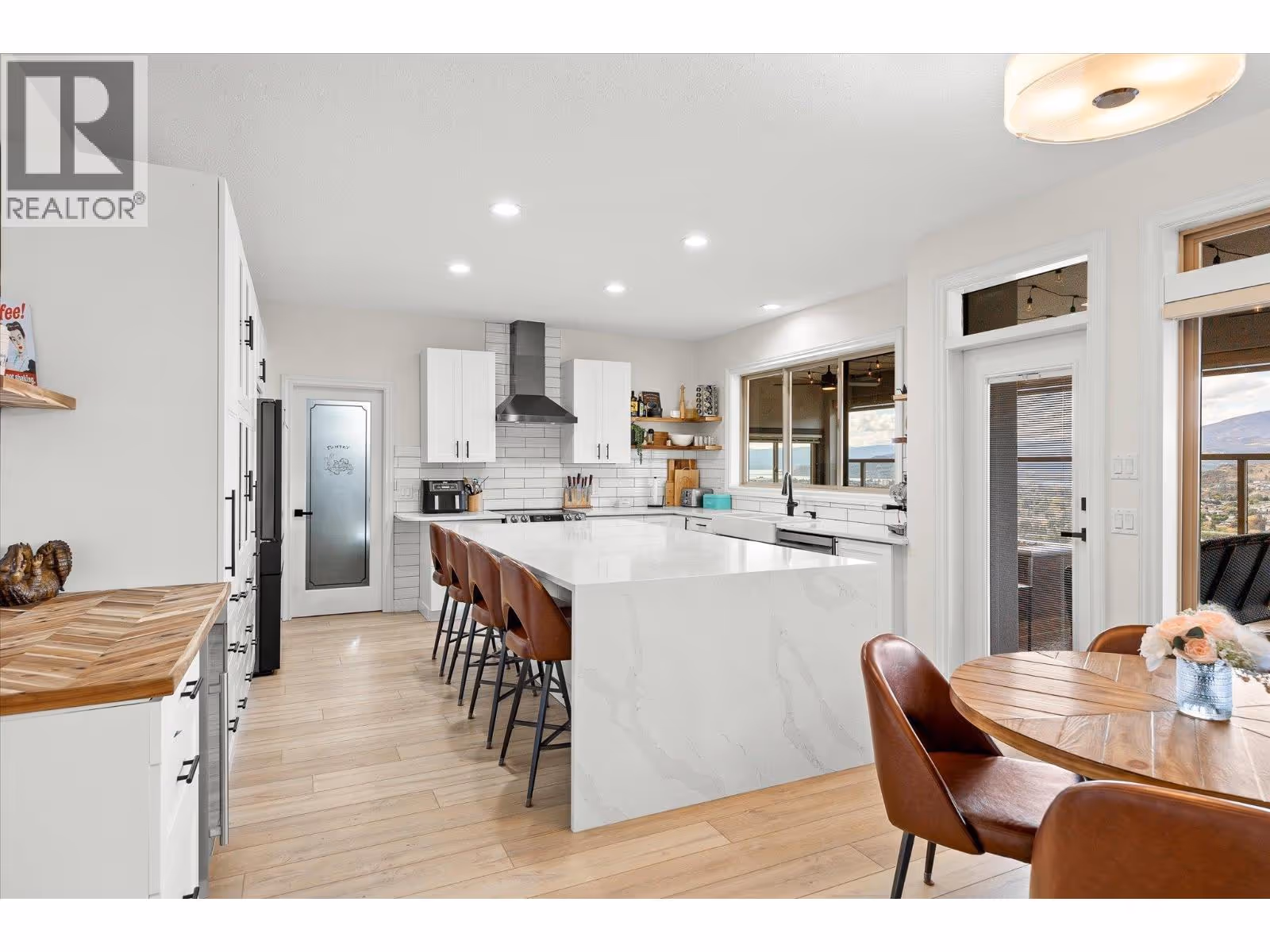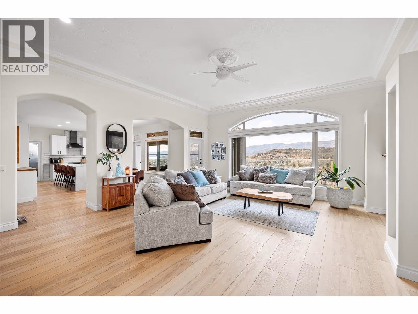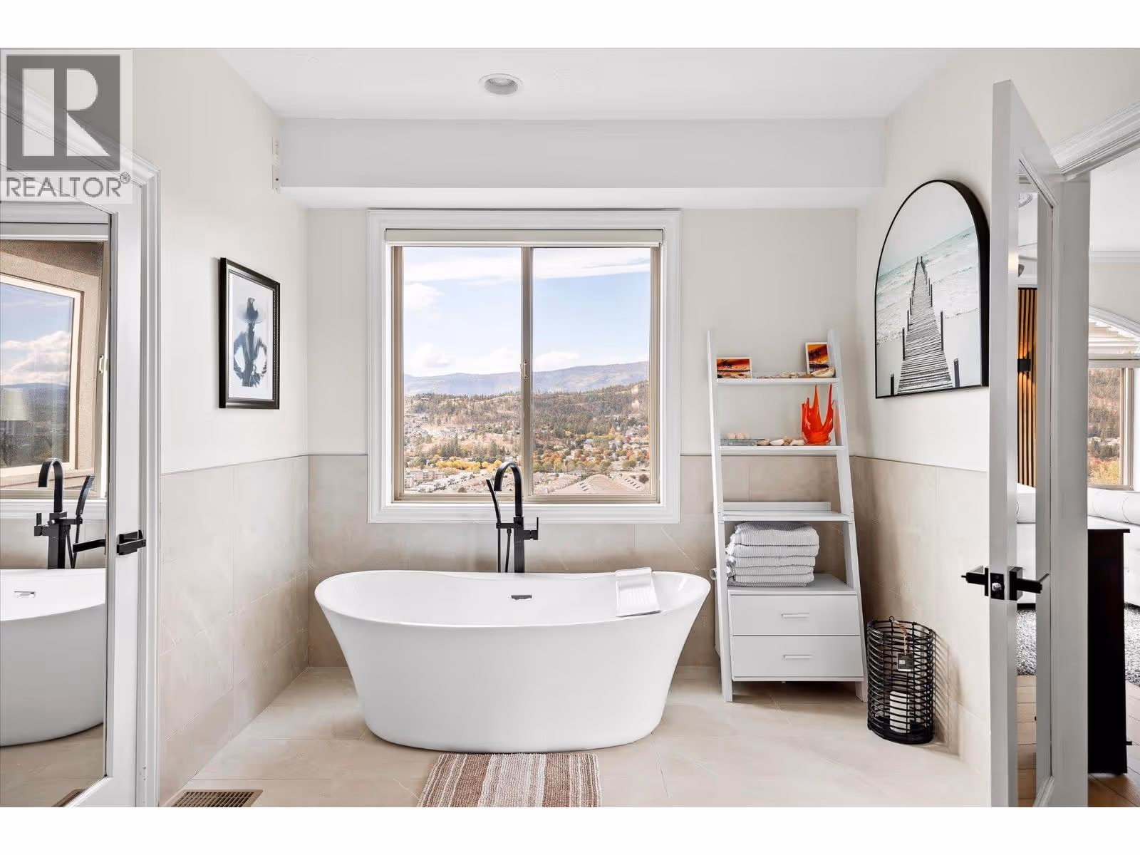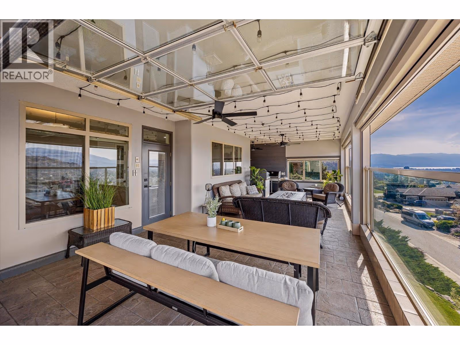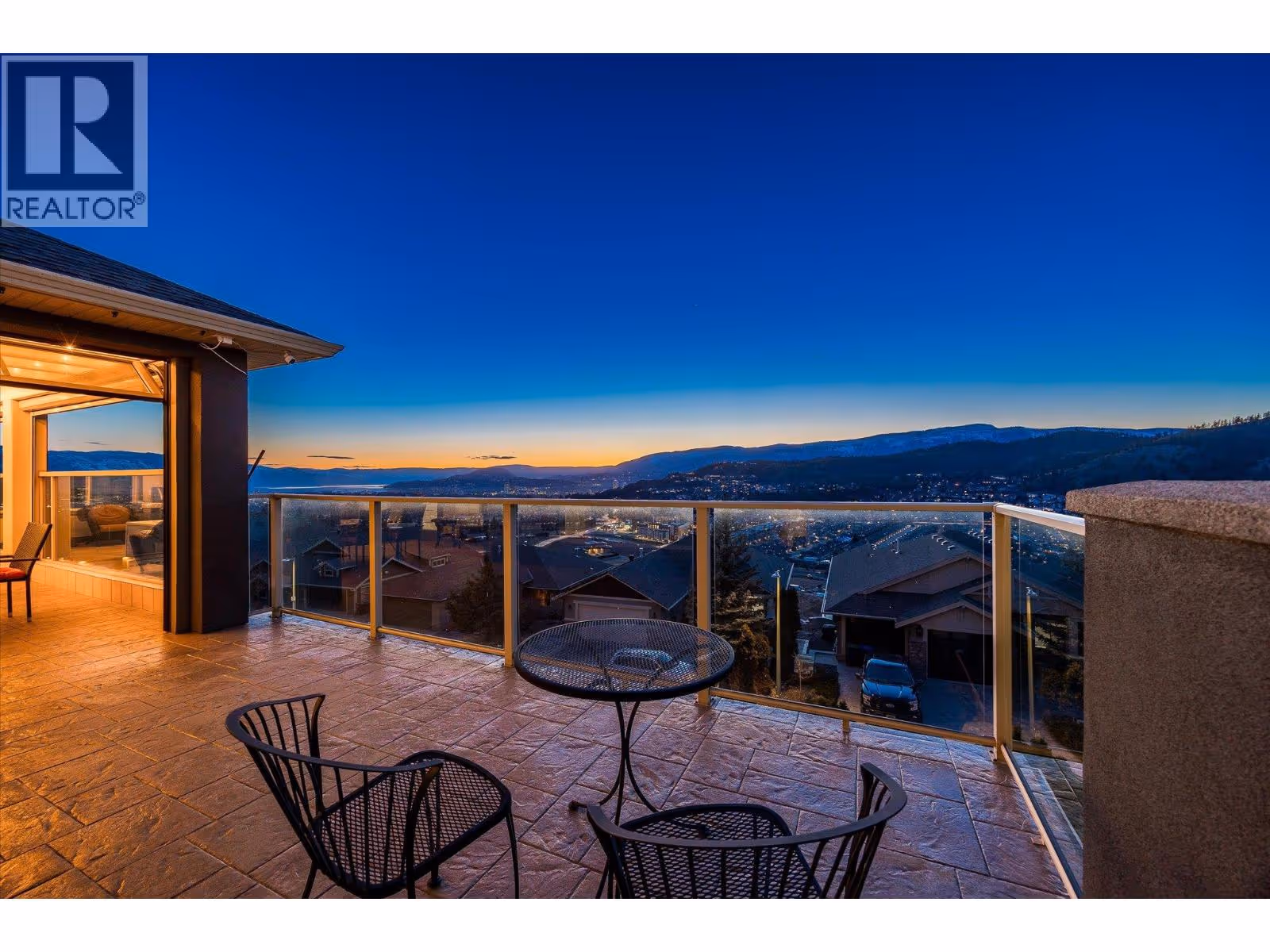 Elevate your lifestyle with this executive walkout rancher showcasing some of the best views in Kelowna. Perched in the sought-after Dilworth Mountain community of Denali Court, this residence offers over 5,200 sq. ft. of thoughtfully designed living space blending elegance with comfort. Inside, 12-foot ceilings, gleaming floors, and expansive windows frame the city skyline and shimmering lake. The gourmet kitchen features custom cabinetry, quartz countertops, perfect for entertaining and seamlessly connected to both indoor and outdoor living areas. A highlight is the unique indoor/outdoor pool. Low-maintenance and usable year-round, it provides endless enjoyment. Oversized bay doors open for sunny, open-air lounging. A steam shower completes this private wellness oasis—ideal for relaxation or fitness. The garage design is rare: an oversized two-car garage on the main level plus a single garage below, attached to a private office with separate entrance. Perfect for remote work, a studio, or quiet retreat. Situated on a 0.26-acre corner lot, the home offers more space and privacy than most nearby. Parking for up to nine vehicles, including RV space, adds convenience. Downtown Kelowna is only five minutes away for shopping, dining, and entertainment. Whether enjoying the panoramic views, retreating to the luxurious pool and steam room, this residence delivers the ultimate combination of luxury, nature, and convenience in one of the city’s most coveted locations. (id:58842)