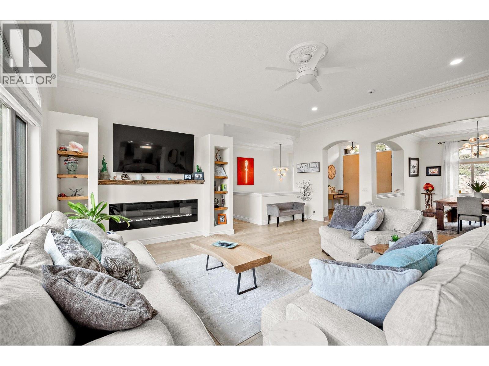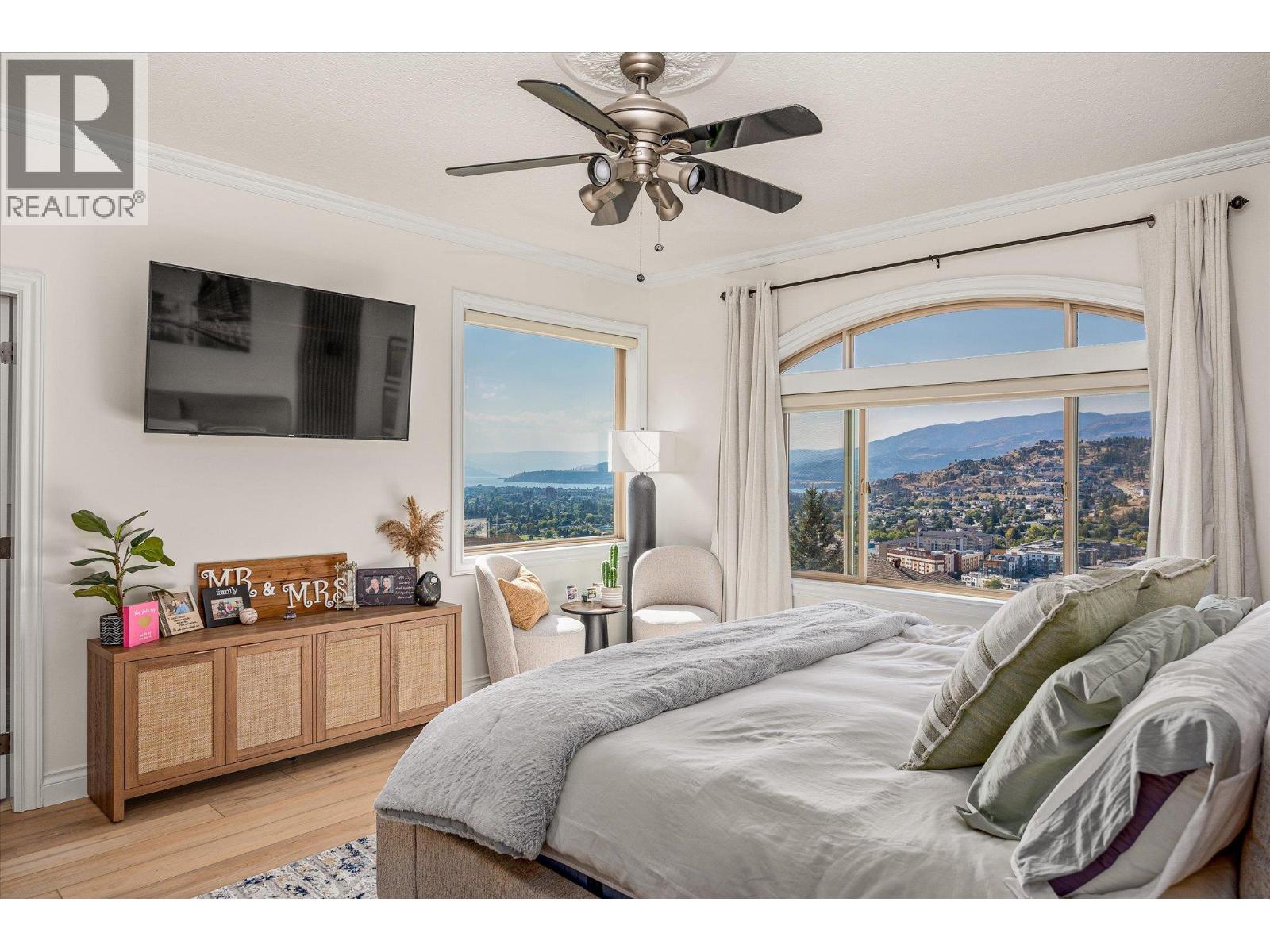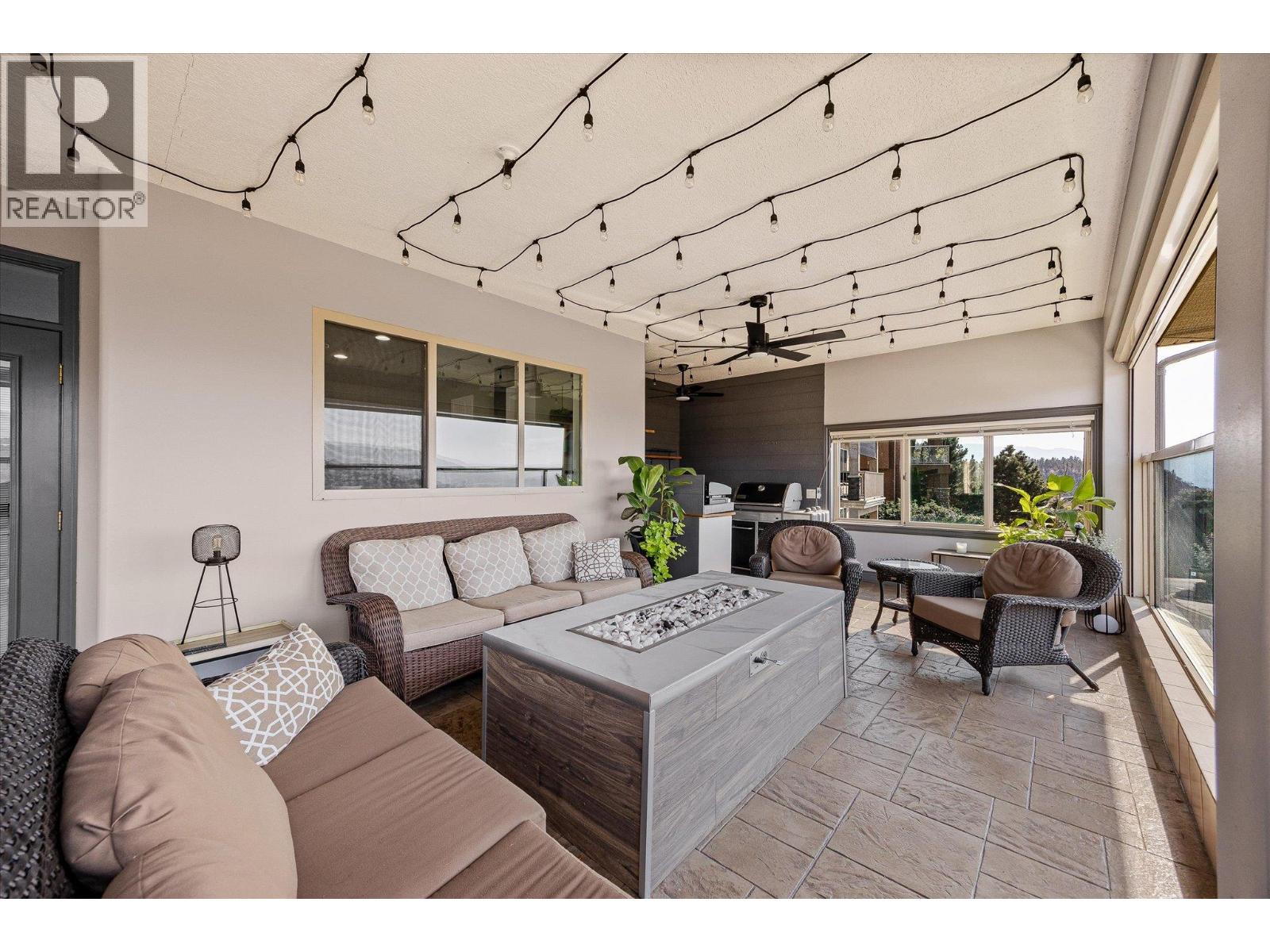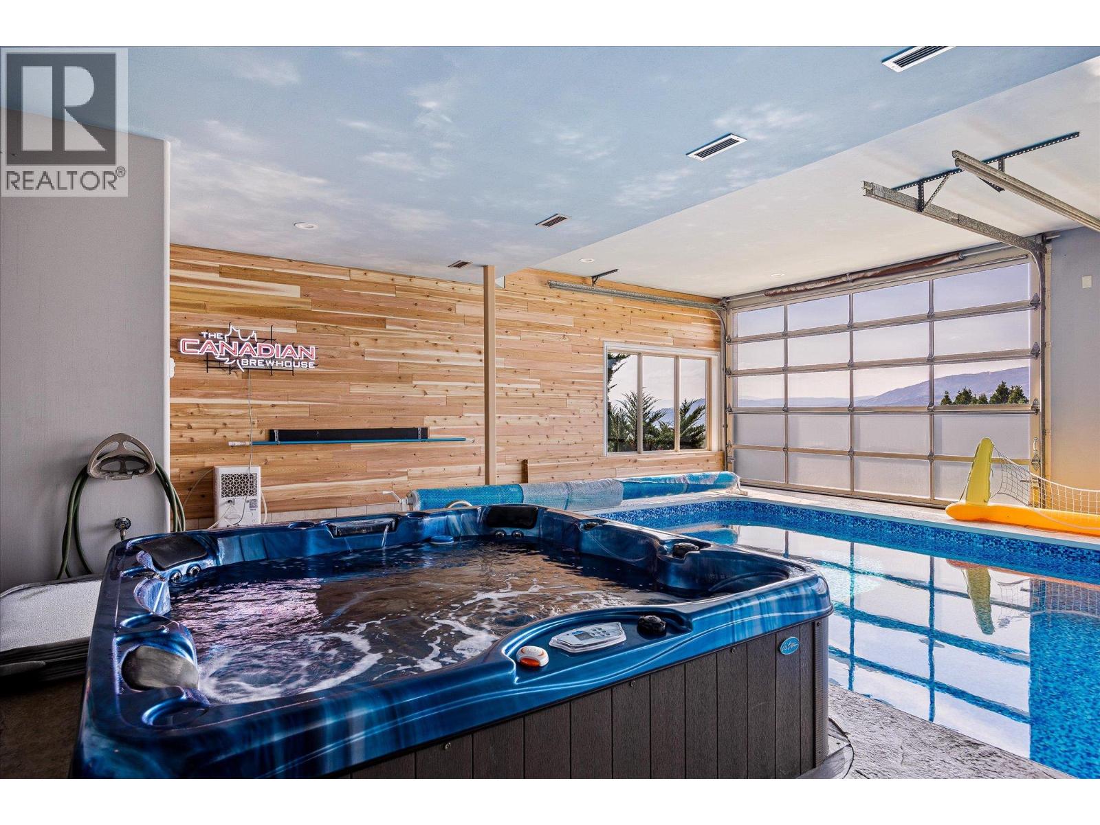 Elevate your lifestyle with this executive walkout rancher showcasing some of the best views in Kelowna. Perched in the sought-after Dilworth Mountain community of Denali Court, this residence offers over 5,200 sq. ft. of thoughtfully designed living space blending elegance with comfort. Inside, 12-foot ceilings, gleaming floors, and expansive windows frame the city skyline and shimmering lake. The gourmet kitchen features custom cabinetry, quartz countertops, perfect for entertaining and seamlessly connected to both indoor and outdoor living areas. A highlight is the unique indoor/outdoor pool. Low-maintenance and usable year-round, it provides endless enjoyment. Oversized bay doors open for sunny, open-air lounging. A steam shower completes this private wellness oasis—ideal for relaxation or fitness. The garage design is rare: an oversized two-car garage on the main level plus a single garage below, attached to a private office with separate entrance. Perfect for remote work, a studio, or quiet retreat. Situated on a 0.26-acre corner lot, the home offers more space and privacy than most nearby. Parking for up to nine vehicles, including RV space, adds convenience. Downtown Kelowna is only five minutes away for shopping, dining, and entertainment. Whether enjoying the panoramic views, retreating to the luxurious pool and steam room, this residence delivers the ultimate combination of luxury, nature, and convenience in one of the city’s most coveted locations. (id:58842)