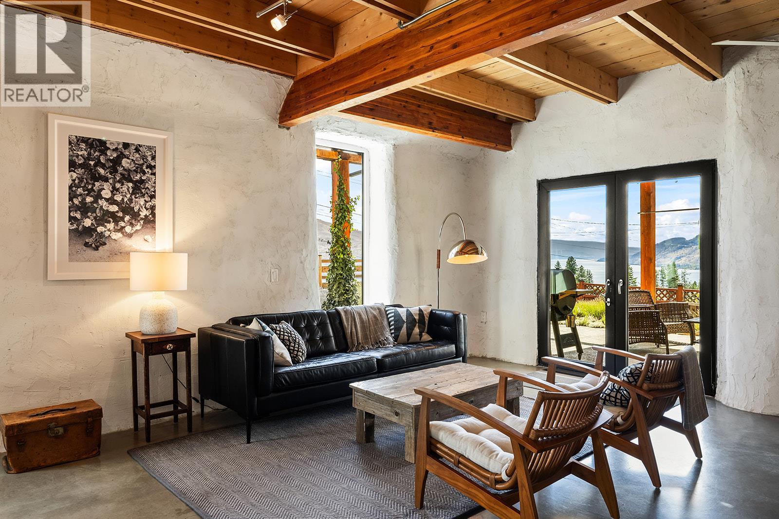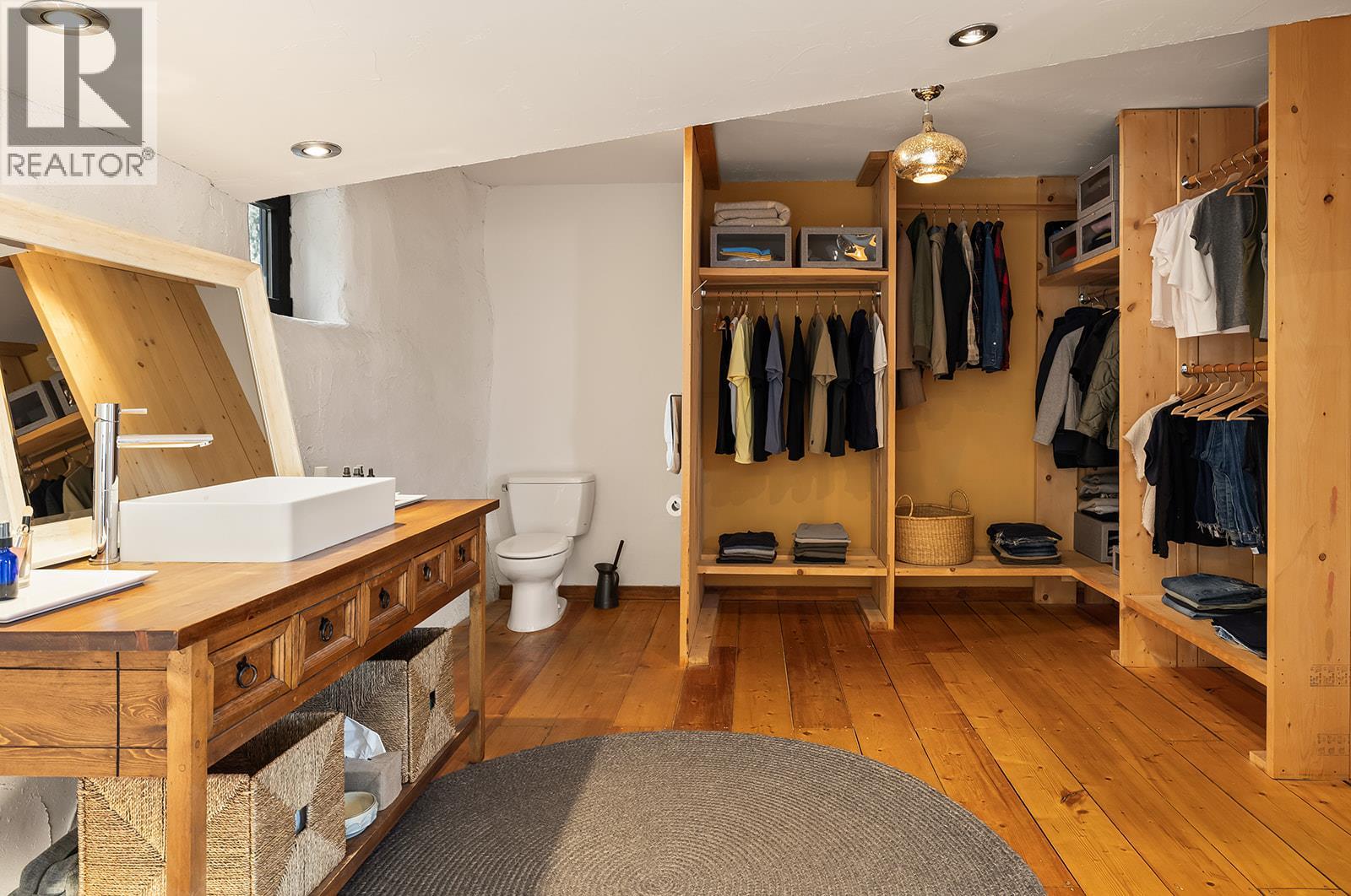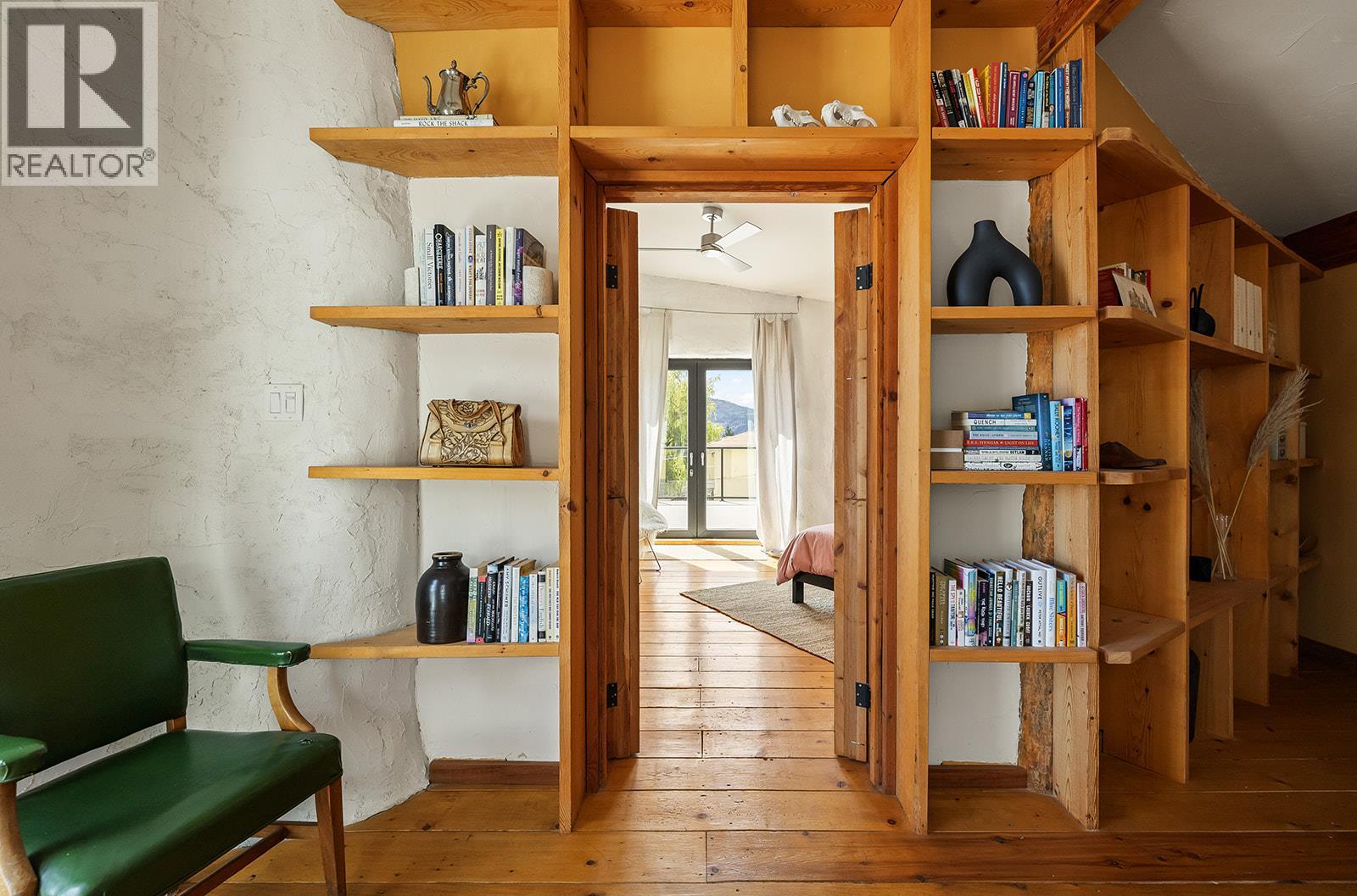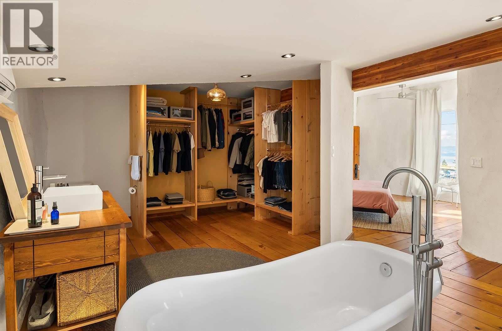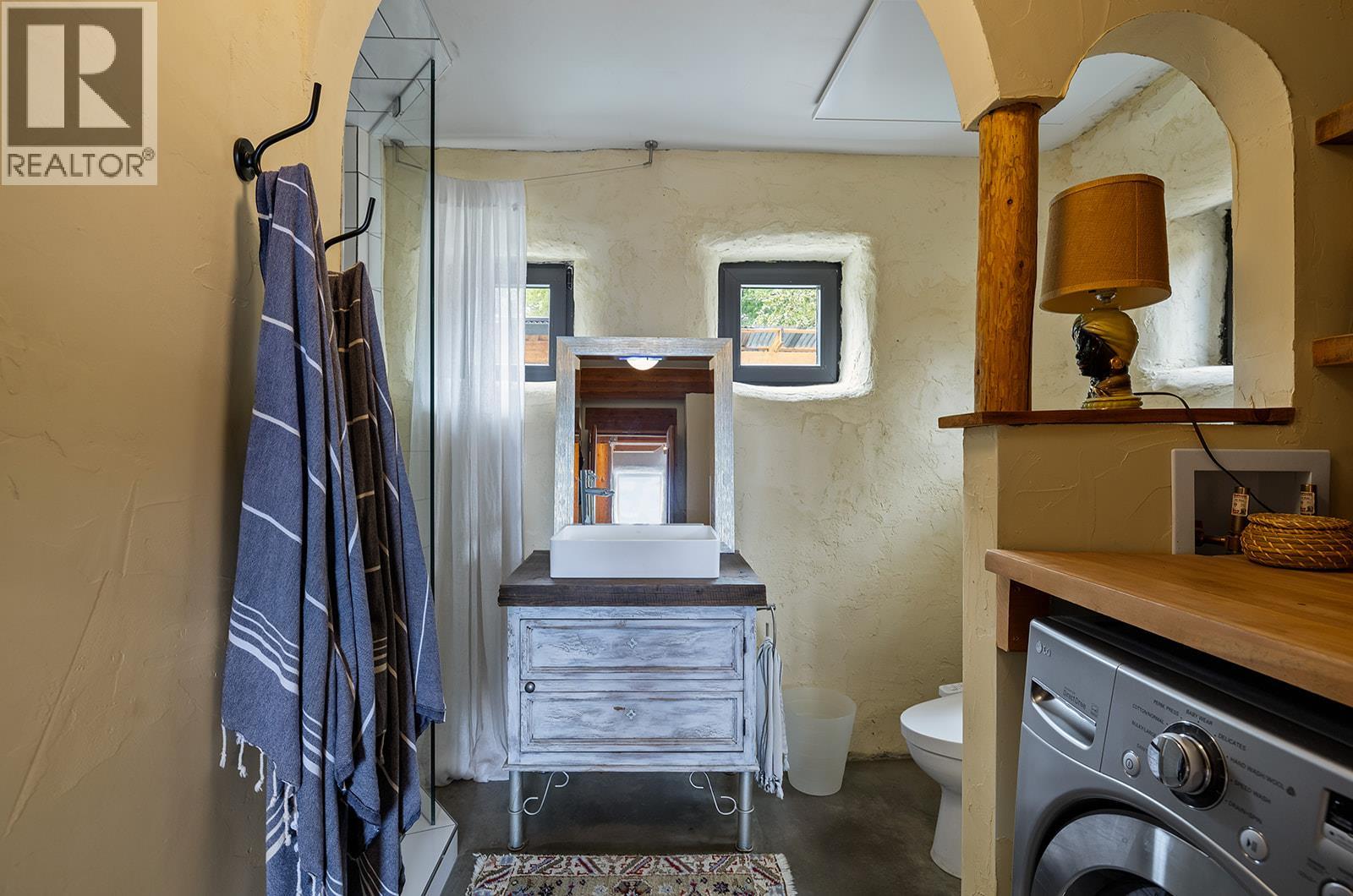 This one of a kind timber-frame straw-bale home blends architectural beauty with exceptional energy efficiency. Thoughtfully designed and extensively upgraded, this residence delivers remarkable heat retention and year round comfort with extremely low operating costs, averaging just three cords of wood annually for heating. The home features a Blaze King wood stove with long burn times, hydronic in floor heating on the main level, dual heat pumps for heating and cooling, and high performance tilt turn Innotech windows and doors. The ICF concrete slab, 18 inch straw bale walls, and reclaimed wood flooring naturally regulate temperature throughout the home, with upper level floors back beveled to allow warm air circulation. The kitchen showcases a wood fired Forno pizza oven, massive eat up island and apron sink, while the spa inspired main bathroom offers a 2025 tiled walk in shower, bidet, and in floor heat. Outdoors you will find a large covered patio, solar heated saltwater lap pool, veranda, newer fencing with custom metal caps, and a durable metal accented exterior. Major updates include a 2018 roof and eavestroughs, 2019 Duradeck upper deck, 2024 heat pump, and sewer brought onto the property with connection at the lot line. The property may support a future double garage with carriage house, buyer to verify. Built by the original owner with a passion for sustainable living, this is a rare opportunity to own a highly efficient and beautifully crafted home. (id:58842)