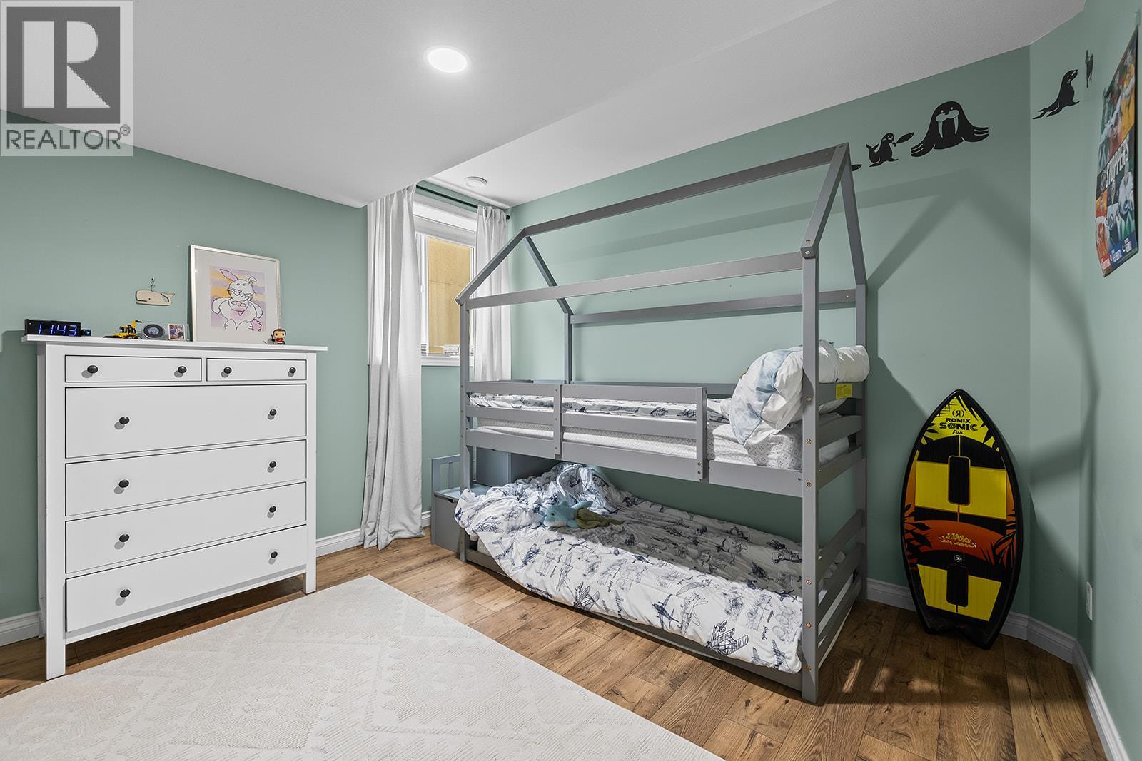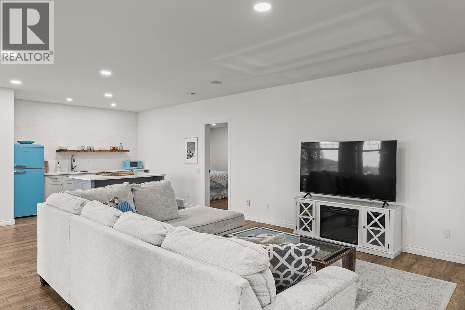 Stylish and inviting walk-out rancher in sought-after Upper Mission designed for the Okanagan lifestyle and panoramic lake views. Approximately 3,812 sq ft, this 5 bed, 4 bath home flows through bright open-concept living where hardwood floors and floor-to-ceiling windows frame sparkling water views. Gorgeous design details throughout including beams, arch entries, and wood slat wall features create a stylish modern farmhouse interior. The main level connects kitchen, breakfast, dining, and living spaces seamlessly, with a spacious primary suite featuring a walk-in closet and ensuite, a second bedroom, laundry, and a convenient powder room. The lower level expands the layout with additional bedrooms, a large rec area, great room, second kitchen, and a wine room, creating flexibility and privacy for guests or extended family. Step outside to a private setting with a hot tub, framed by hedges and rockwork, plus a double car garage and driveway with parking for four. Centrally located near Quarry Park, Canyon Falls Middle School, and Summerhill Winery in one of Upper Mission’s most desirable areas. (id:58842)