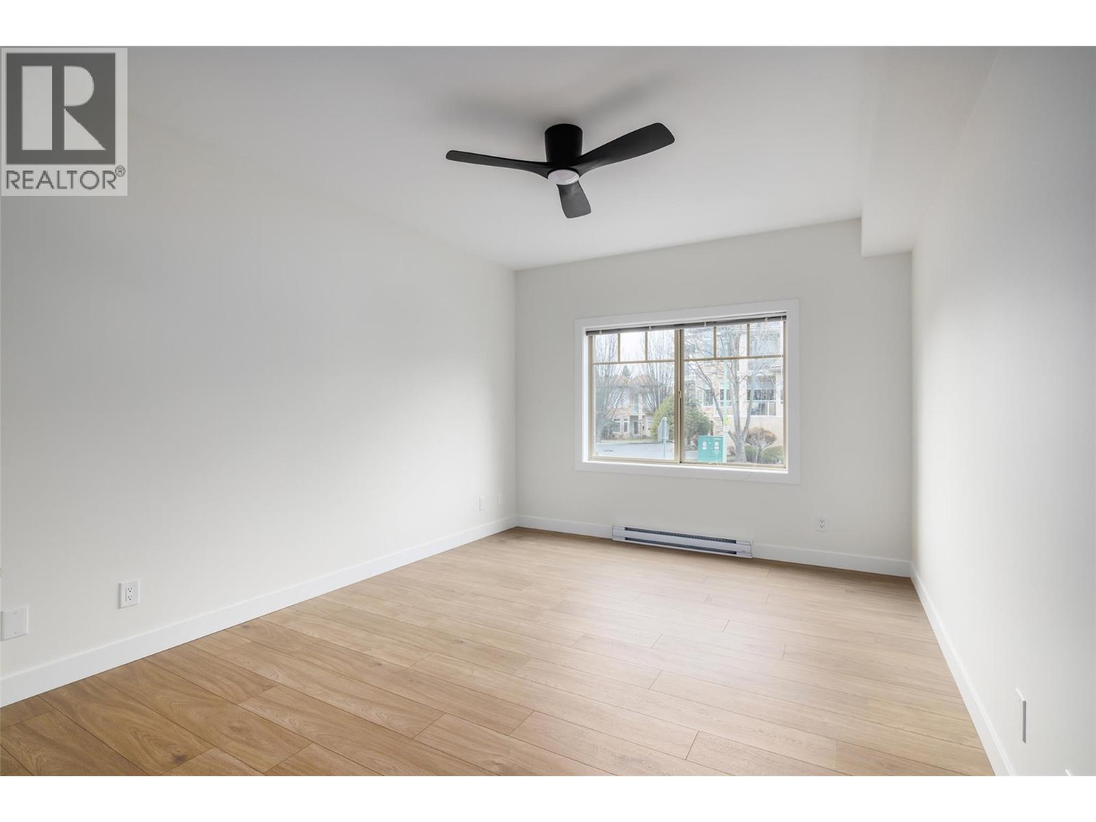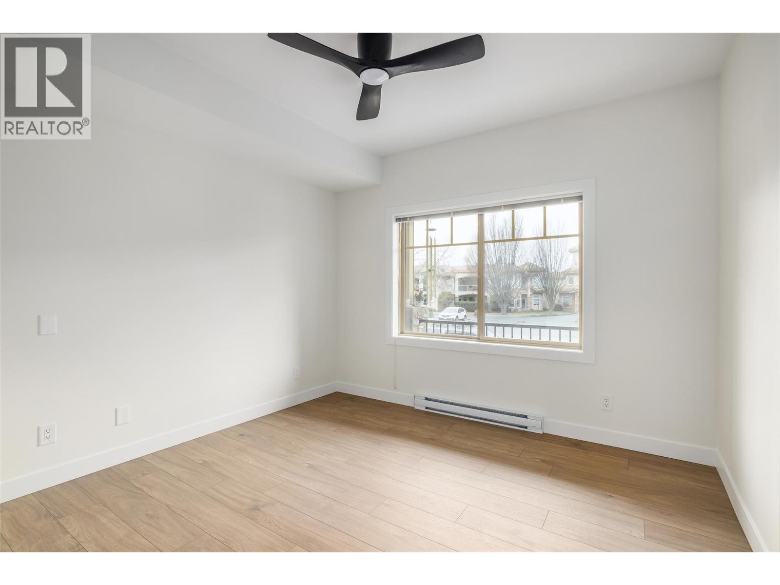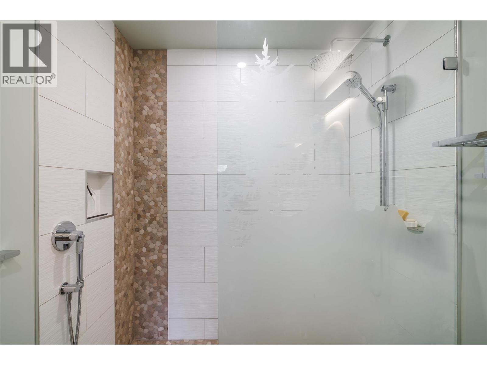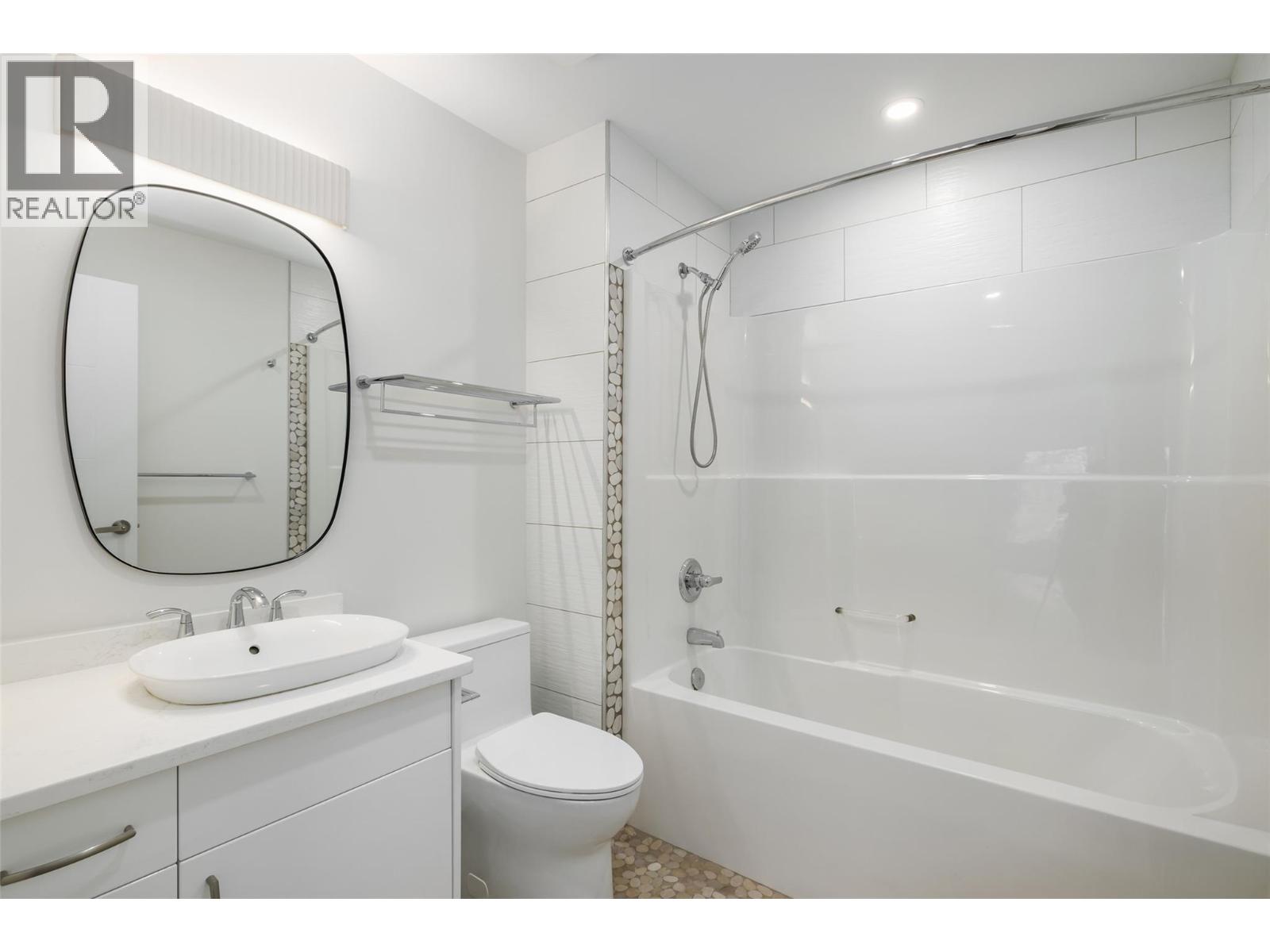 Beautifully renovated from floor to ceiling nothing untouched! 2 bed, 2 bath residence just steps from the shoreline in Kelowna’s desirable Lower Mission. Moments from Bluebird Beach Park, coffee shops, transit, H2O Adventure + Fitness Centre. This bright home offers effortless Okanagan living in a boutique 26-unit building. Interior showcases wide-plank premium laminate flooring, fresh paint throughout including ceilings, new interior doors, modern hardware and updated lighting. The completely redesigned kitchen by Dream Easy Kitchens features high gloss white cabinetry with soft-close hardware, quartz countertops, a peninsula with seating for four and a full suite of LG appliances including induction range. The open-concept living and dining area is filled with natural light and extends to a covered balcony overlooking landscaped gardens, creating a welcoming space to relax or entertain. The spacious primary retreat features custom built-in wardrobes and a beautifully renovated spa-inspired ensuite with heated natural stone floors, quartz vanity and a fully tiled walk-in shower with rainfall fixture and etched glass enclosure. A second bedroom with custom cabinetry and a refreshed 4-piece bath (2026) offers comfortable space for guests or a home office. In-suite laundry, large entry pantry/storage, baseboard heating with A/C unit, secure parking and storage. A turnkey opportunity to enjoy a fully updated home just moments from the lake. (id:58842)