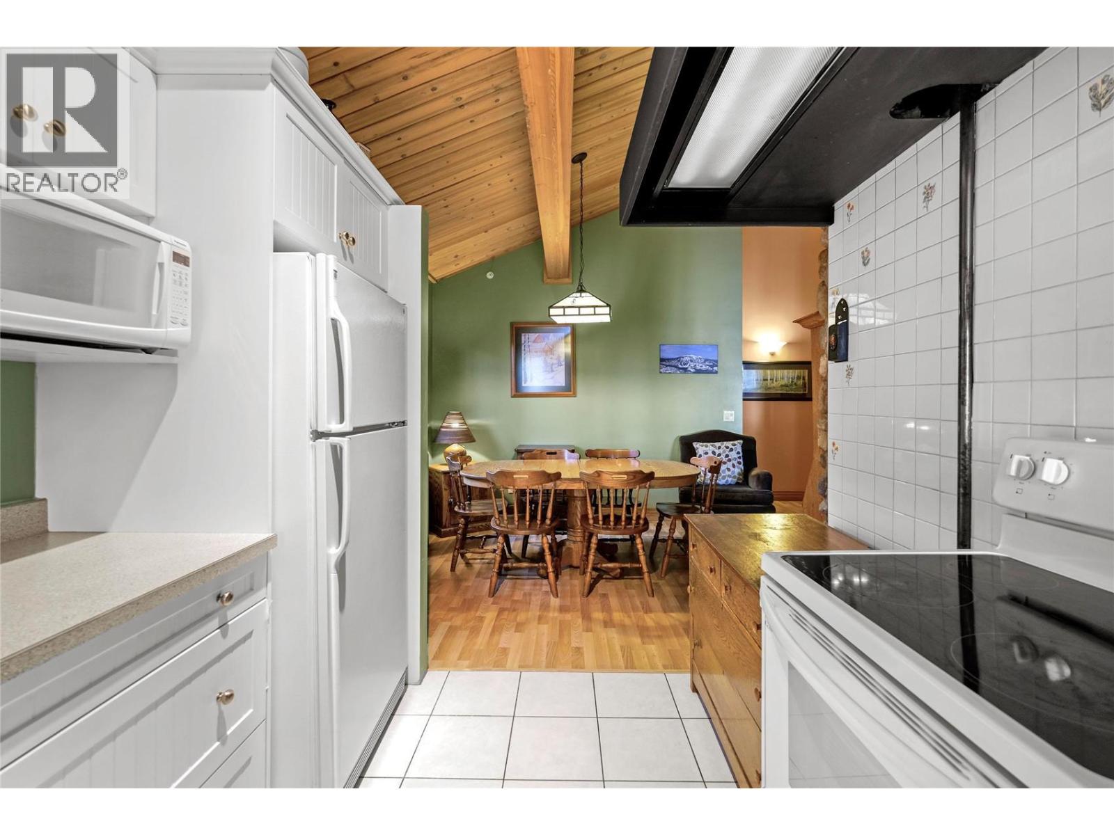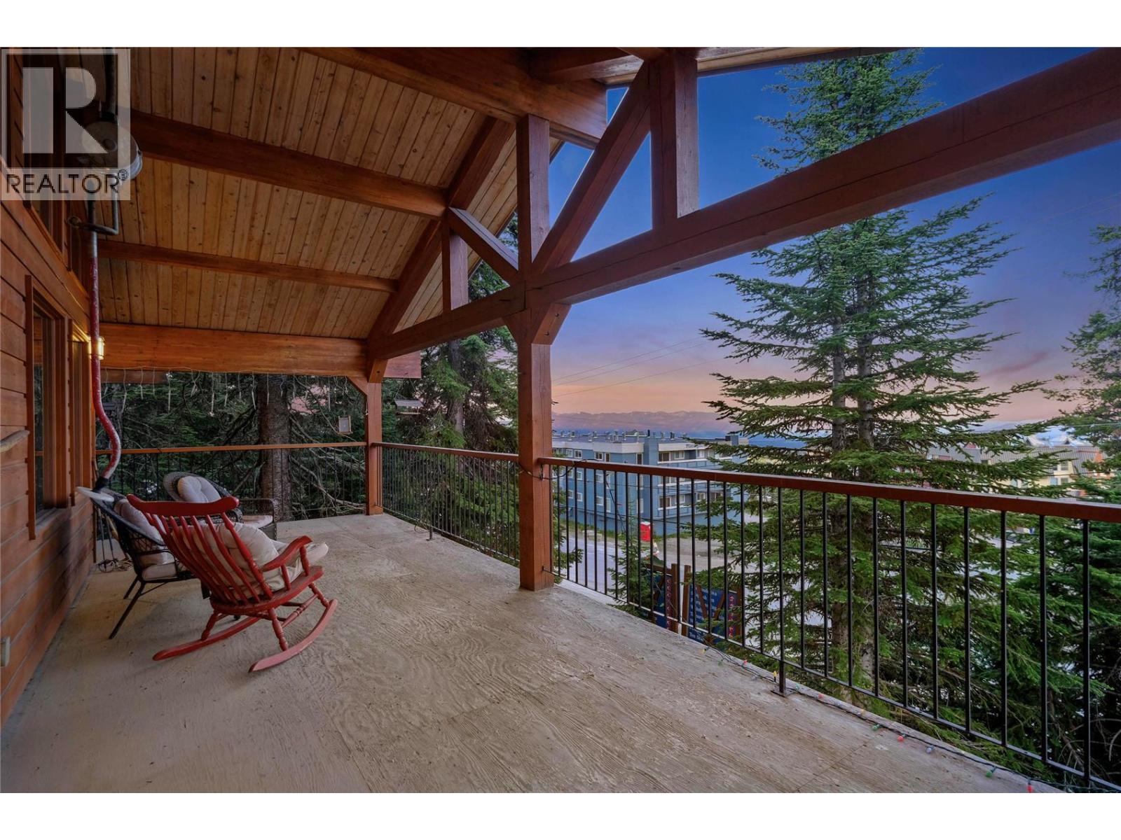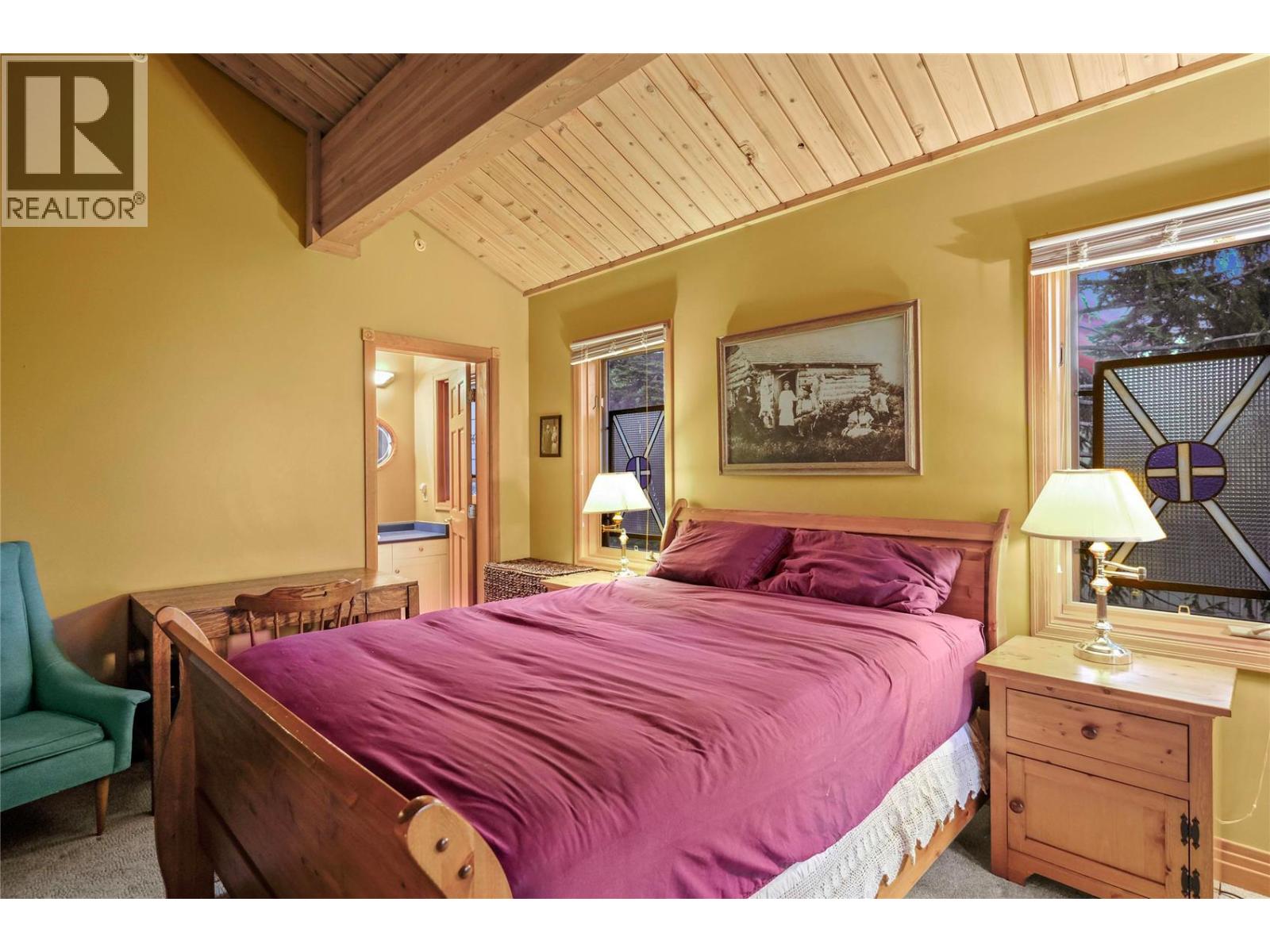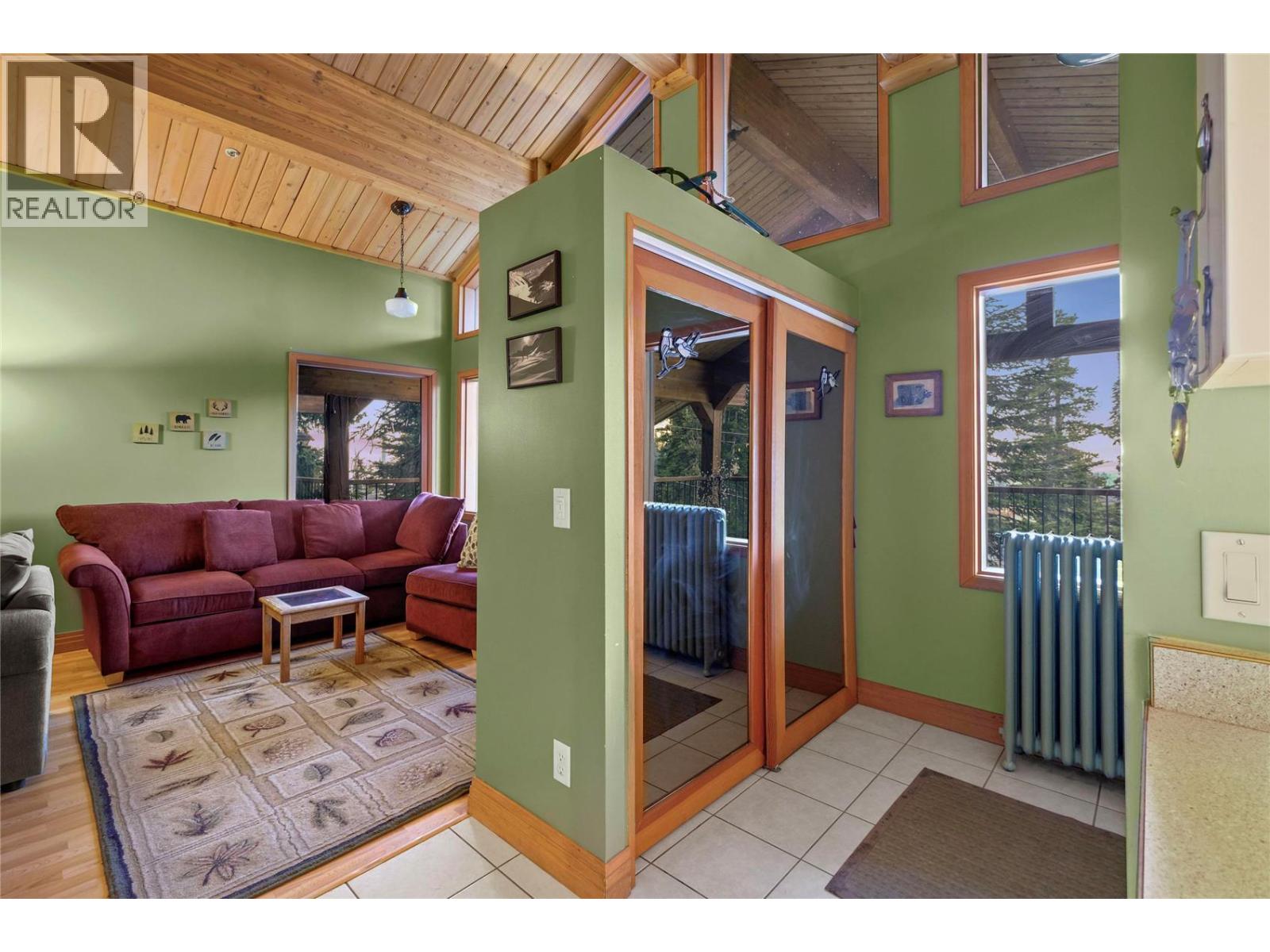 Spacious 2,948 sq. ft. ski-in/ski-out stand-alone chalet ideally positioned at the very top of the village at Big White Ski Resort, offering exceptional privacy on a rare 0.20-acre treed lot with ample parking. Enjoy breathtaking mountain views from dual balconies and unwind in the private hot tub after a day on the slopes. This classic alpine retreat showcases soaring vaulted ceilings, impressive timber construction, and a thoughtful layout with a bathroom for every bedroom. The upper level is a true showpiece, featuring a dramatic floor-to-ceiling stone fireplace anchoring the open-concept kitchen, dining, and living area—perfect for entertaining. Three upper-level bedrooms each offer their own ensuite, while an additional bedroom and bath are located on the main level. The spacious lock-off suite includes three bedrooms and a full bathroom, creating excellent flexibility for personal use or rental income. With strong short-term and medium-term rental potential, this property offers both lifestyle and investment appeal. Fully furnished with the essentials and ready for your personal touch. This is a rare opportunity to own a private mountain getaway in one of Big White’s most desirable ski-in/ski-out locations. View the virtual tour and book your private showing today. (id:58842)