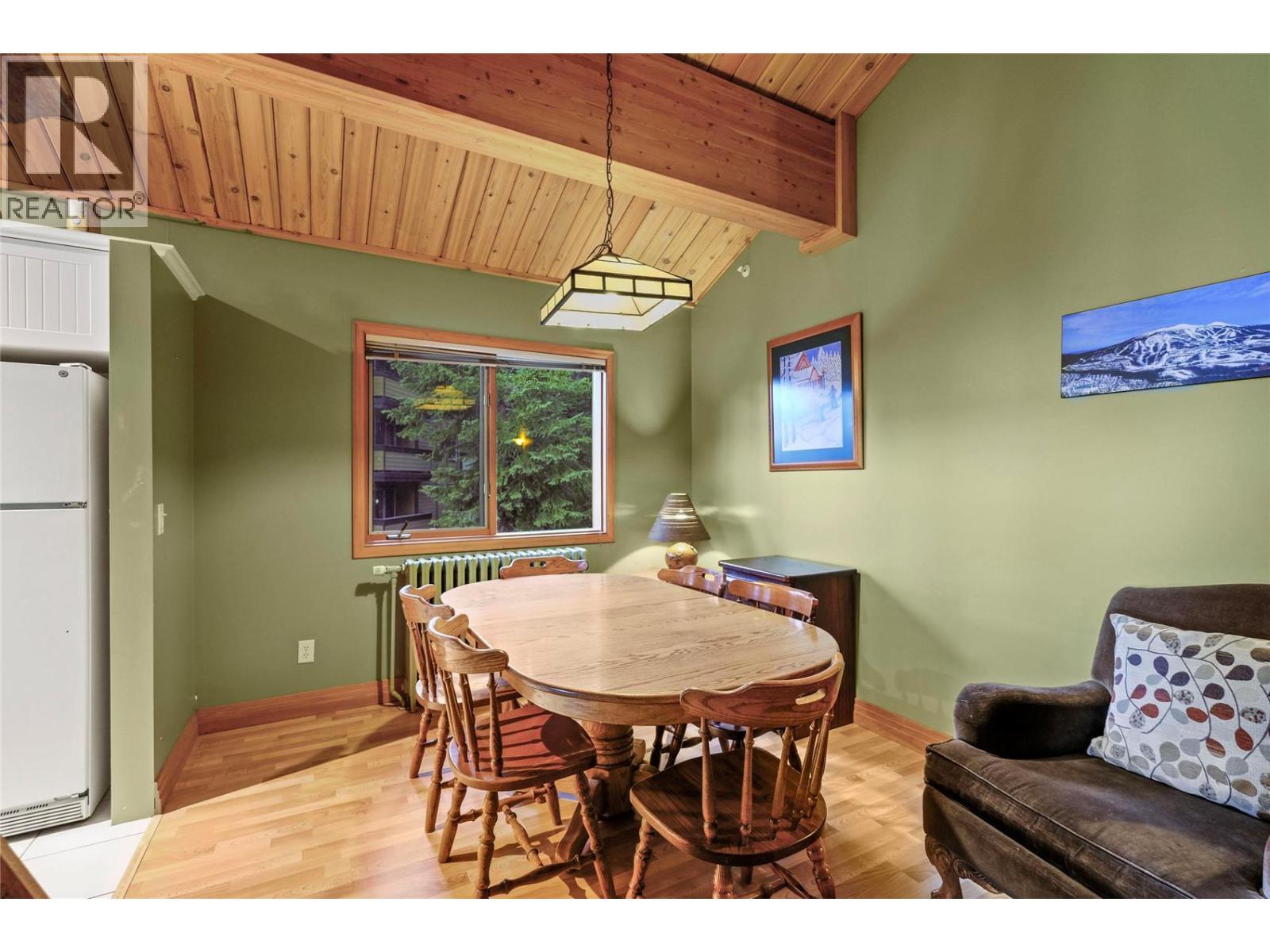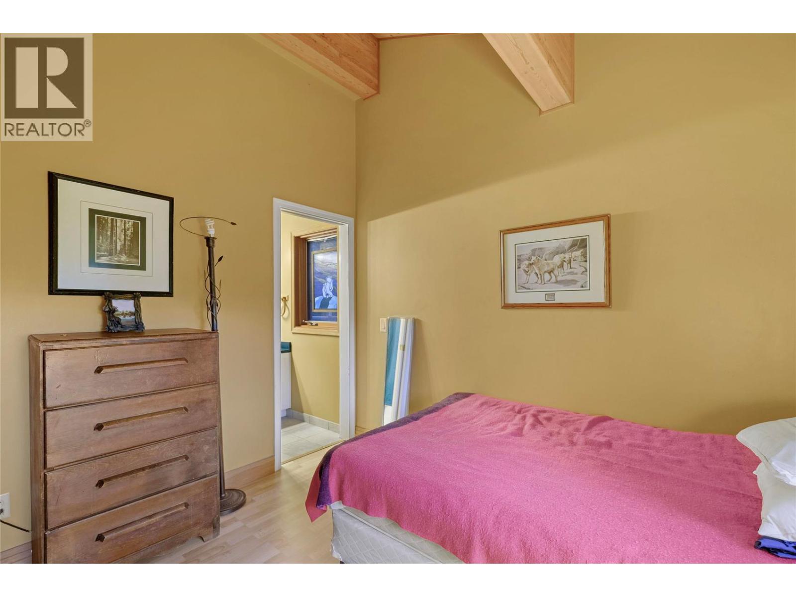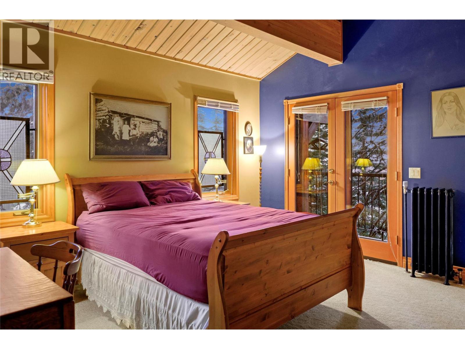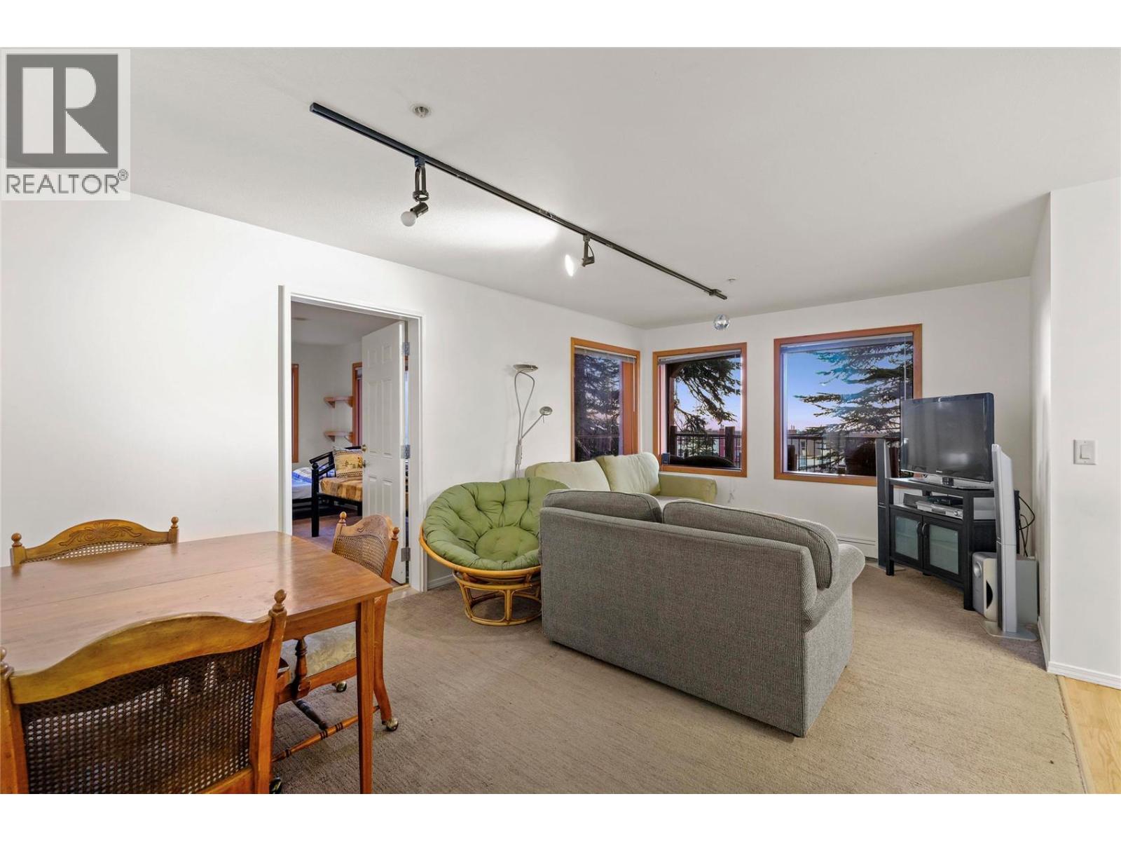 Spacious 2,948 sq. ft. ski-in/ski-out stand-alone chalet ideally positioned at the very top of the village at Big White Ski Resort, offering exceptional privacy on a rare 0.20-acre treed lot with ample parking. Enjoy breathtaking mountain views from dual balconies and unwind in the private hot tub after a day on the slopes. This classic alpine retreat showcases soaring vaulted ceilings, impressive timber construction, and a thoughtful layout with a bathroom for every bedroom. The upper level is a true showpiece, featuring a dramatic floor-to-ceiling stone fireplace anchoring the open-concept kitchen, dining, and living area—perfect for entertaining. Three upper-level bedrooms each offer their own ensuite, while an additional bedroom and bath are located on the main level. The spacious lock-off suite includes three bedrooms and a full bathroom, creating excellent flexibility for personal use or rental income. With strong short-term and medium-term rental potential, this property offers both lifestyle and investment appeal. Fully furnished with the essentials and ready for your personal touch. This is a rare opportunity to own a private mountain getaway in one of Big White’s most desirable ski-in/ski-out locations. View the virtual tour and book your private showing today. (id:58842)