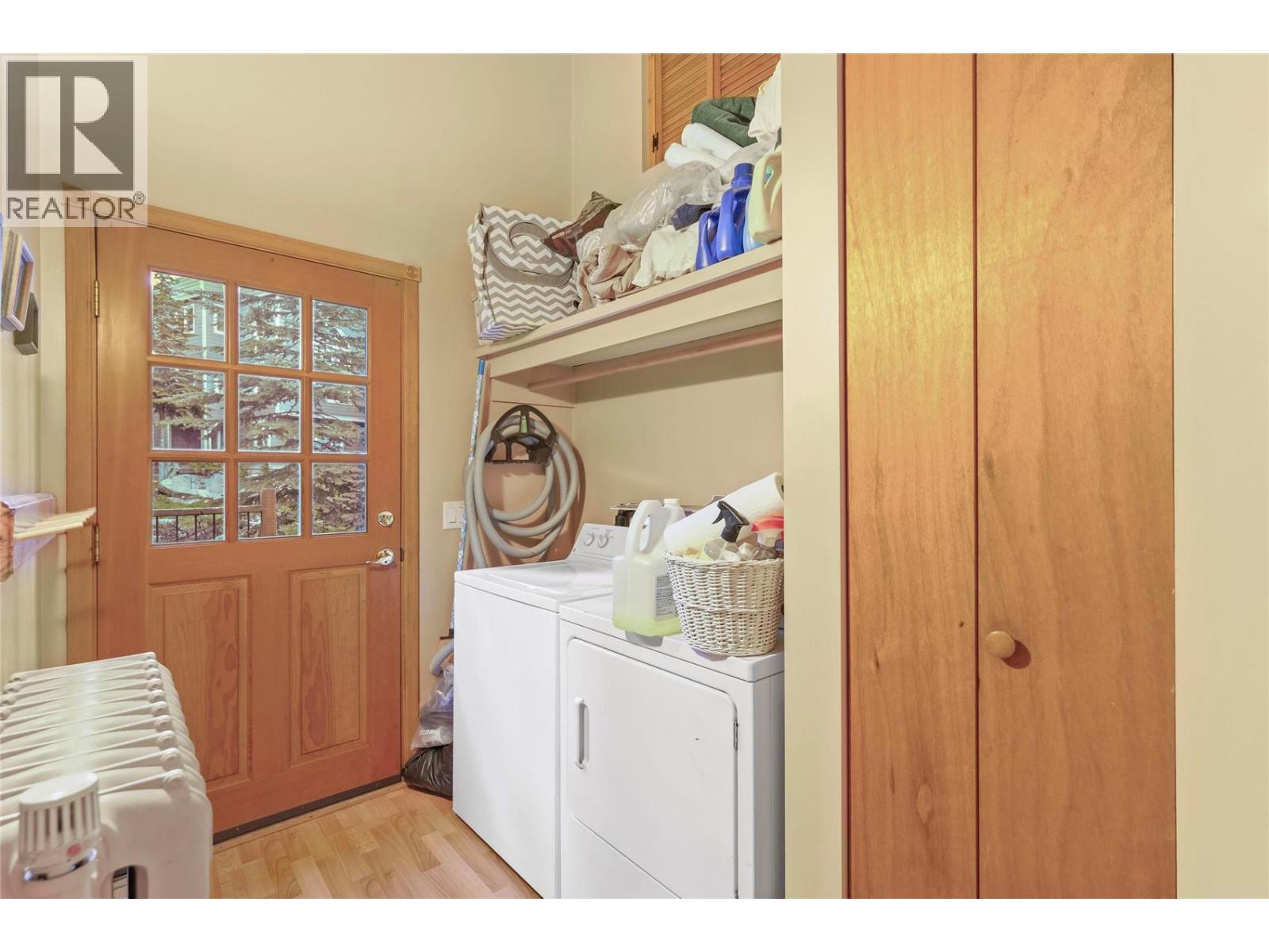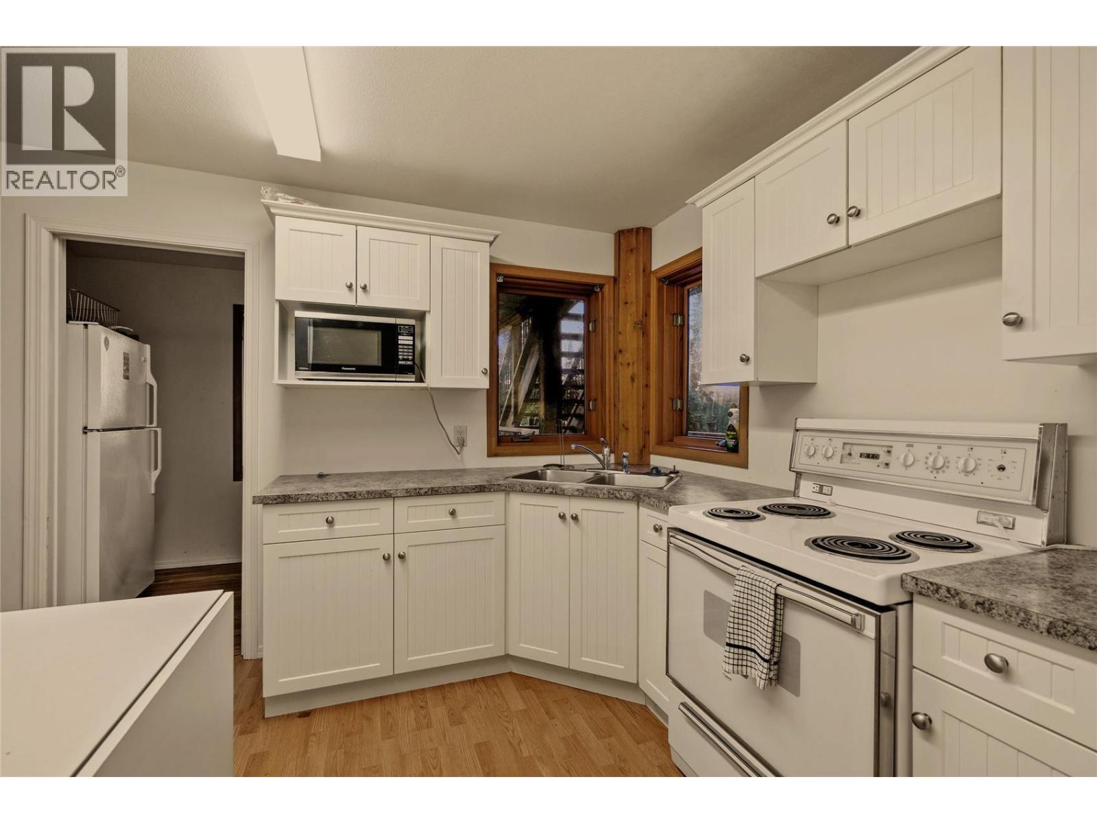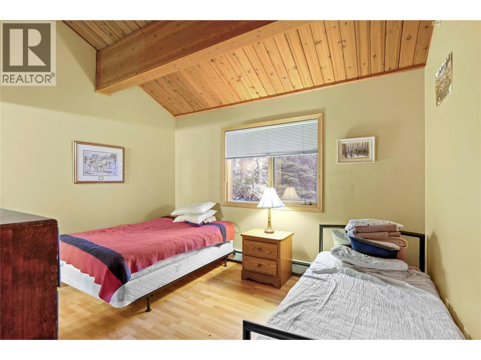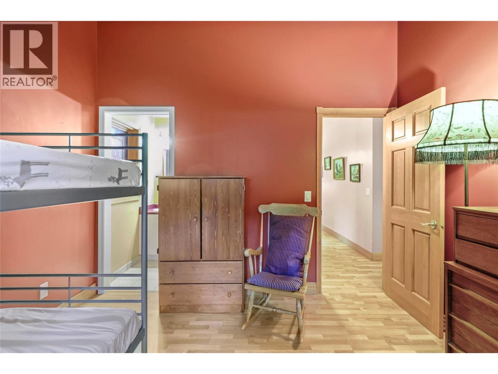 Spacious 2,948 sq. ft. ski-in/ski-out stand-alone chalet ideally positioned at the very top of the village at Big White Ski Resort, offering exceptional privacy on a rare 0.20-acre treed lot with ample parking. Enjoy breathtaking mountain views from dual balconies and unwind in the private hot tub after a day on the slopes. This classic alpine retreat showcases soaring vaulted ceilings, impressive timber construction, and a thoughtful layout with a bathroom for every bedroom. The upper level is a true showpiece, featuring a dramatic floor-to-ceiling stone fireplace anchoring the open-concept kitchen, dining, and living area—perfect for entertaining. Three upper-level bedrooms each offer their own ensuite, while an additional bedroom and bath are located on the main level. The spacious lock-off suite includes three bedrooms and a full bathroom, creating excellent flexibility for personal use or rental income. With strong short-term and medium-term rental potential, this property offers both lifestyle and investment appeal. Fully furnished with the essentials and ready for your personal touch. This is a rare opportunity to own a private mountain getaway in one of Big White’s most desirable ski-in/ski-out locations. View the virtual tour and book your private showing today. (id:58842)