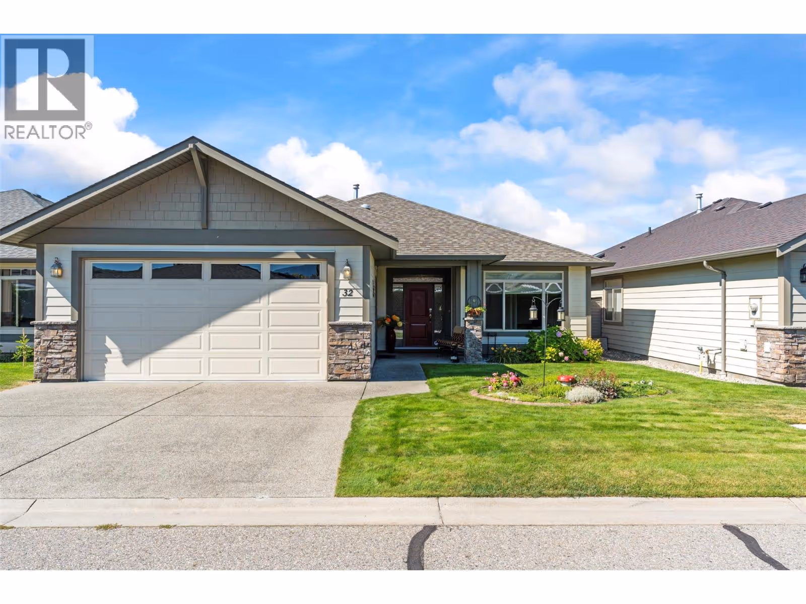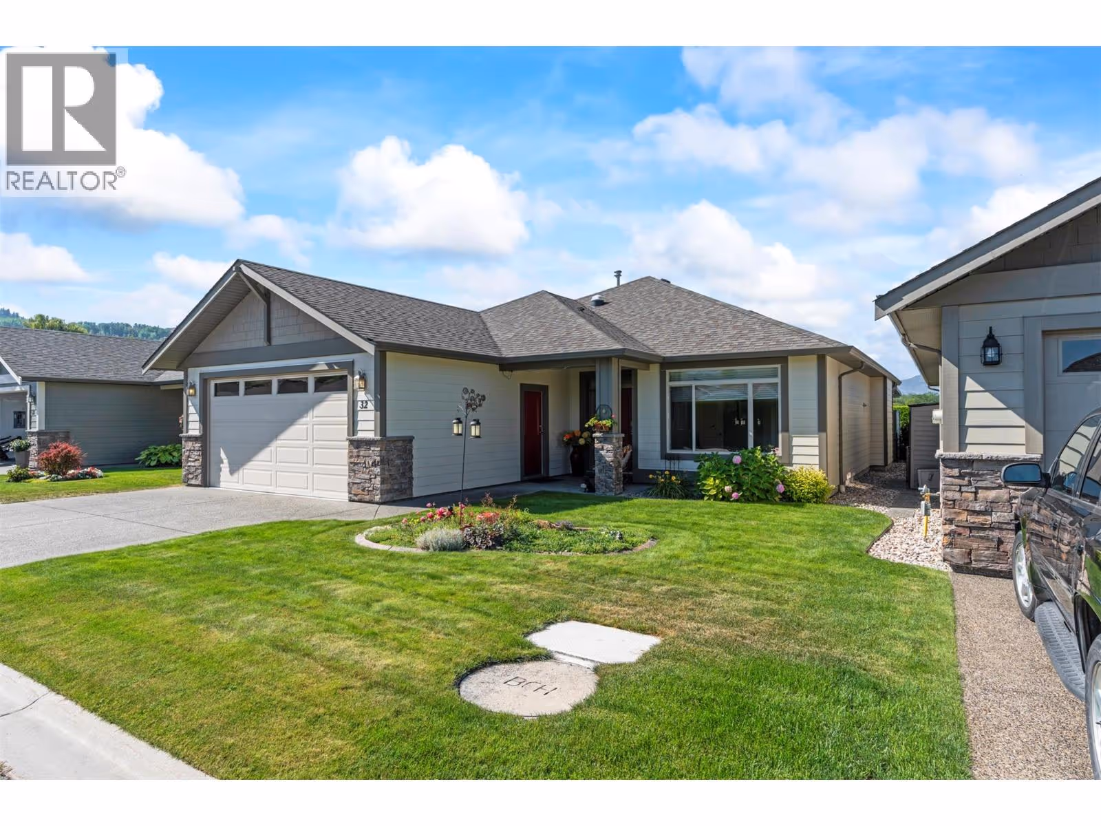 First time on MLS and HIGHLY sought after in one of Vernon's best Adult communities!!! #32 at The Breeze is the epitome of ""Pride of Ownership"". From it's gleaming hardwood floors to its bright and inviting open plan, on to the covered patio in it's exquisite private backyard space you'll enjoy the safe and secure lifestyle of this lock and leave gated community. Kitchen, Dining and Living Rooms flow through to the backyard for entertaining family and friends. 3 bedrooms, 2 full bathrooms easily accommodate, and the large laundry off double garage are both spacious, bright and exceptional clean throughout. Enjoy conveniences of custom height kitchen counter tops, Built-in Vacuum system, skylights and an extremely affordable strata fee of only $175/month. An opportunity not to be missed!!!! (id:58842)