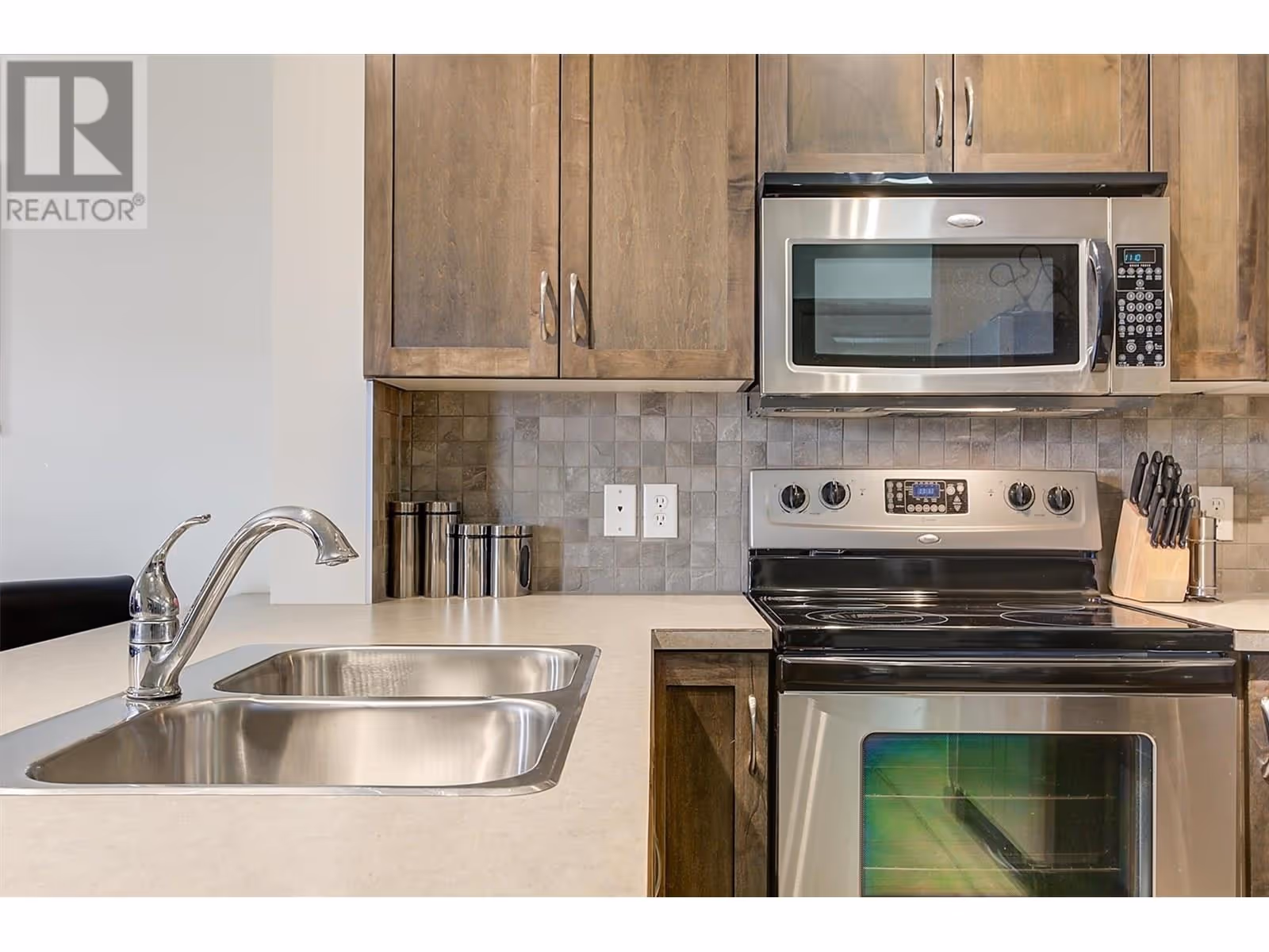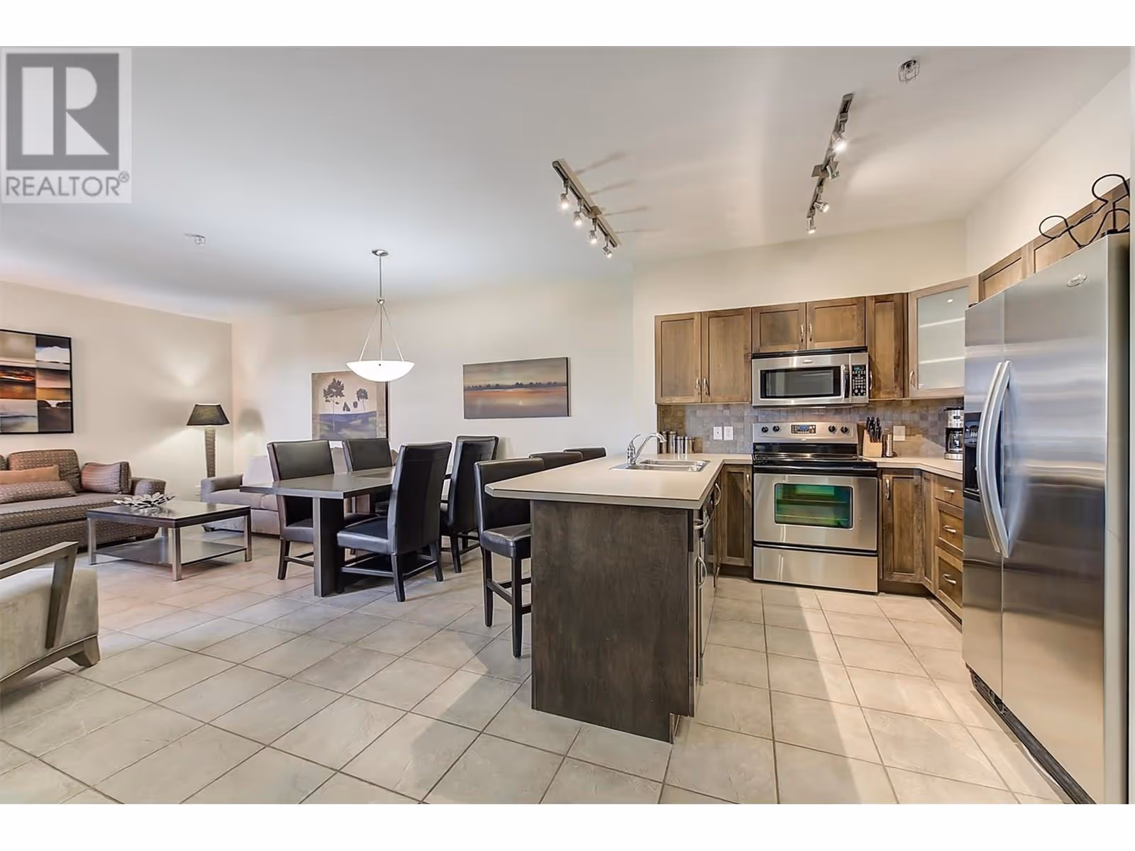 Welcome to your slice of the Okanagan lifestyle! This top floor 1 bedroom + den, 1 bathroom unit at Playa Del Sol is perfectly located in the heart of the Lower Mission. Only minutes from the beach, boat launch, local eateries, and all the essentials you need for a relaxed, Okanagan lifestyle right at your doorstep. This unit has been well cared for and is available fully furnished, making it truly turn-key and ready for you to move in, whether you intend to make it your home or use it as a vacation retreat. The open-concept design includes a functional U-shaped kitchen equipped with Whirlpool stainless steel appliances, seamlessly connecting to the dining and living areas. Step outside to the patio with a gas BBQ hookup—an ideal spot to unwind or grill after a day spent at the lake. The sunlit bedroom offers direct access to the patio and features a walk-through closet that leads to a 4-piece ensuite with a tub and shower combo. Playa Del Sol has all the resort-style amenities you could want: outdoor pool, hot tub, sauna, fitness centre, and multiple common areas to relax and unwind. Whether you're looking for a weekend escape, or a full-time home, this condo checks all the boxes. 1 dog or 1 cat allowed - max 15"" at the shoulder. 30 day minimum rentals allowed. (id:58842)