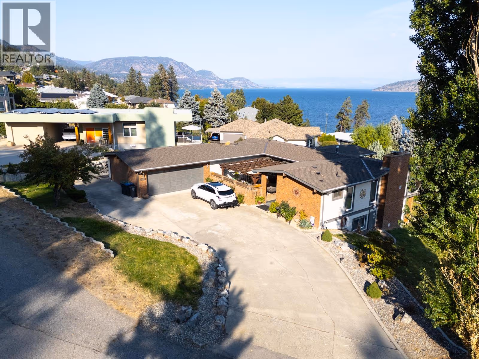 Welcome to 6555 Sherburn Road in beautiful Peachland! This stunning home offers just under 3,300 sq. ft. of open-concept living, designed with both elegance and functionality in mind. The main level is a true showstopper, featuring vaulted ceilings, two kitchen islands, sleek stainless steel appliances, and a 6 burner gas Italian stove—a chef’s dream. Expansive windows throughout flood the home with natural light, creating a bright and welcoming atmosphere. The spacious primary suite and second bedroom provide comfort and privacy, complemented by the convenience of separate laundry. Downstairs, a bright and spacious two-bedroom suite awaits with large windows that fill the space with even more light. This level also boasts its own patio with amazing views—perfect for morning coffee or relaxing evenings. Complete with separate laundry, it’s an ideal setup for extended family, guests, or income potential. Enjoy the outdoors year-round with two balconies plus a cozy back patio that is complete with a gas hookupsfor barbecues and evenings by the fire. Parking and storage are a breeze with a 670 sq. ft. garage, ideal for vehicles, hobbies, or a workshop. The generous driveway provides room for six or more cars, with RV parking off to the side—perfect for visitors or those who love to travel. Tucked away in a quiet, sought-after neighborhood, this entertainer’s home is ideal for families, multi-generational living, or anyone looking for a serene Peachland lifestyle. (id:58842)
