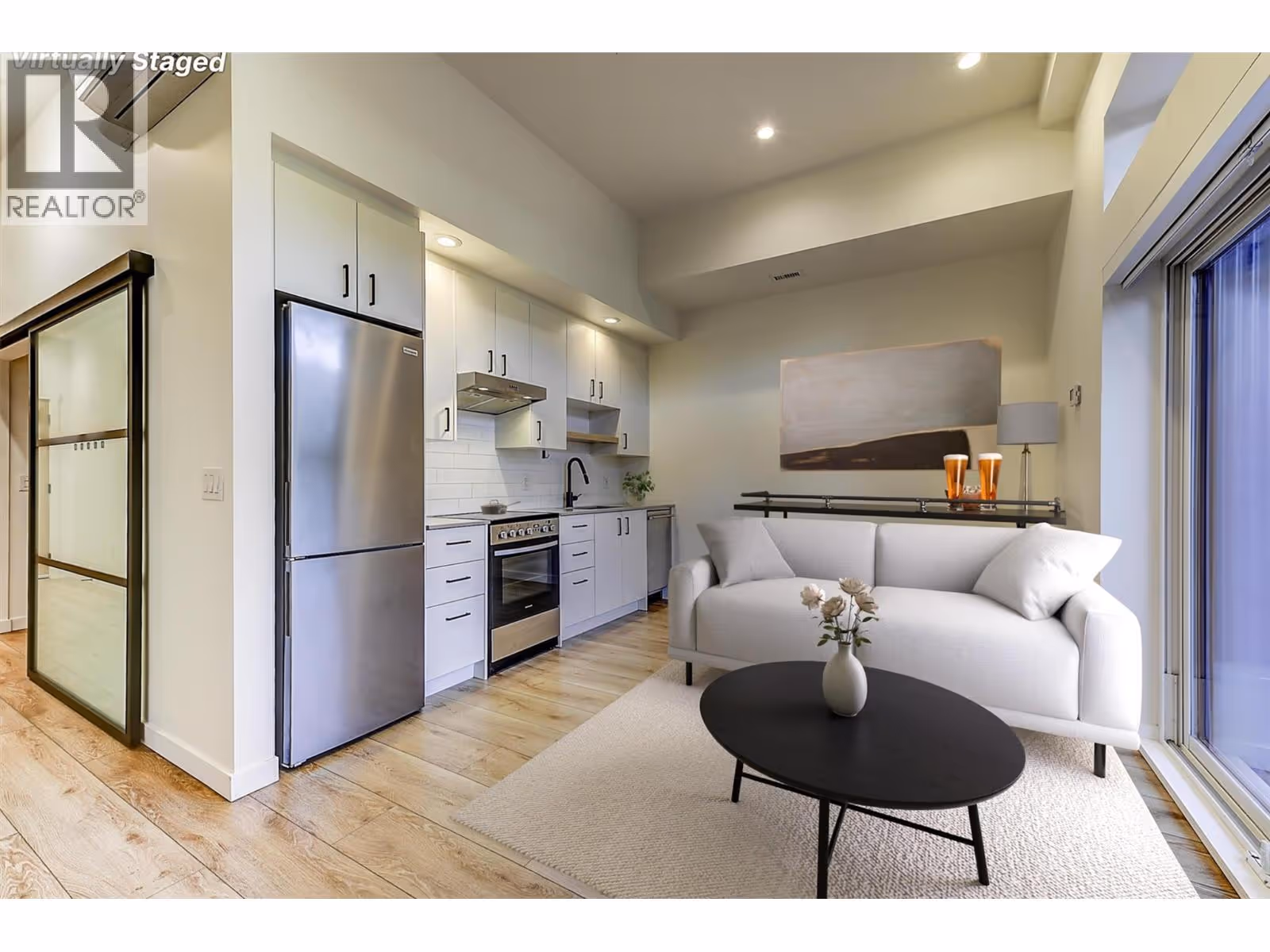 Welcome Home to the North End of Kelowna. This stylish/modern one-bedroom, one-bathroom condo perfectly situated in one the most highly sought-after neighborhoods, where everything you could desire is all within walking distance. Offering both comfort and convenience, this residence is ideal for first-time buyers, investors, or those looking to enjoy the vibrant downtown lifestyle. Step inside to a bright, open living space that flows seamlessly onto your spacious, private walkout patio, perfect for morning coffee or evening relaxation and ideal if you have a dog to walk and want the convenience of walking straight out your back door. With stainless steel appliance and stone countertops, the thoughtfully designed floor plan maximizes every inch, creating a cozy yet functional vibe. This community offers more than just a place to live—residents enjoy access to a co-work office space, lounge area, the 'Modo' car share program, bike storage, and the convenience of one secure underground parking stall. All this, in a prime location within walking distance to restaurants, local brewery's, shopping, waterfront parks, beaches, gyms and everything downtown Kelowna has to offer. Don’t miss your chance to live in one of Kelowna’s most desirable neighborhoods! View the Vitual Tour and book your showing to explore this opportunity! (id:58842)