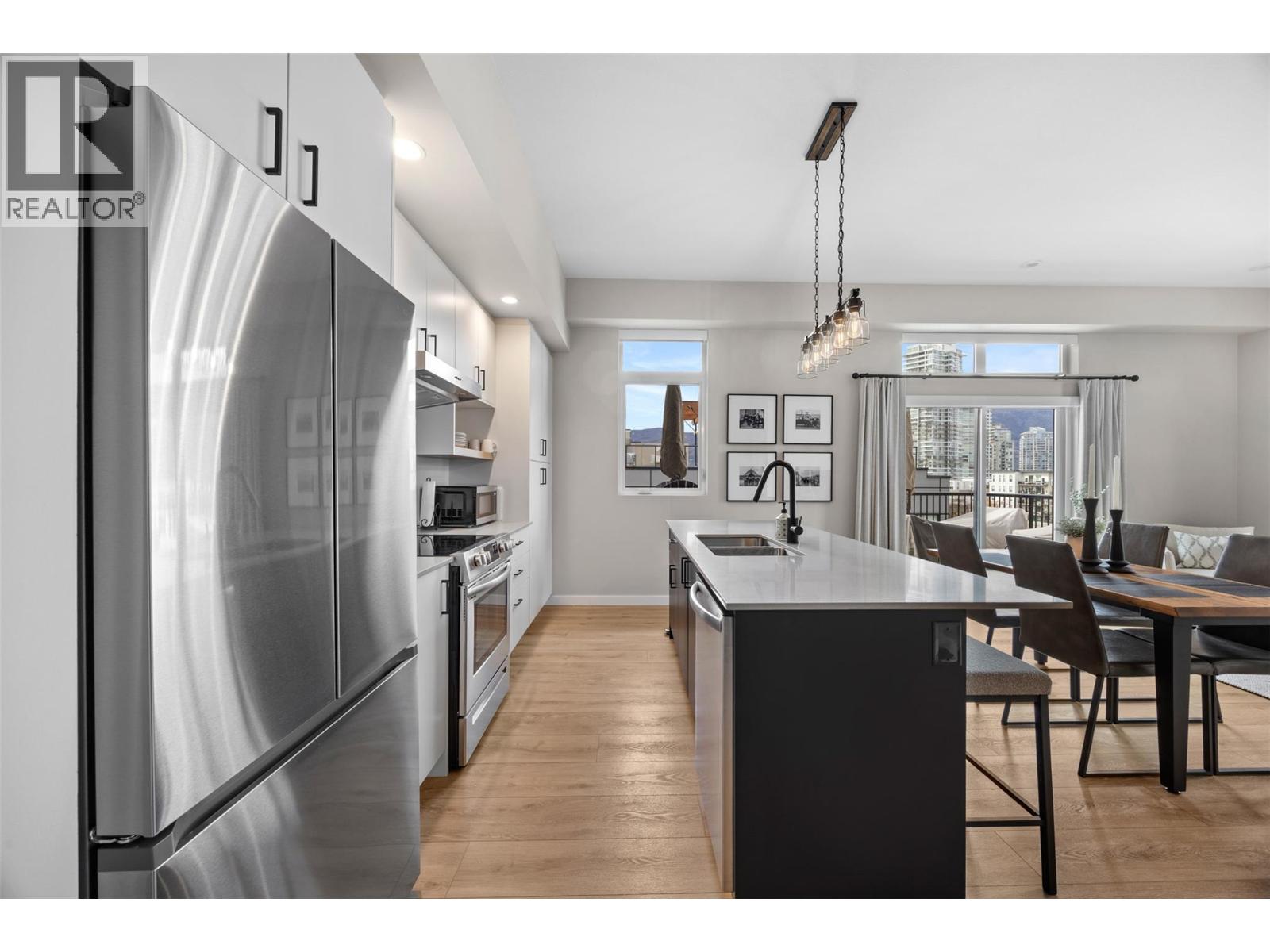 Quite possibly the premier residence at Cawston. Located on the top floor corner, this spacious 2-bedroom, 2-bathroom home offers close to 1,200 sq. ft. of living space with stunning views overlooking the city and Knox Mountain. The oversized corner patio is perfect for Okanagan-style entertaining. With only one neighbouring unit, this home truly feels standalone—exceptionally quiet and private. Owned by the original owners and lightly lived in, it shows like new. Thoughtfully designed with upscale finishes throughout—including wainscoting, wallpaper, and custom details—the interior is sure to impress. A formal entryway complete with a wine fridge sets this condo apart from the rest. Both bedrooms are generously sized to accommodate king beds, and the laundry room offers additional storage space. The home also includes a separate storage locker, and the parking stall is conveniently located near the parkade entrance. This is a must-see for buyers who value space, privacy, and a beautifully maintained home. Cawston presents a great lifestyle with easy access to all amenities. Explore all the local cafes, restaurants, wineries, breweries and shopping that the downtown core has to offer. 1 parking stall and a storage locker. Please note the floor & wall assembly schematic for home sound proofing, not common in wood frame buildings! (id:58842)