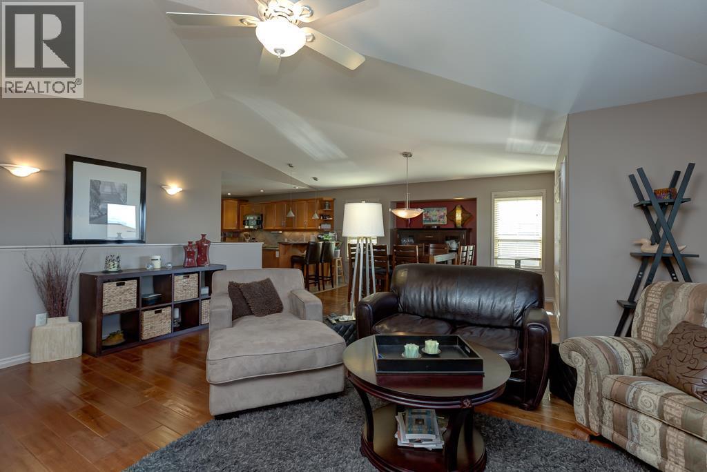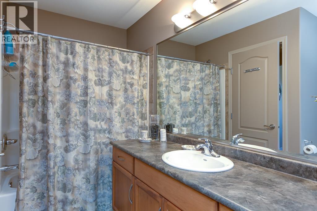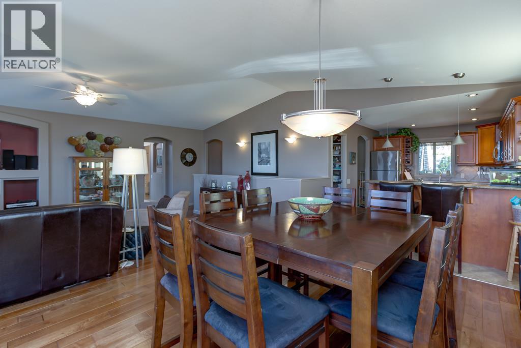 This beautifully maintained townhome in the sought-after Dilworth Mountain area offers a spacious upper level featuring an open-concept living, dining, and kitchen area with a vaulted ceiling. Step out onto the sundeck from the dining area to enjoy stunning mountain views and a glimpse of the lake. The upper level also includes a primary bedroom with a walk-in closet and a 3-piece ensuite, a second bedroom, a full bath, and a laundry area. The kitchen offers a walk-in pantry and provides access to a stunning private backyard and patio. The ground level has a large double garage, family room, guest bedroom, full bath, and plenty of storage space and workshop. Retractable solar blind on the front deck. The sellers have priced the home competitively for the market with quick possession available. Pet restriction:2 dogs or 1 dog 1 cat, no vicious breed (id:58842)
