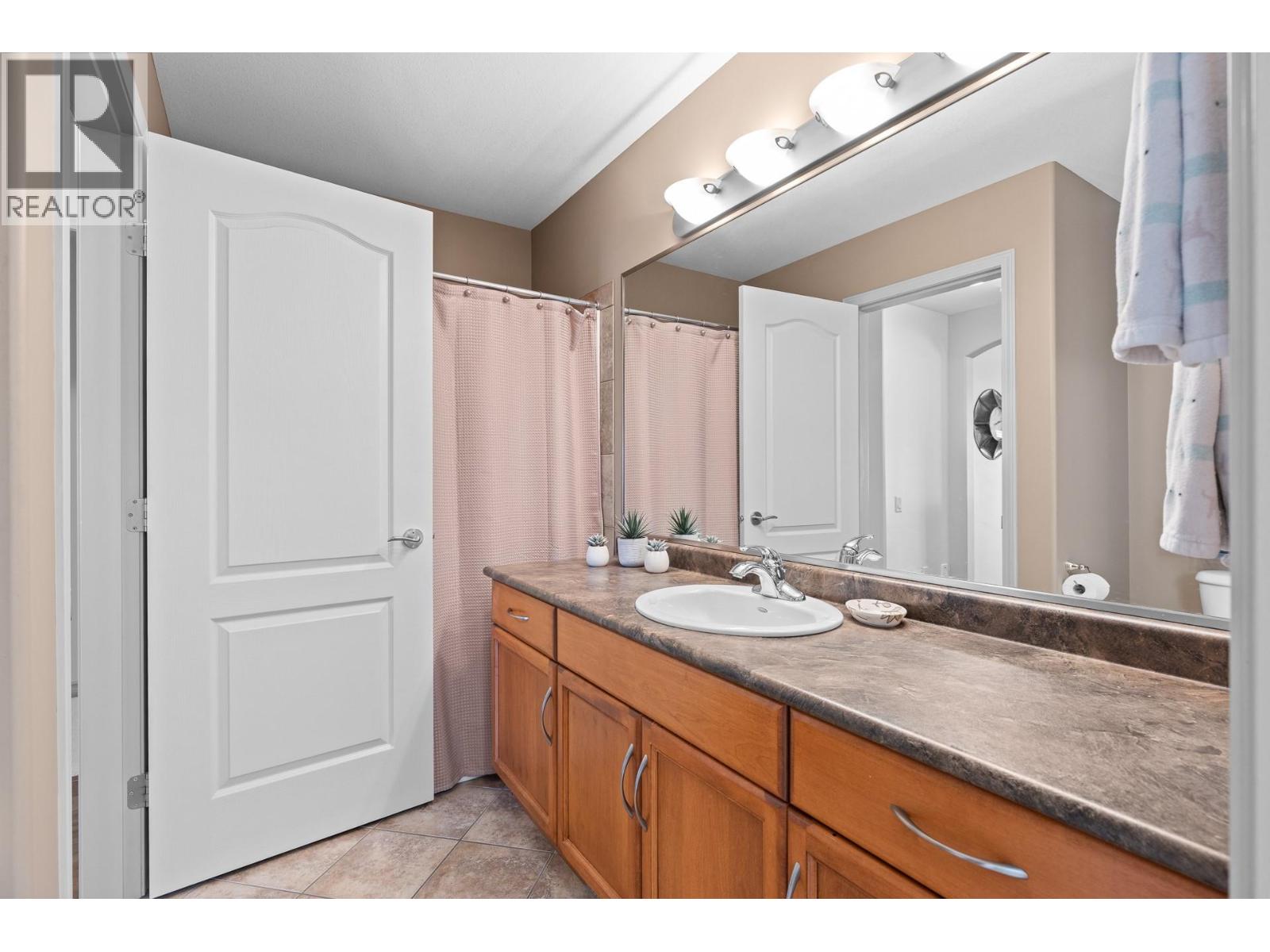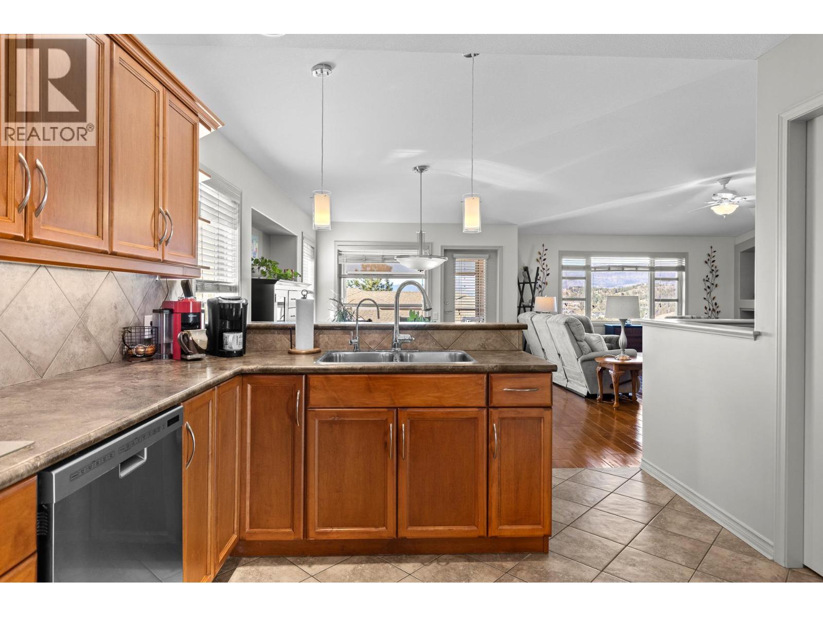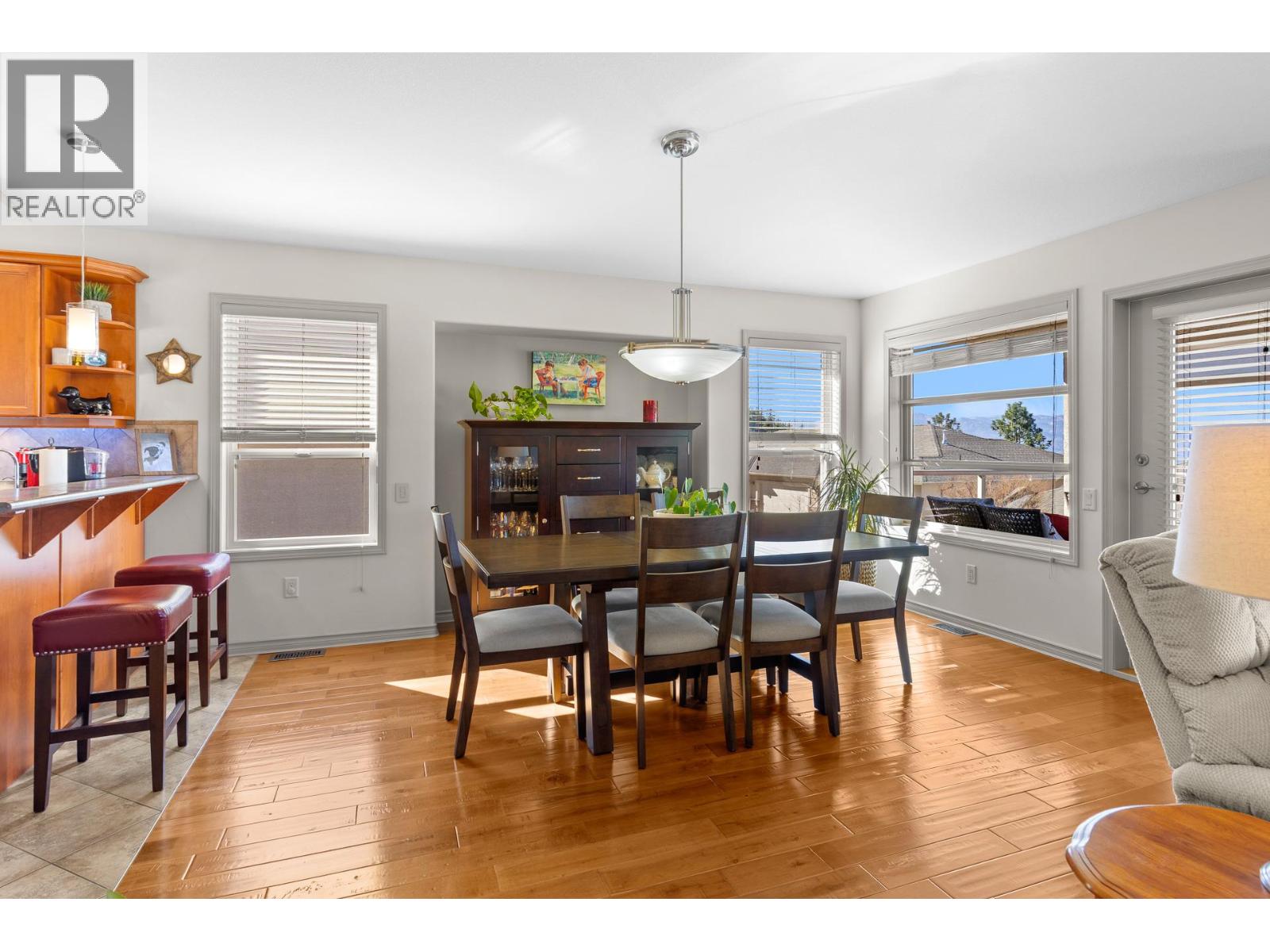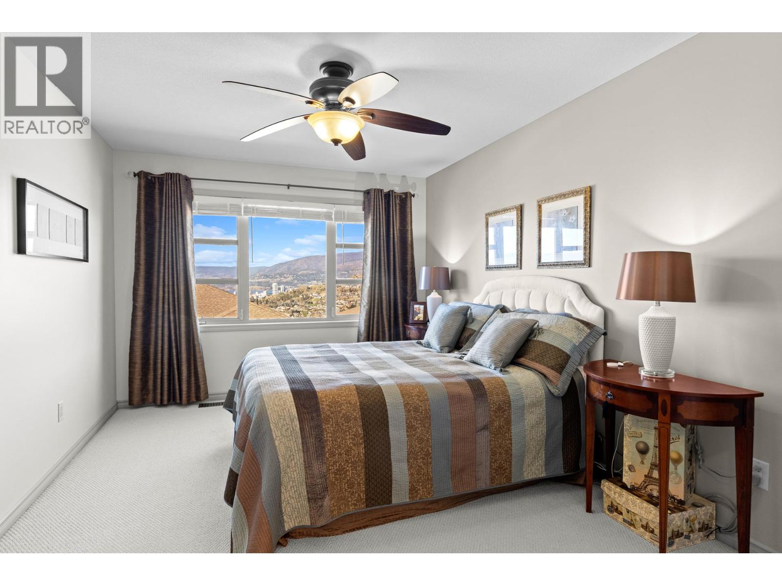 This beautifully maintained townhome in the sought-after Dilworth Mountain area offers a spacious upper level featuring an open-concept living, dining, and kitchen area with a vaulted ceiling. Step out onto the sundeck from the dining area to enjoy stunning mountain views and a glimpse of the lake. The upper level also includes a primary bedroom with a walk-in closet and a 3-piece ensuite, a second bedroom, a full bath, and a laundry area. The kitchen offers a walk-in pantry and provides access to a stunning private backyard and patio. The ground level has a large double garage, family room, guest bedroom, full bath, and plenty of storage space and workshop. Retractable solar blind on the front deck. The sellers have priced the home competitively for the market with quick possession available. Pet restriction:2 dogs or 1 dog 1 cat, no vicious breed (id:58842)