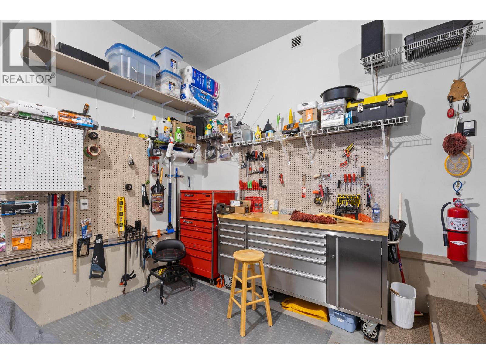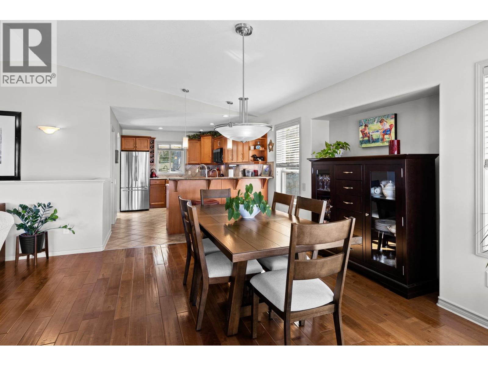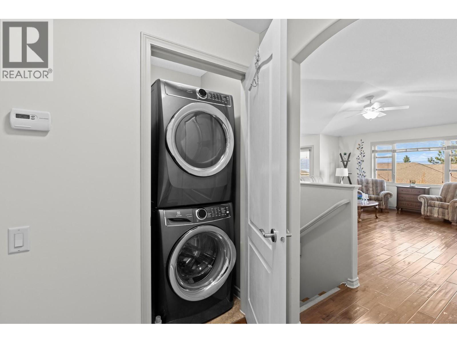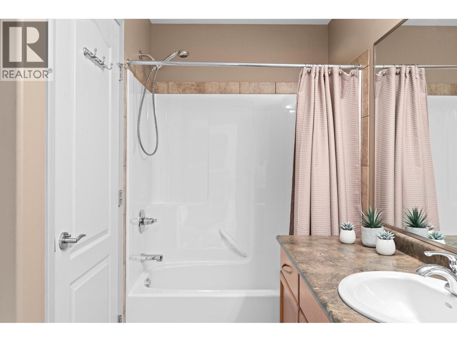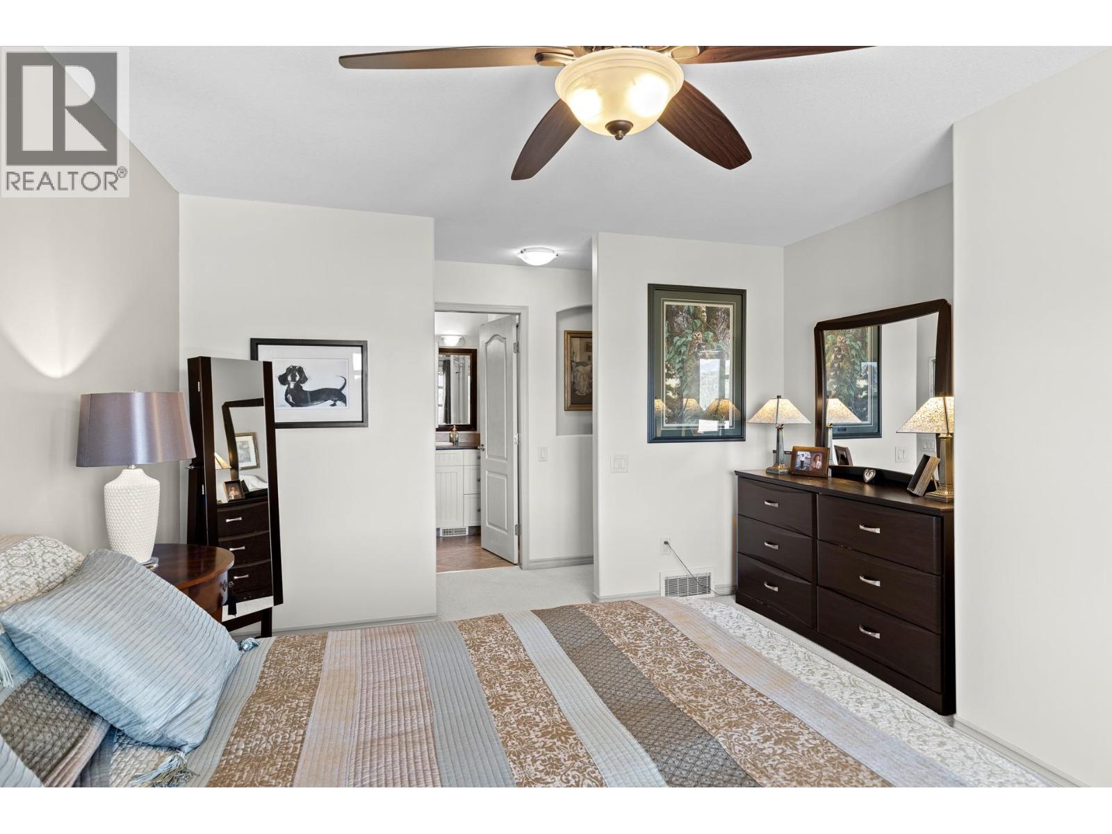This beautifully maintained townhome in the sought-after Dilworth Mountain area offers a spacious upper level featuring an open-concept living, dining, and kitchen area with a vaulted ceiling. Step out onto the sundeck from the dining area to enjoy stunning mountain views and a glimpse of the lake. The upper level also includes a primary bedroom with a walk-in closet and a 3-piece ensuite, a second bedroom, a full bath, and a laundry area. The kitchen offers a walk-in pantry and provides access to a stunning private backyard and patio. The ground level has a large double garage, family room, guest bedroom, full bath, and plenty of storage space and workshop. Retractable solar blind on the front deck. The sellers have priced the home competitively for the market with quick possession available. Pet restriction:2 dogs or 1 dog 1 cat, no vicious breed (id:58842)
