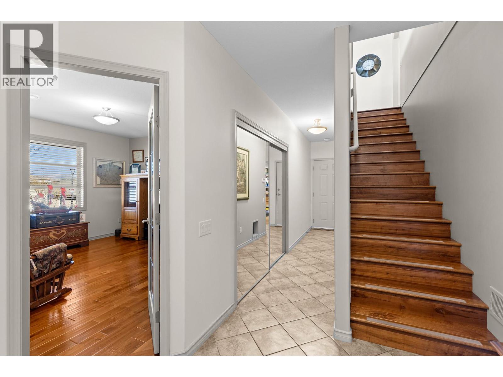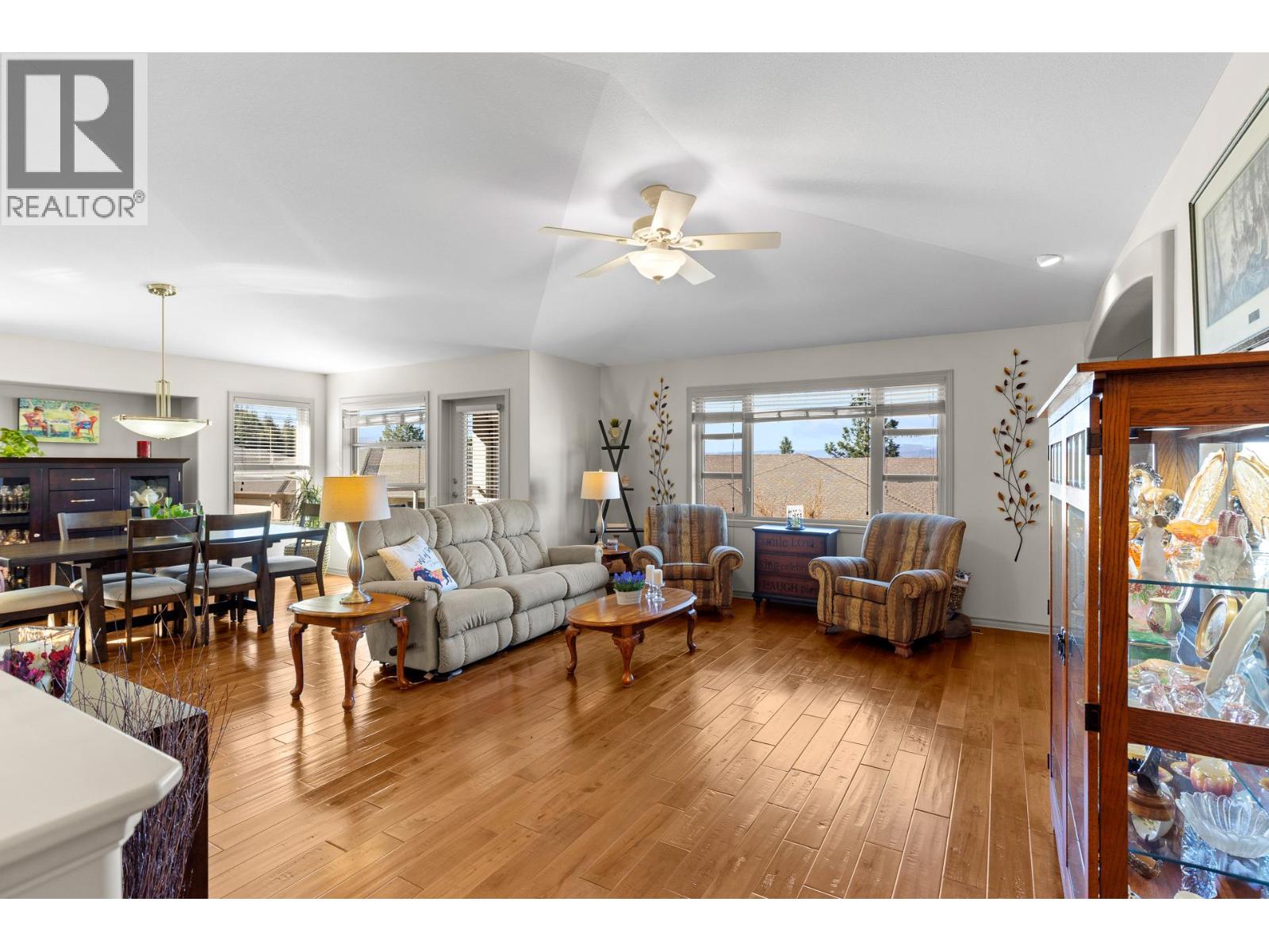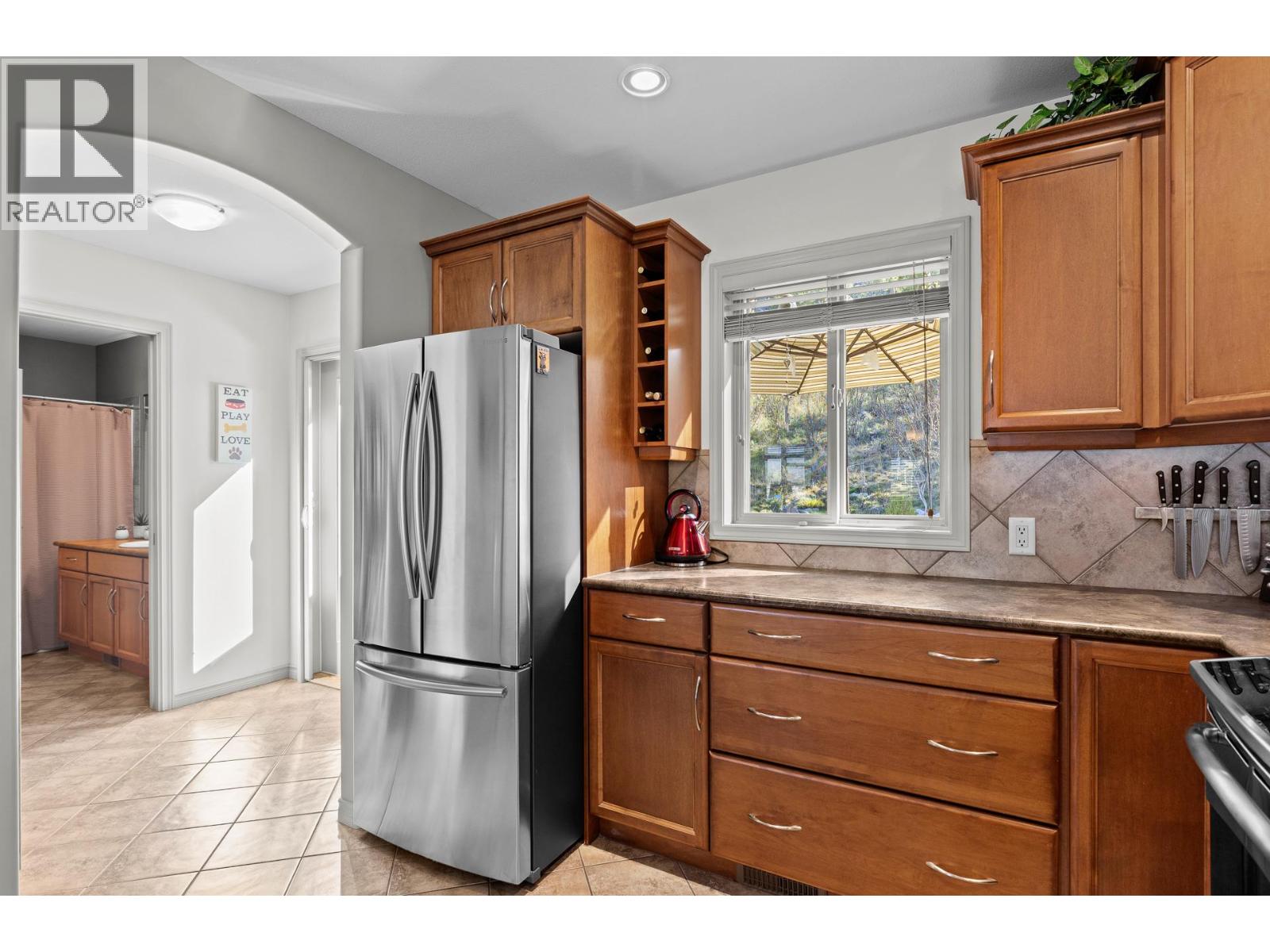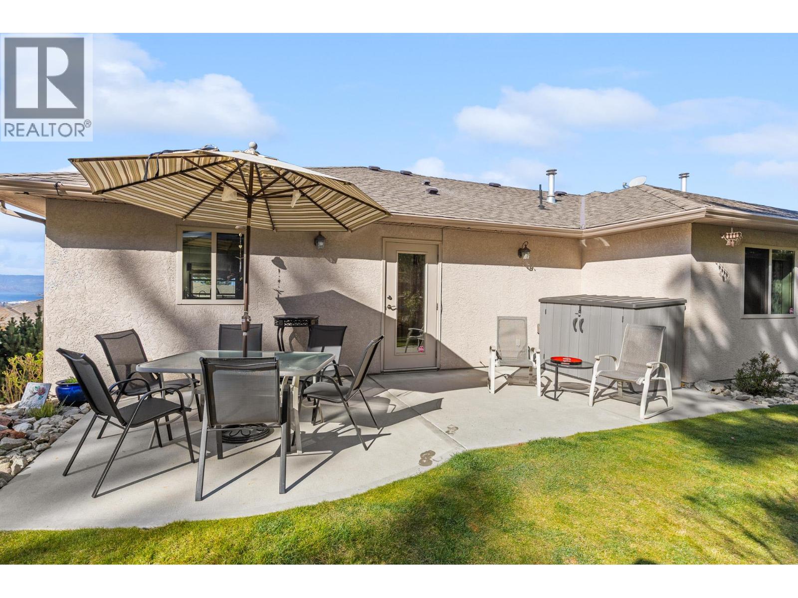 This beautifully maintained townhome in the sought-after Dilworth Mountain area offers a spacious upper level featuring an open-concept living, dining, and kitchen area with a vaulted ceiling. Step out onto the sundeck from the dining area to enjoy stunning mountain views and a glimpse of the lake. The upper level also includes a primary bedroom with a walk-in closet and a 3-piece ensuite, a second bedroom, a full bath, and a laundry area. The kitchen offers a walk-in pantry and provides access to a stunning private backyard and patio. The ground level has a large double garage, family room, guest bedroom, full bath, and plenty of storage space and workshop. Retractable solar blind on the front deck. The sellers have priced the home competitively for the market with quick possession available. Pet restriction:2 dogs or 1 dog 1 cat, no vicious breed (id:58842)