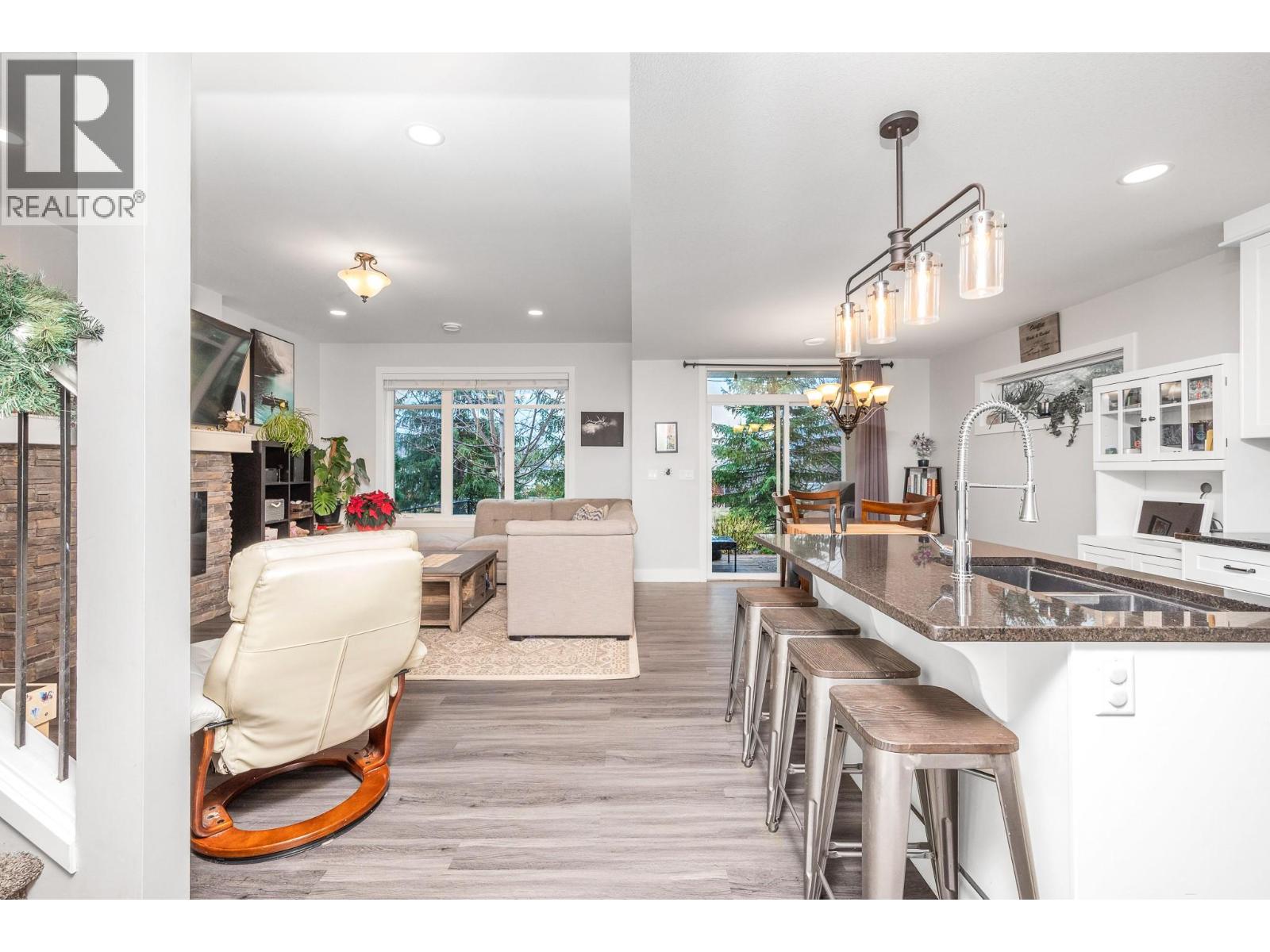 Welcome to Beachwalk Villas. This half-duplex style home is ideally located in the sought after Okanagan Landing area, close to Kin Beach, Paddlewheel Park, schools, walking and biking routes. The main floor offers a spacious entry hall and modern layout with an open concept kitchen featuring stainless steel appliances and quartz countertops, flowing into the dining and living areas. Patio doors open to a covered deck with a natural gas BBQ hookup. This leads to a private, fully fenced backyard with a new stone patio, perfect for entertaining, kids, or pets. A convenient mudroom off the double garage and a main floor half bathroom complete this level. The garage is pre-wired for an EV supercharger, ready for installation. Upstairs, you’ll find the primary bedroom plus two generous secondary bedrooms, a full bathroom, and the laundry room. The spacious primary includes a walk-in closet and a beautifully finished ensuite with double sinks, quartz countertops, and a large tiled shower. Additionally this home features an easily accessible and useable 4 foot tall crawlspace running the full length of the home, providing excellent storage options. The community offers a playground and shared green space, making it ideal for families or pet owners. If you’re looking for a comfortable, move-in-ready home in a fantastic location, this one is a must-see. (id:58842)