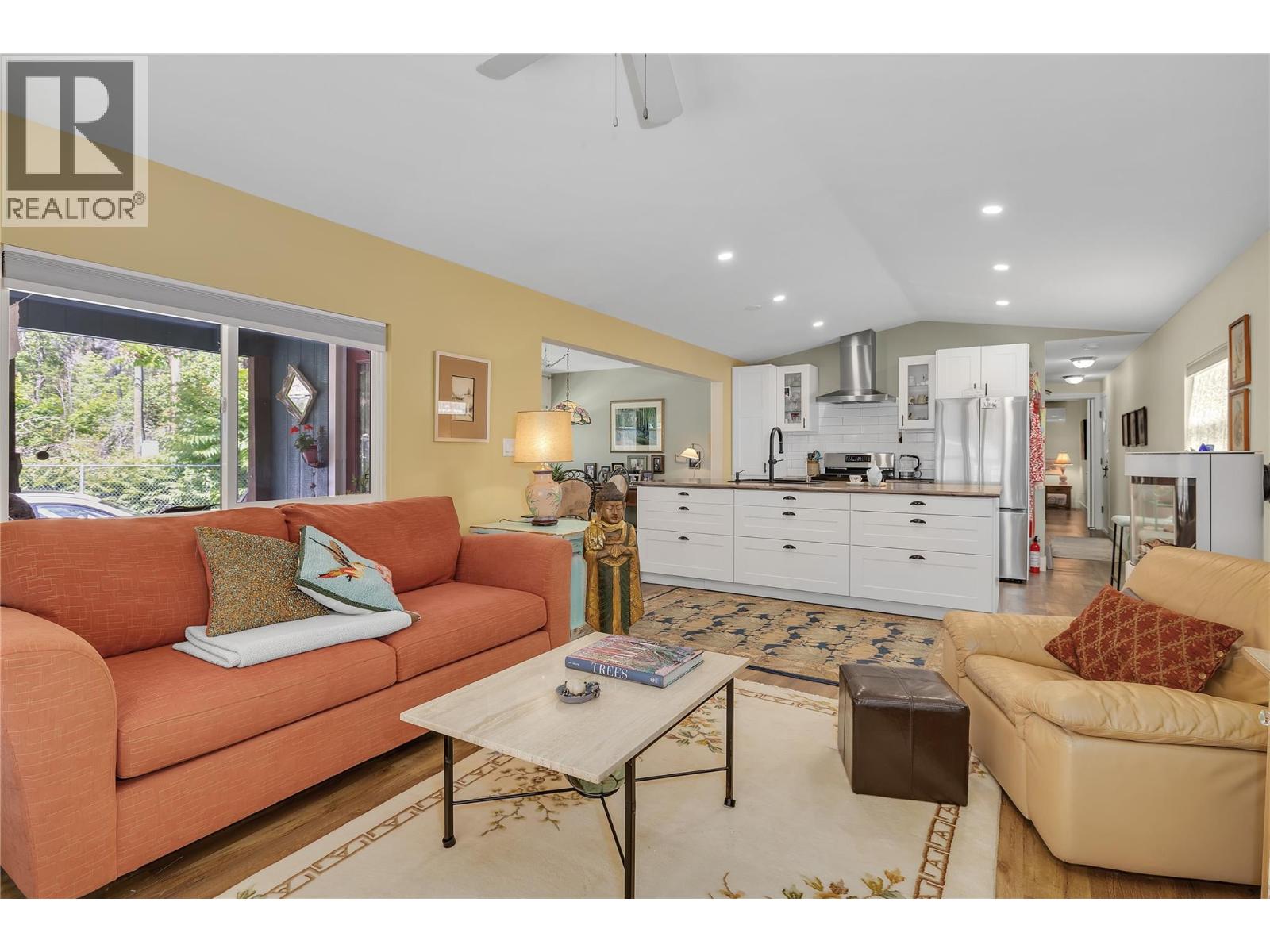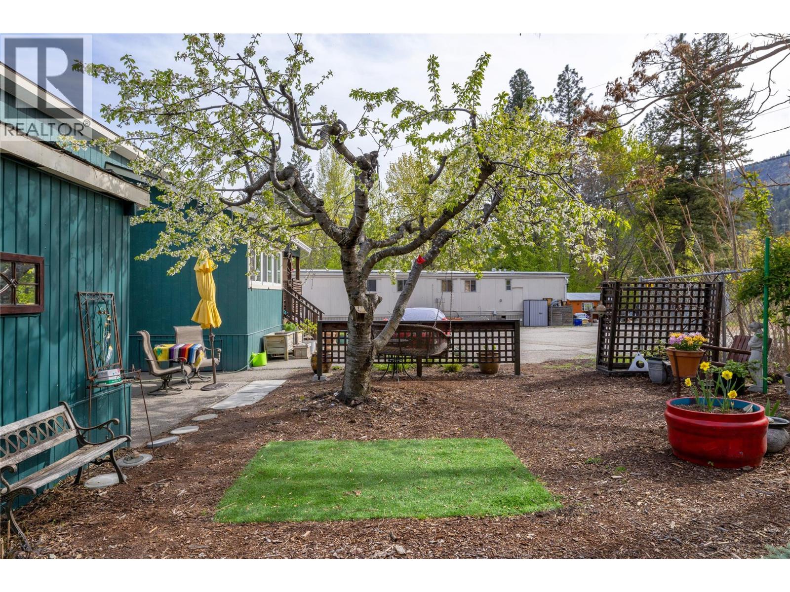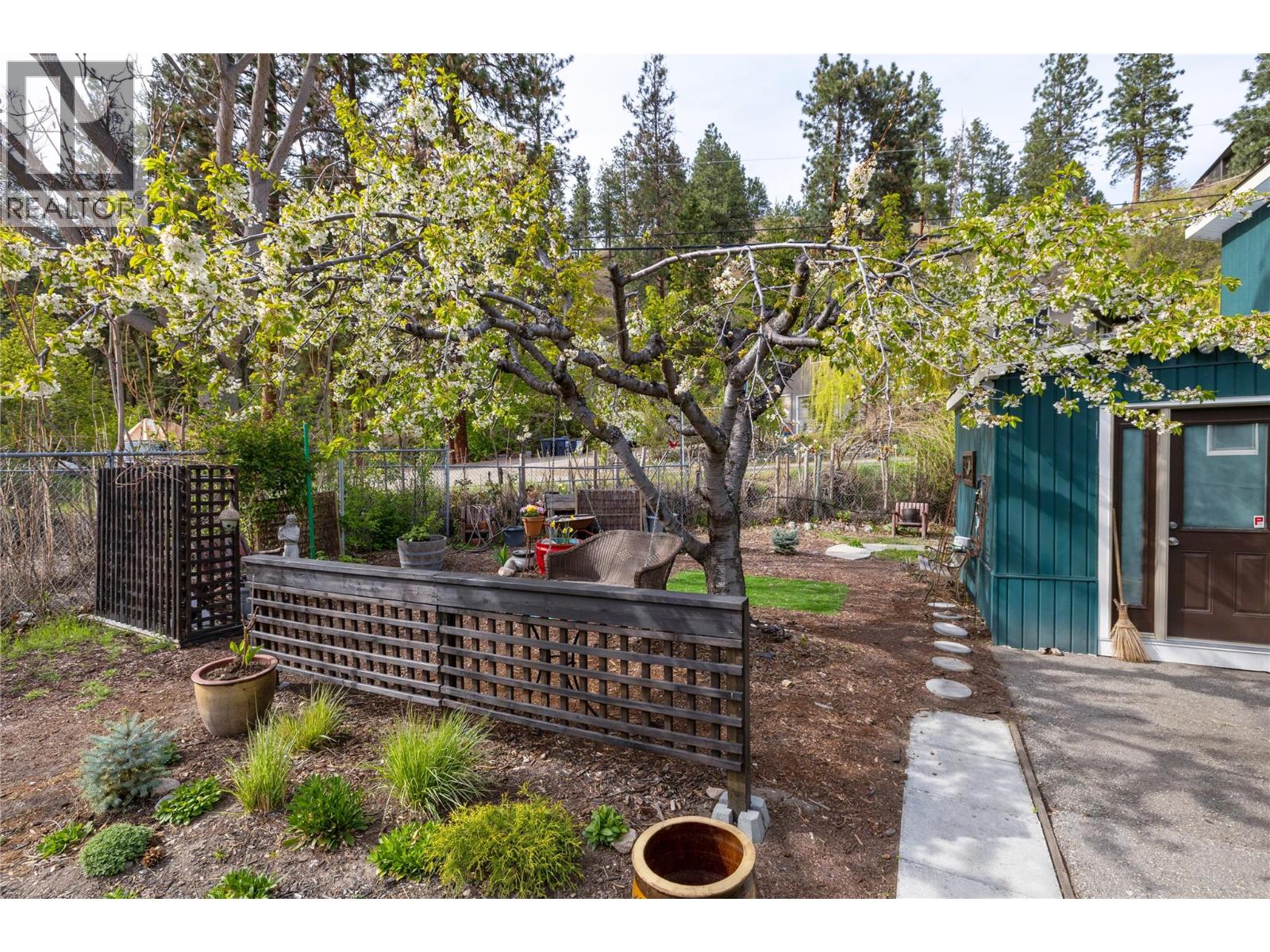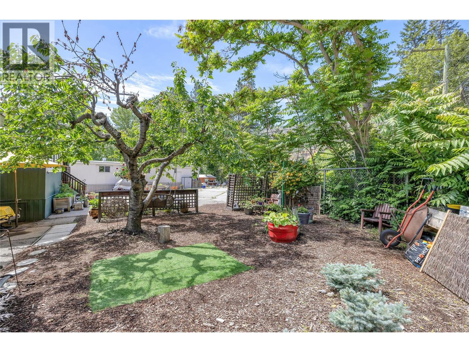 View this beautifully updated and meticulously maintained manufactured home, rebuilt in 2020 and truly “Best in Show."" A quality property that offers a rare blend of style, function, and lifestyle. This home is perfectly placed in the sought-after Edgewater Pines community of Peachland, walking distance to the lake. Offering just under 1,000 sq. ft. of bright, modern living space, this 2 bedroom, 1 bath residence showcases many smart upgrades designed for comfort and efficiency, including a Mitsubishi heat pump, Enviro S50 gas fireplace, 2023 Rheem hot water tank, water purification system, and full stainless steel appliance package. This bright kitchen features an LG Energy Star dishwasher, Samsung gas range with convection oven, and a Samsung bottom-freezer refrigerator. Fresh Benjamin Moore paint and quality laminate flooring flow seamlessly throughout, creating a warm, contemporary feel. Step outside and discover a true gardener’s dream. The private south and west-facing yard is well placed and designed with covered deck and coordinated sunshades that invite you to relax outdoors and entertain in comfort. Multiple sitting areas are tucked throughout the garden, including a peaceful retreat beneath your own heritage cherry tree. Adding to the appeal is an attached hobbyist's shop with electrical service and underground power. The additional outbuildings include a generous garden shed, perfect for storage, projects, or creative pursuits. Located just a short stroll to Antlers Beach and Hardy Falls, this home offers an unbeatable Okanagan lifestyle surrounded by nature and tranquility. Whether you’re downsizing, retiring, or searching for the perfect lakeside retreat, this property truly lives up to its name, ""Best in Show."" Book your private showing today. (id:58842)