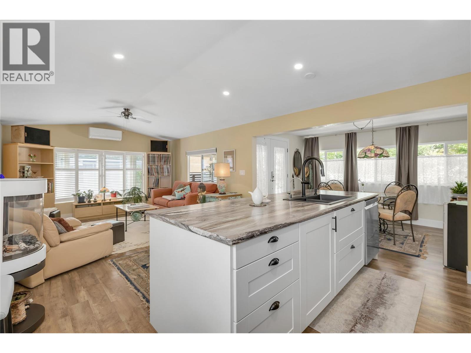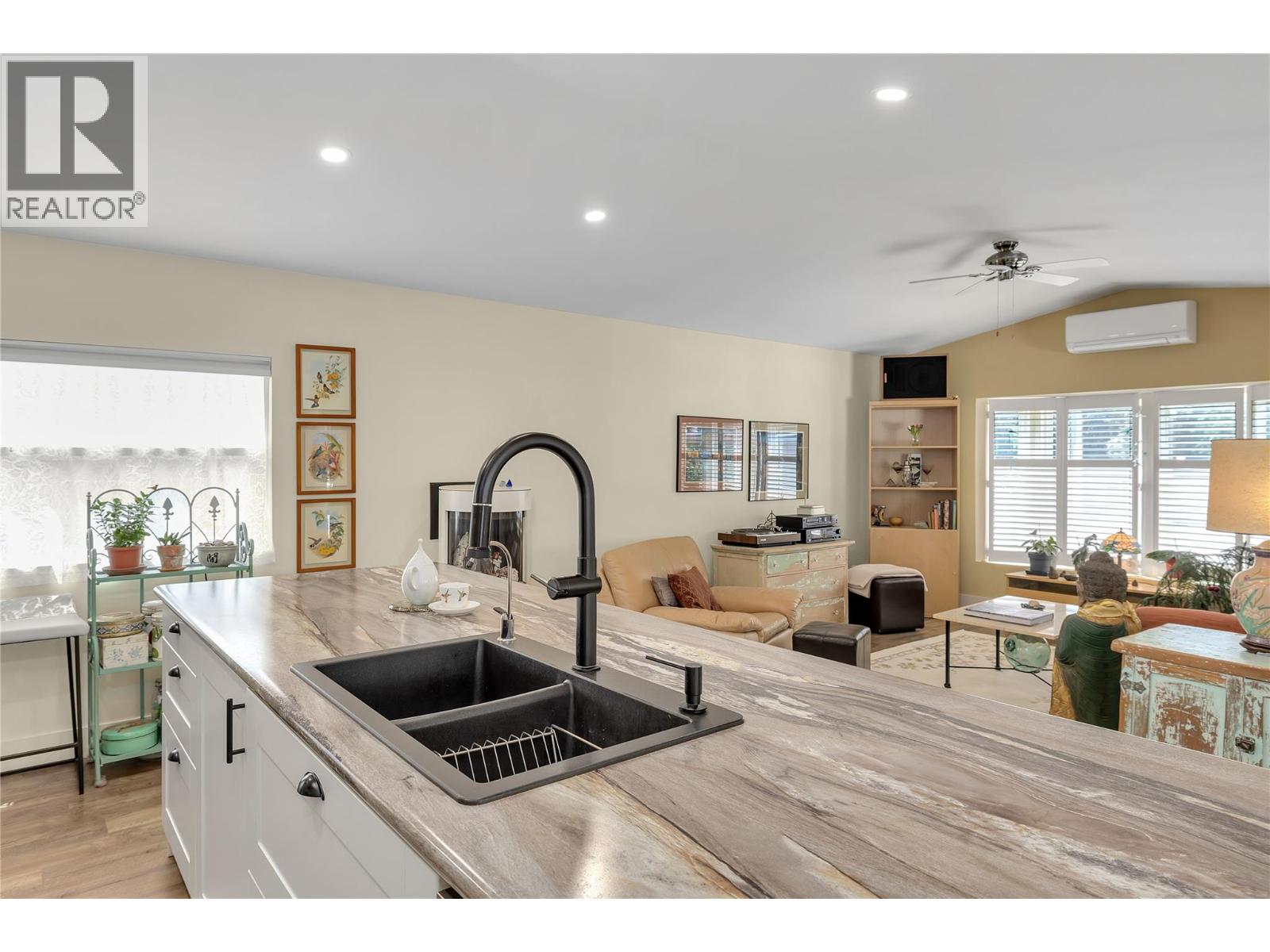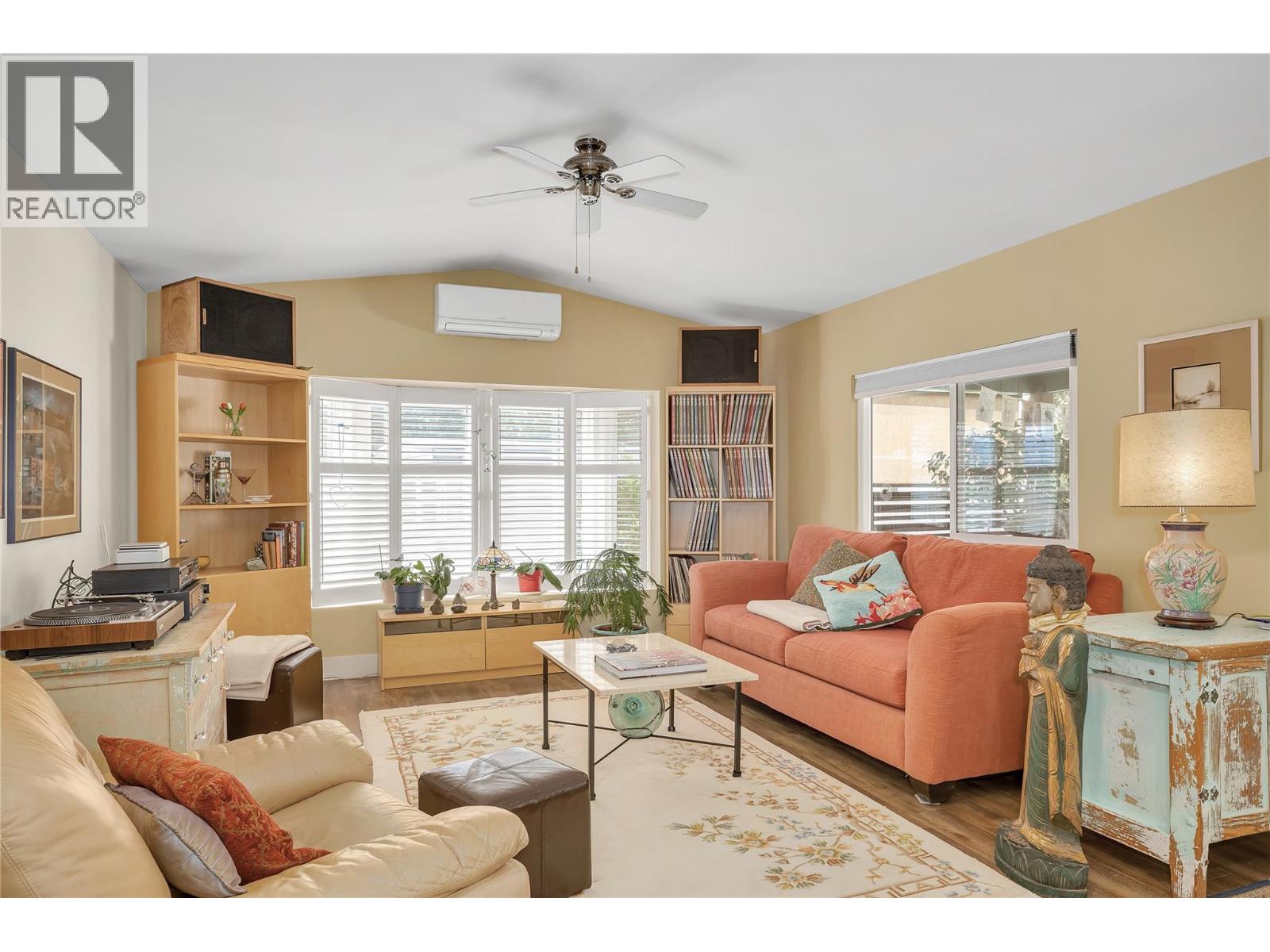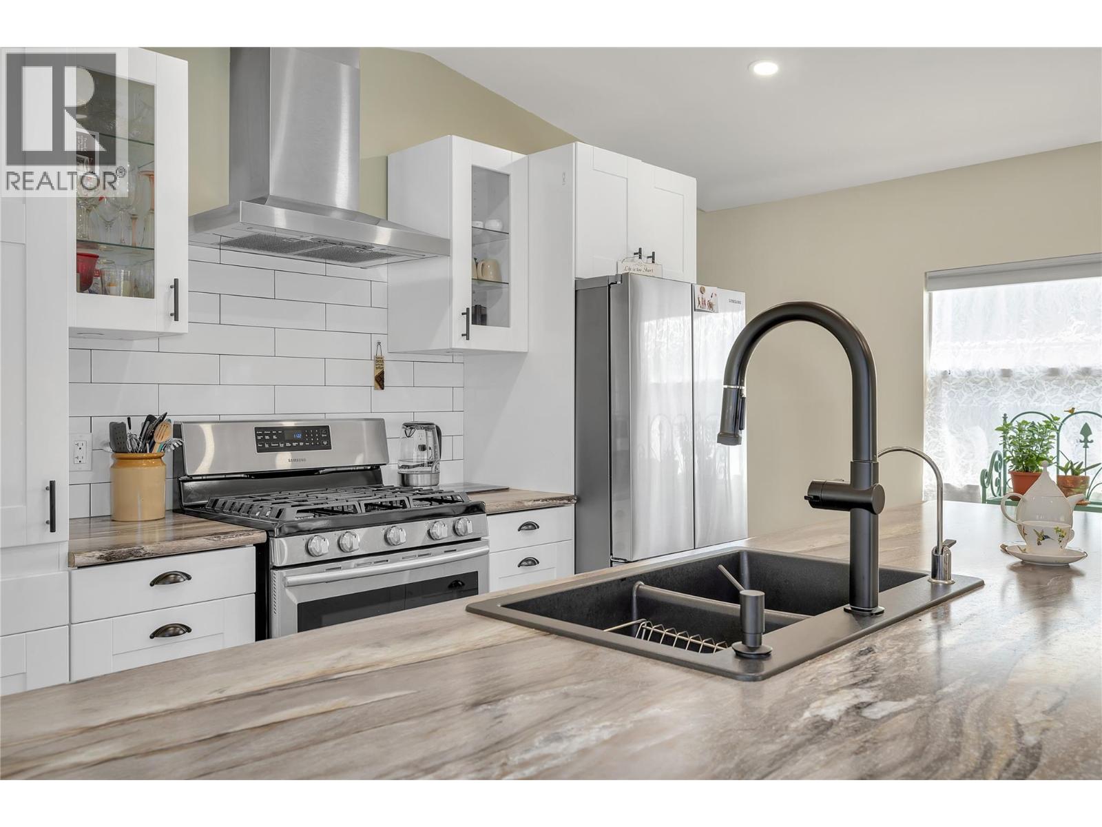 View this beautifully updated and meticulously maintained manufactured home, rebuilt in 2020 and truly “Best in Show."" A quality property that offers a rare blend of style, function, and lifestyle. This home is perfectly placed in the sought-after Edgewater Pines community of Peachland, walking distance to the lake. Offering just under 1,000 sq. ft. of bright, modern living space, this 2 bedroom, 1 bath residence showcases many smart upgrades designed for comfort and efficiency, including a Mitsubishi heat pump, Enviro S50 gas fireplace, 2023 Rheem hot water tank, water purification system, and full stainless steel appliance package. This bright kitchen features an LG Energy Star dishwasher, Samsung gas range with convection oven, and a Samsung bottom-freezer refrigerator. Fresh Benjamin Moore paint and quality laminate flooring flow seamlessly throughout, creating a warm, contemporary feel. Step outside and discover a true gardener’s dream. The private south and west-facing yard is well placed and designed with covered deck and coordinated sunshades that invite you to relax outdoors and entertain in comfort. Multiple sitting areas are tucked throughout the garden, including a peaceful retreat beneath your own heritage cherry tree. Adding to the appeal is an attached hobbyist's shop with electrical service and underground power. The additional outbuildings include a generous garden shed, perfect for storage, projects, or creative pursuits. Located just a short stroll to Antlers Beach and Hardy Falls, this home offers an unbeatable Okanagan lifestyle surrounded by nature and tranquility. Whether you’re downsizing, retiring, or searching for the perfect lakeside retreat, this property truly lives up to its name, ""Best in Show."" Book your private showing today. (id:58842)
