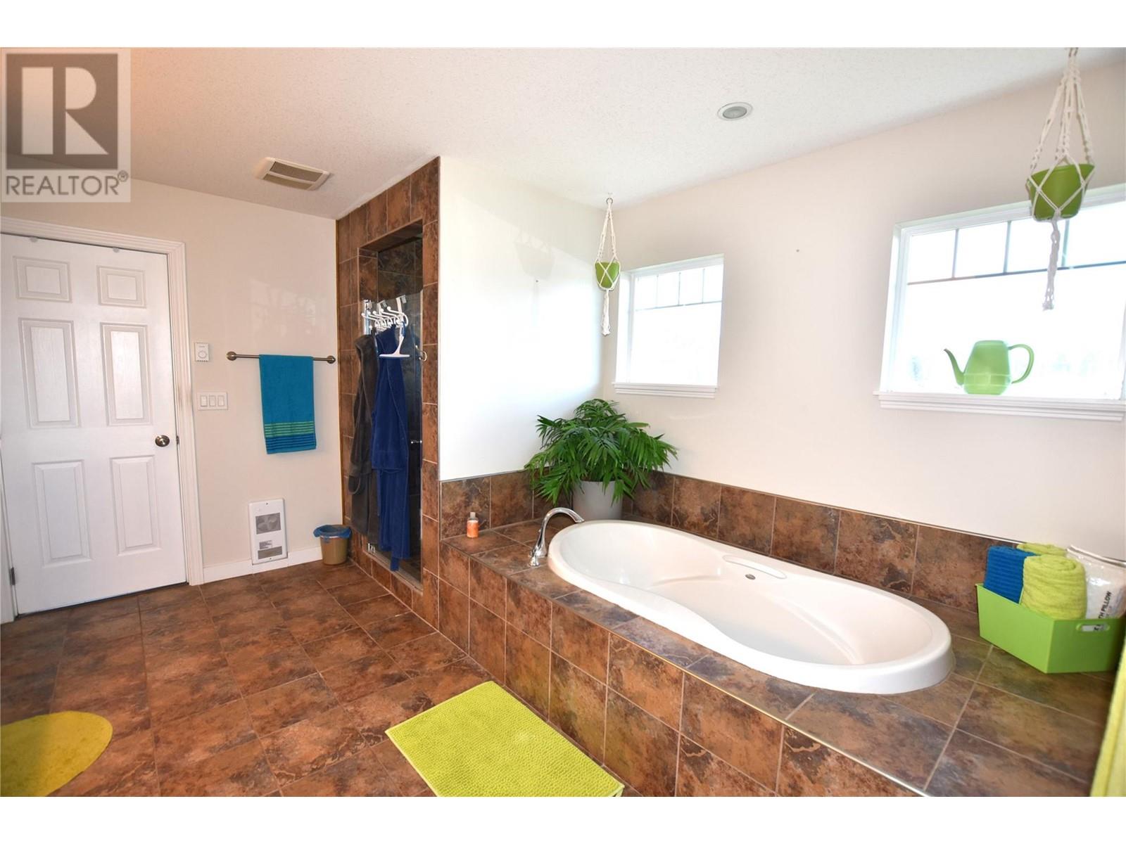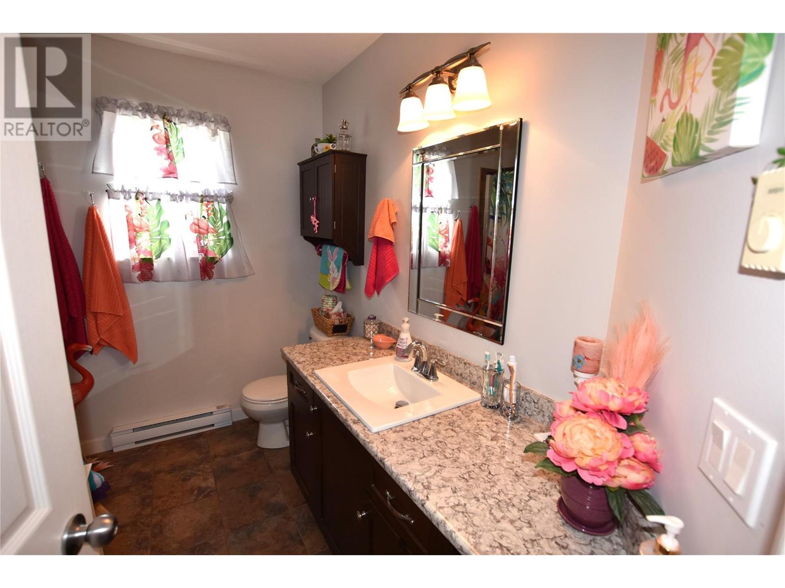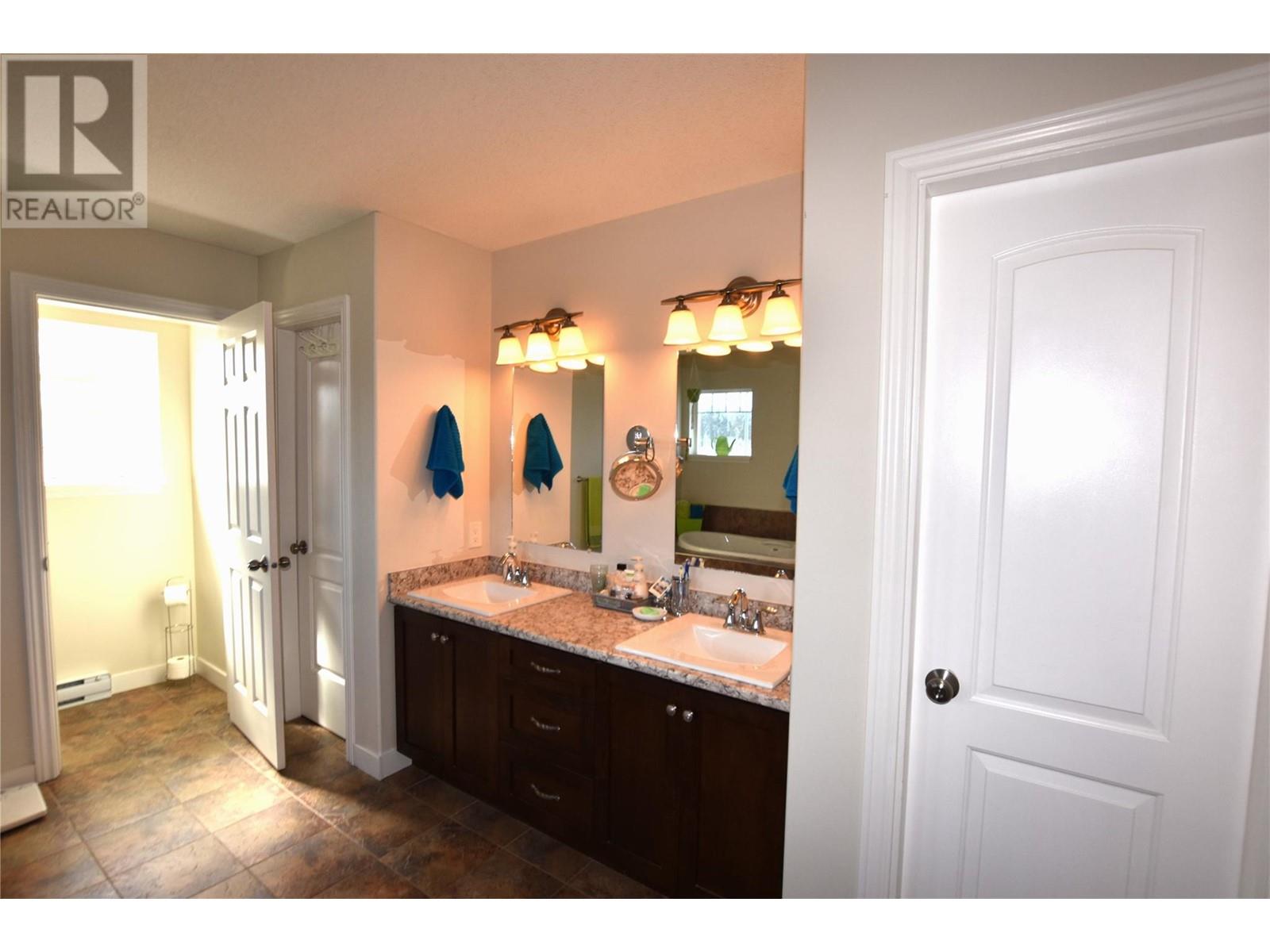 Welcome to 672 Cougar Street in Parker Cove – a beautifully maintained 3-bedroom, 2-bathroom home situated on a quiet corner lot in a serene lakefront community. The main floor features a bright, open-concept living area with gleaming hardwood floors, two spacious bedrooms, a full bathroom, and convenient main-level laundry. Upstairs, you’ll find an expansive primary suite complete with a luxurious 4-piece ensuite that includes dual sinks, a relaxing soaker tub, and a large tiled shower. Sliding glass doors lead from the bedroom to a private upper deck offering stunning lake views. The full, unfinished basement provides ample potential for future development, whether you're envisioning extra living space, a home gym, or a workshop. Additional highlights include an attached single-car garage, a storage shed, and a fully fenced backyard. Recent updates include fresh main-floor paint, new countertops, updated sinks and faucets, and a brand-new washer and dryer. This home is on a registered lease until 2043, with an annual lease fee of $4,069.75. Parker Cove is a welcoming lakeside community on the west side of Vernon, just 25 minutes from town. Residents enjoy access to over 2,000 feet of prime Okanagan Lake shoreline—perfect for relaxing, swimming, and boating. (id:58842)