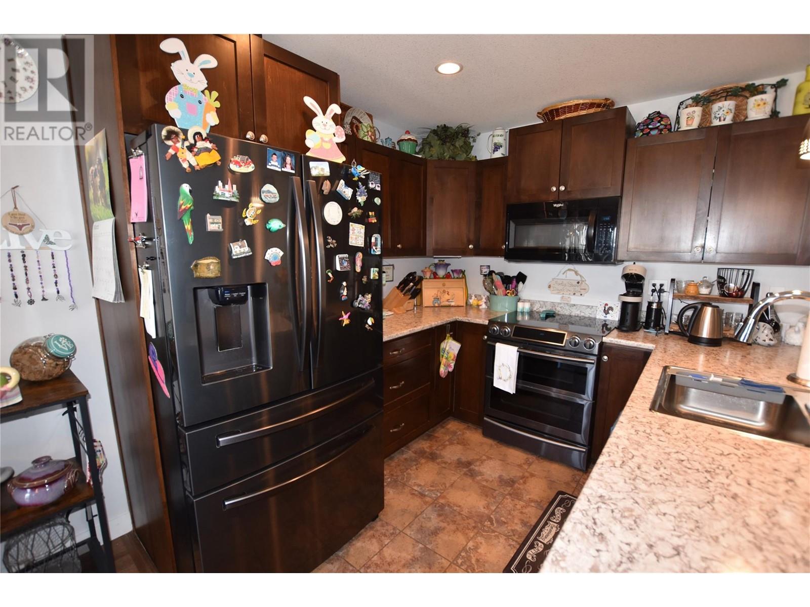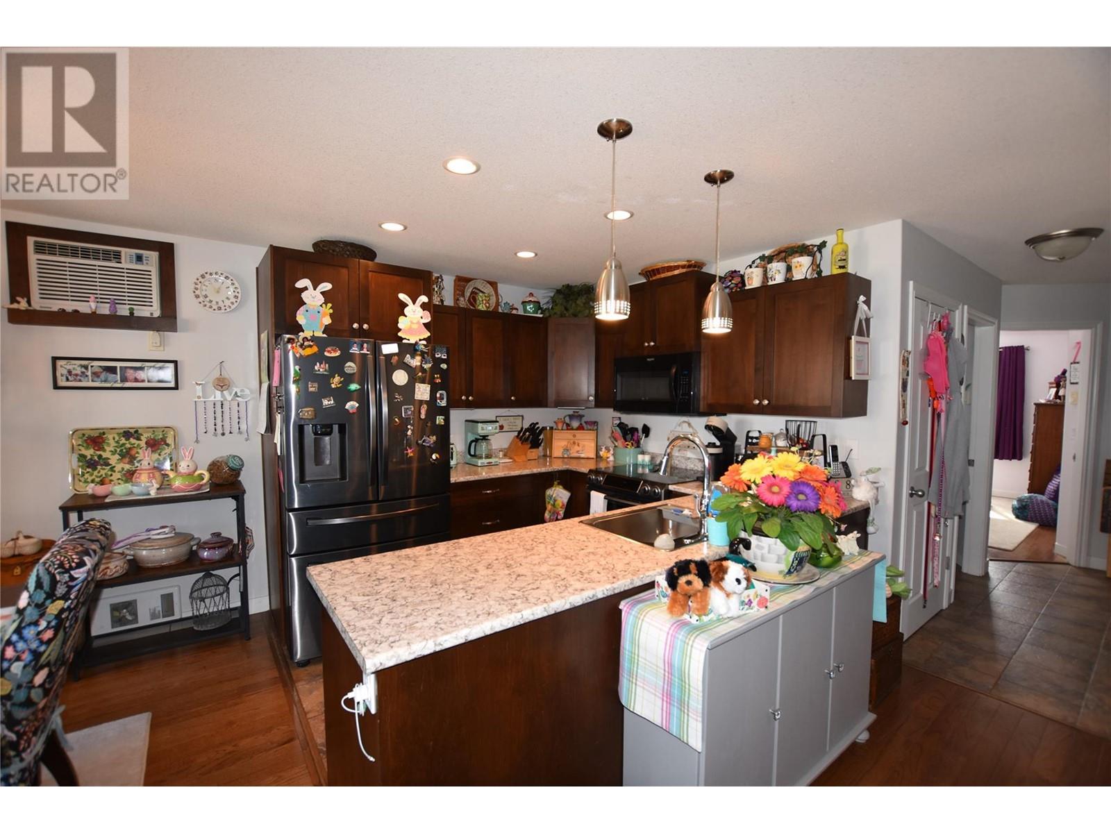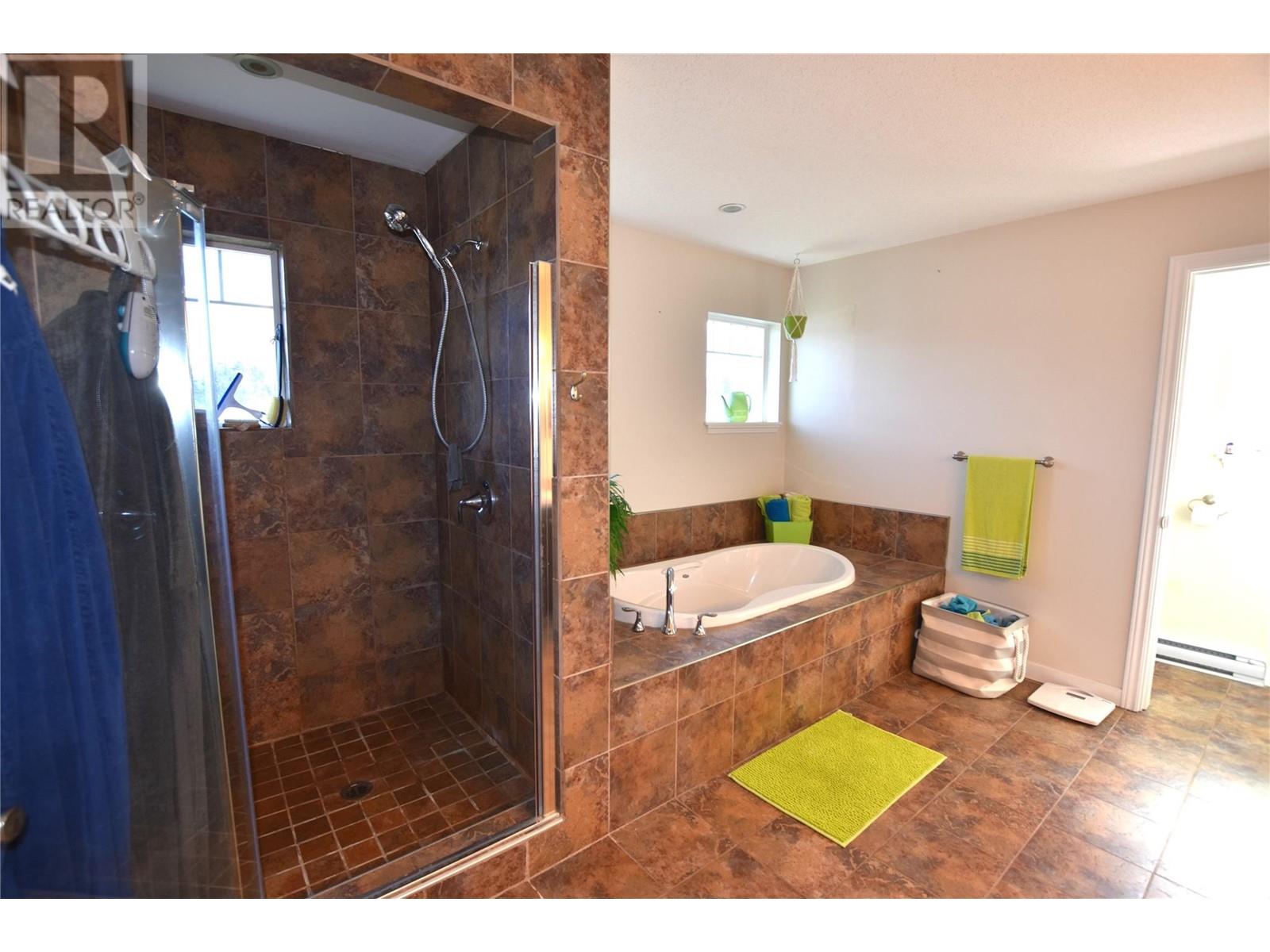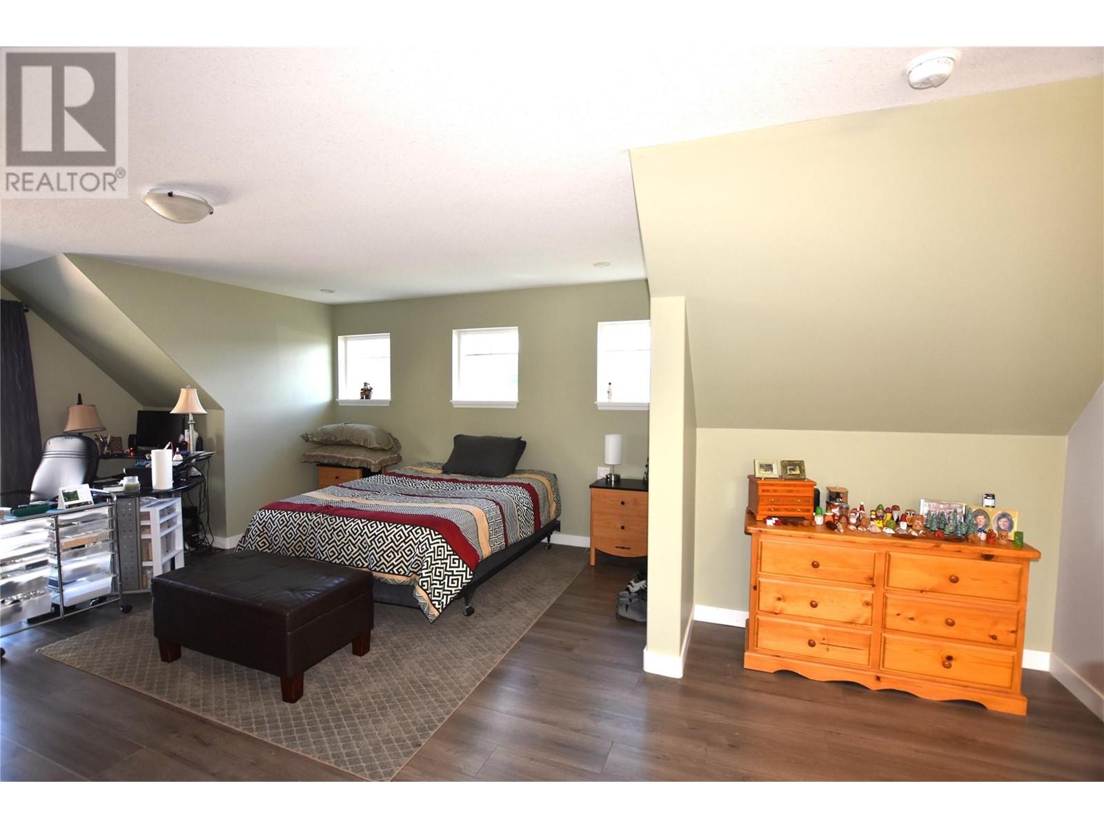 Welcome to 672 Cougar Street in Parker Cove – a beautifully maintained 3-bedroom, 2-bathroom home situated on a quiet corner lot in a serene lakefront community. The main floor features a bright, open-concept living area with gleaming hardwood floors, two spacious bedrooms, a full bathroom, and convenient main-level laundry. Upstairs, you’ll find an expansive primary suite complete with a luxurious 4-piece ensuite that includes dual sinks, a relaxing soaker tub, and a large tiled shower. Sliding glass doors lead from the bedroom to a private upper deck offering stunning lake views. The full, unfinished basement provides ample potential for future development, whether you're envisioning extra living space, a home gym, or a workshop. Additional highlights include an attached single-car garage, a storage shed, and a fully fenced backyard. Recent updates include fresh main-floor paint, new countertops, updated sinks and faucets, and a brand-new washer and dryer. This home is on a registered lease until 2043, with an annual lease fee of $4,069.75. Parker Cove is a welcoming lakeside community on the west side of Vernon, just 25 minutes from town. Residents enjoy access to over 2,000 feet of prime Okanagan Lake shoreline—perfect for relaxing, swimming, and boating. (id:58842)