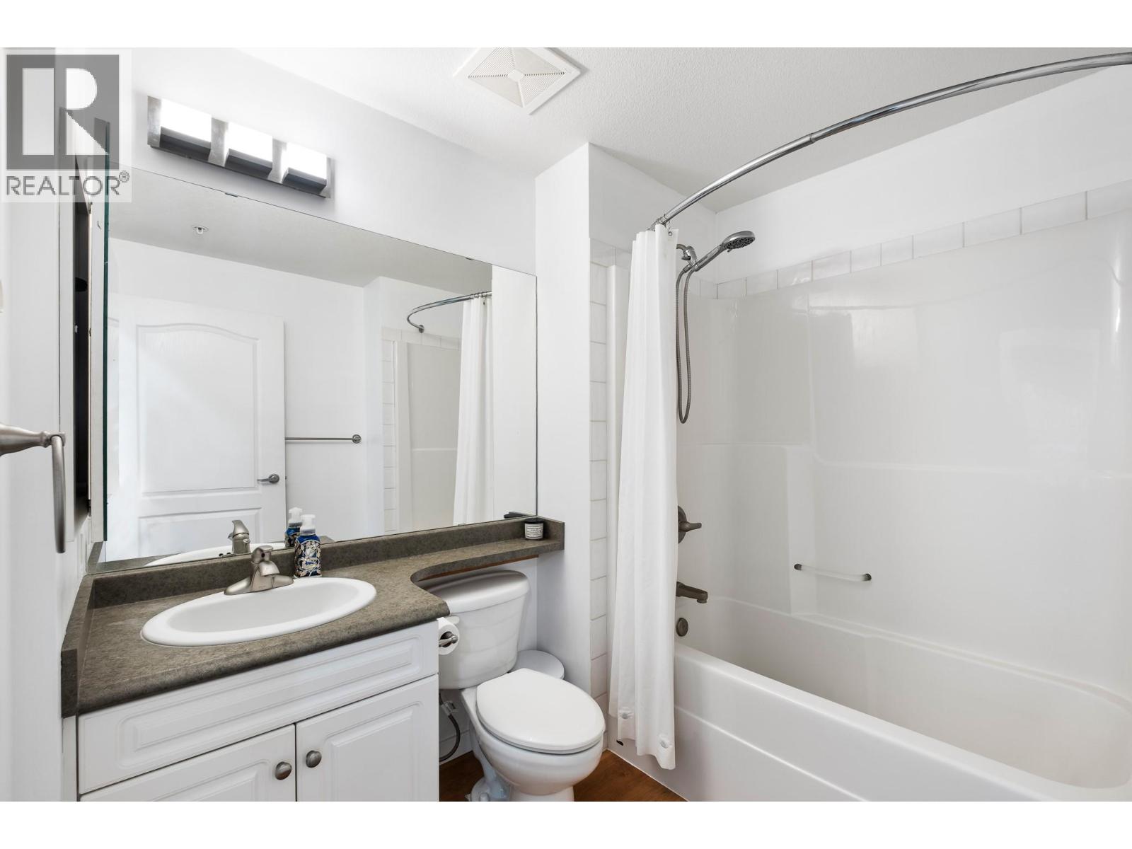 Two parking spots!! Close to the beach this bright freshly painted 2 bedroom condo in the quiet Wildwood III building is situated away from the road. Includes an open concept living and dining area with a gleaming white kitchen with ample counter space and breakfast bar. The living room offers direct access to the covered and private patio boasting mountain views. The condo features updated vinyl plank flooring and a cozy fireplace. The second bedroom would be perfect for a home office or guest bedroom. Many updates, including paint, flooring and LED lighting. This is as good as it gets for location in Kelowna in this highly sought-after central Lower Mission location. One block to beaches and within walking distance to many amenities including restaurants, Starbucks, shopping, public transit, H20 aquatic center, MNP Place, Library, COSA Sailing Centre and The Mission Creek Greenway. Walk to local schools and numerous world renown wineries and golf courses nearby. Bring your furry friends with 1 pet allowed (dogs-14"" at shoulder), No age restrictions. Many extras with guest suite for rent, peace of mind with secure underground assigned parking with additional outside unassigned spot and large storage locker. Kelowna has superb Okanagan summer and winter climates with year round recreational opportunities. (id:58842)