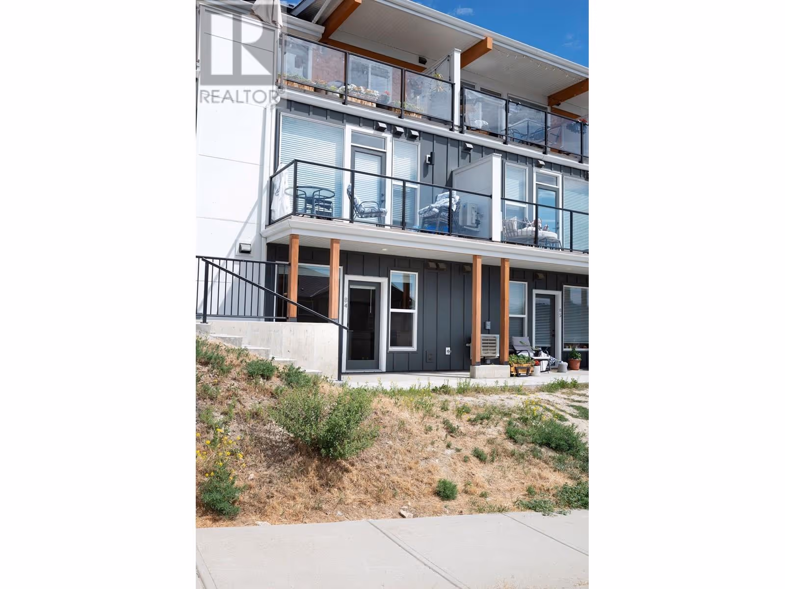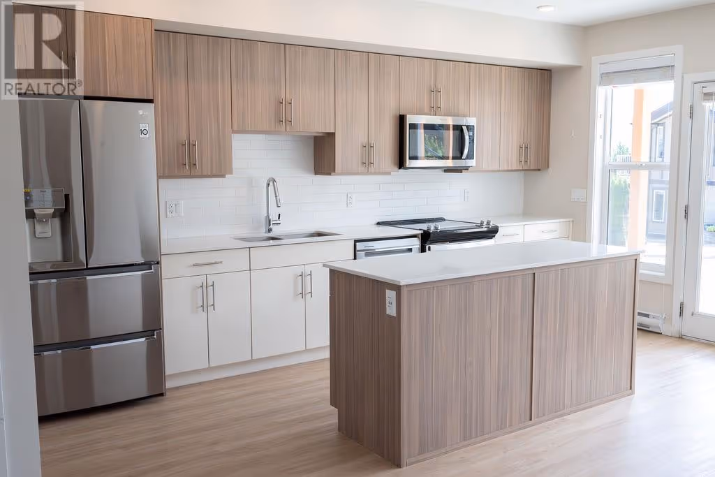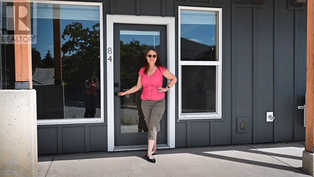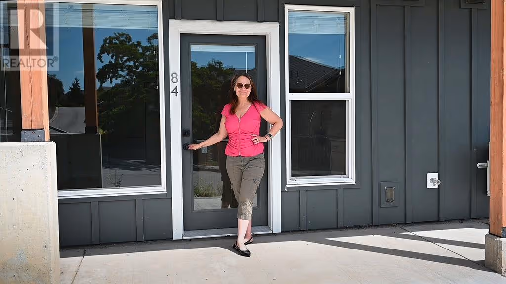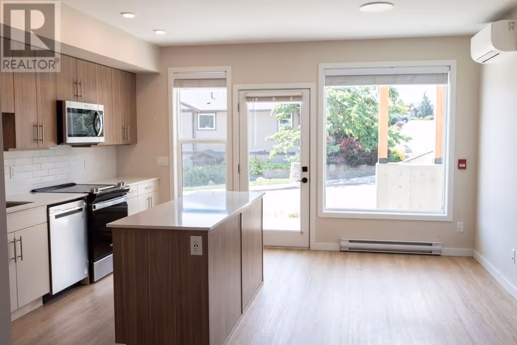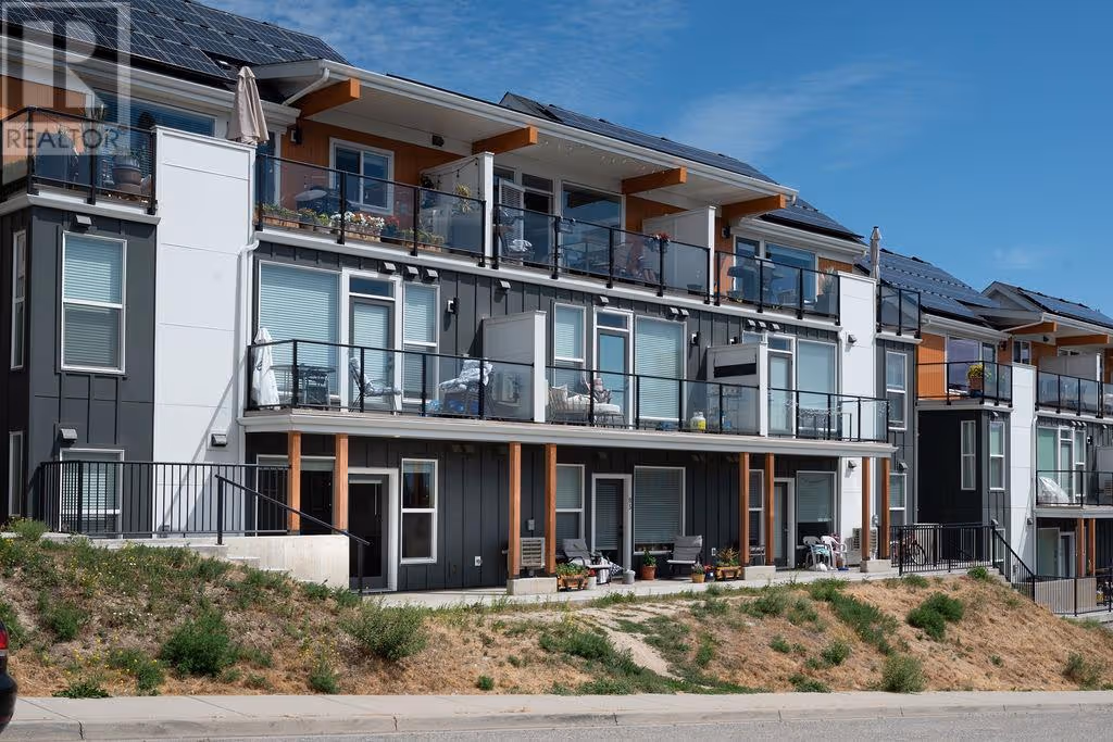 Welcome to the highly sought-after Promontory development. This is 2 2-bedroom, 2 bathroom ground floor townhome. Designed for comfort and style, this bright and airy home features an efficient layout with high ceilings, easy-care flooring, and plenty of natural light. The modern kitchen includes quartz countertops, a large island, and luxury stainless steel appliances, with a stacked washer and dryer adding everyday convenience. Enjoy eco-friendly living with solar-powered heating and cooling, green energy features, and data center upgrades. Just steps from Knox Mountain Park, Kathleen Lake, and Glenmore Ridge Trails, and only minutes from Downtown Kelowna, Okanagan Lake, restaurants, wineries, UBCO, and the airport. This unbeatable location offers both nature and urban amenities at your fingertips. Pet and rental friendly (2 dogs, 2 cats, or 1 of each allowed). Ideal for first-time buyers or investors. Immediate possession available—don’t miss out! (id:58842)