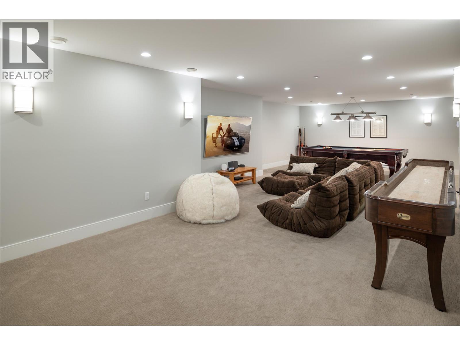 Where privacy meets nature. A treelined driveway at the end of a quiet cul-de-sac opens to a park-like, meticulously landscaped, fully-fenced .67-acre yard adjoining Predator Ridge's trails and green space. Rare for the community, this expansive lot offers sweeping southern views, triple garage plus RV parking with room to breathe. Step inside this captivating custom 2015 Wesbild prairie-style rancher and experience seamless one-level living, where sun-drenched open spaces and cathedral ceilings blur the line between inside and out. The showpiece kitchen features a nine foot island with Sub-Zero, Miele & Wolf appliances, perfect for everyday living and entertaining. A 1520 square foot south-facing covered veranda that is sun-drenched in winter and naturally shaded in summer, creates the perfect outdoor lounge, dining, and entertaining space year-round. Two primary suites with ensuites and walk-in closets, two additional bedrooms, soundproofed media room with 80"" TV and surround sound, custom cabinetry, LUTRON lighting and CAT-5 throughout. Heated epoxy-floored triple garage with workshop plus RV/boat parking. An 720 sf lower-level games and recreation room completes this exceptional home. A rare rancher where lot, location and lifestyle align. PREDATOR RIDGE IS EXEMPT FROM BC SPECULATION AND VACANCY TAX. (id:58842)