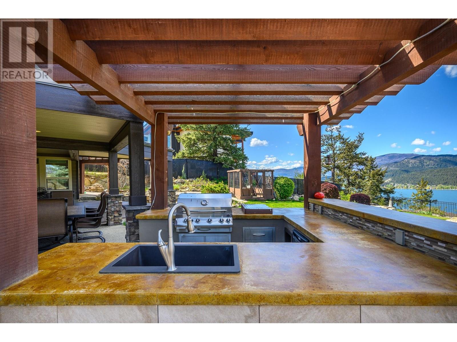 *Seller Motivated* Vacant. Quick Possession. This residence & property is truly in a league of its own. Step into a realm of unparalleled elegance & exclusivity with this exceptional lake view estate on .82 acres of serene privacy with grand garage package & guest house. Offering over 5000 sq. ft. of opulent living space, this residence is a testament to refined living. The main level boasts a spacious open kitchen with granite counters, seamlessly flowing into expansive dining & living areas adorned with vast windows framing breathtaking views of the lake. Step onto your covered deck, complete with a built-in kitchen. Descend into the basement to discover a media room & bar area, leading to the ultimate backyard oasis. Here, entertainment knows no bounds with a luxurious hot tub & outdoor kitchen, perfect for hosting unforgettable gatherings. The garage package is simply unmatched with a colossal 2100 sq. ft. space featuring a 20-foot door & doubles as a regulation pickle-ball court. The driveway provides a 2nd access to the upper level with unlimited parking space & RV hook-up. Safety & functionality are paramount with 400 amp service & fire suppression system. Residents gain exclusive access to a privately shared beach & boat launch area just minutes away. Located in the highly sought-after Adventure Bay area all within reach of the Okanagan's four-season lifestyle amenities. Own a piece of paradise. Contact the Listing Agent or your Agent today to schedule a viewing. (id:58842)