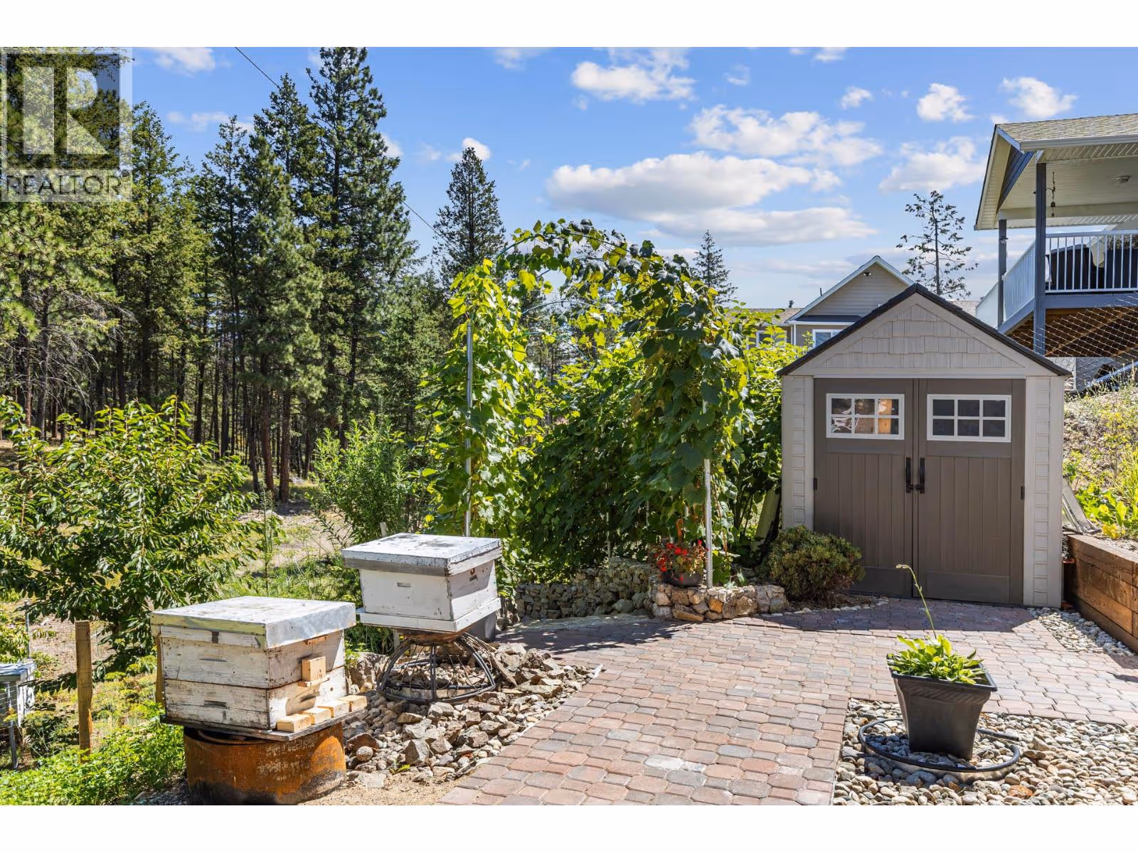 A Gardener’s Dream Home. This 4 bedroom, 3 bathroom walkout rancher with potential for a 1 bed 1 bath in-law suite is situated on a large lot with a private view into the forest with over 42 fruit trees, electric fenced vegetable garden beds and garden sheds for storage. There are 3 bedrooms, 2 full bathrooms upstairs. A fully finished basement with 1 bedroom, 1 bathroom, large living room, separate laundry and plumbed in for a kitchen. Separate laundry installed. Perfect place to start out or for those who want to enjoy a more peaceful rural lifestyle. A tranquil, quiet setting, located in Fintry, only a scenic 30 minute lakeside drive from Kelowna and Vernon. There's ample parking with a double car garage, additional space for an RV and a Boat. Fintry public beach and boat launch are just minutes away. Endless trails for all the toys directly outside your doorstep. This place is like a four-season playground! (id:58842)