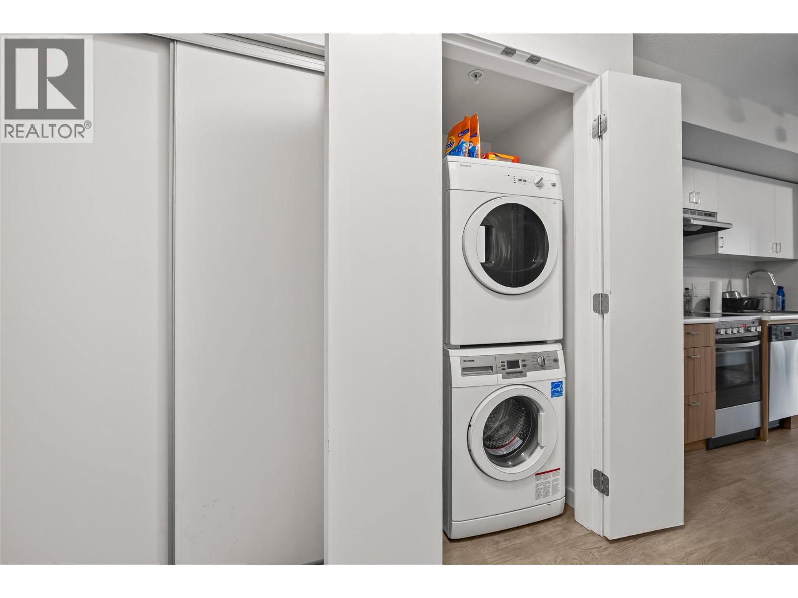 A furnished studio condo designed for student living at U6 in the University District makes a great investment (buy for your student and pay yourself not a landlord; or great rental opportunity). Currently tenanted through April 2026. Quiet location, minutes from campus, this bright condo makes the perfect spot for a student to unwind, relax and call home. Efficiently designed floorplan with modern appliances including fridge, stove, microwave, dishwasher and in-suite laundry for added convenience. A spacious patio with valley views extends living space outdoors. Bring your car! 1 parking spot (plus guest parking pass) included. Just minutes from UBCO, perfect for a student or faculty member. Close to YLW, making it easy for frequent travel. Plus Nester's Market, restaurants and shops, golf courses, Kelowna Family Y are all minutes away. (id:58842)