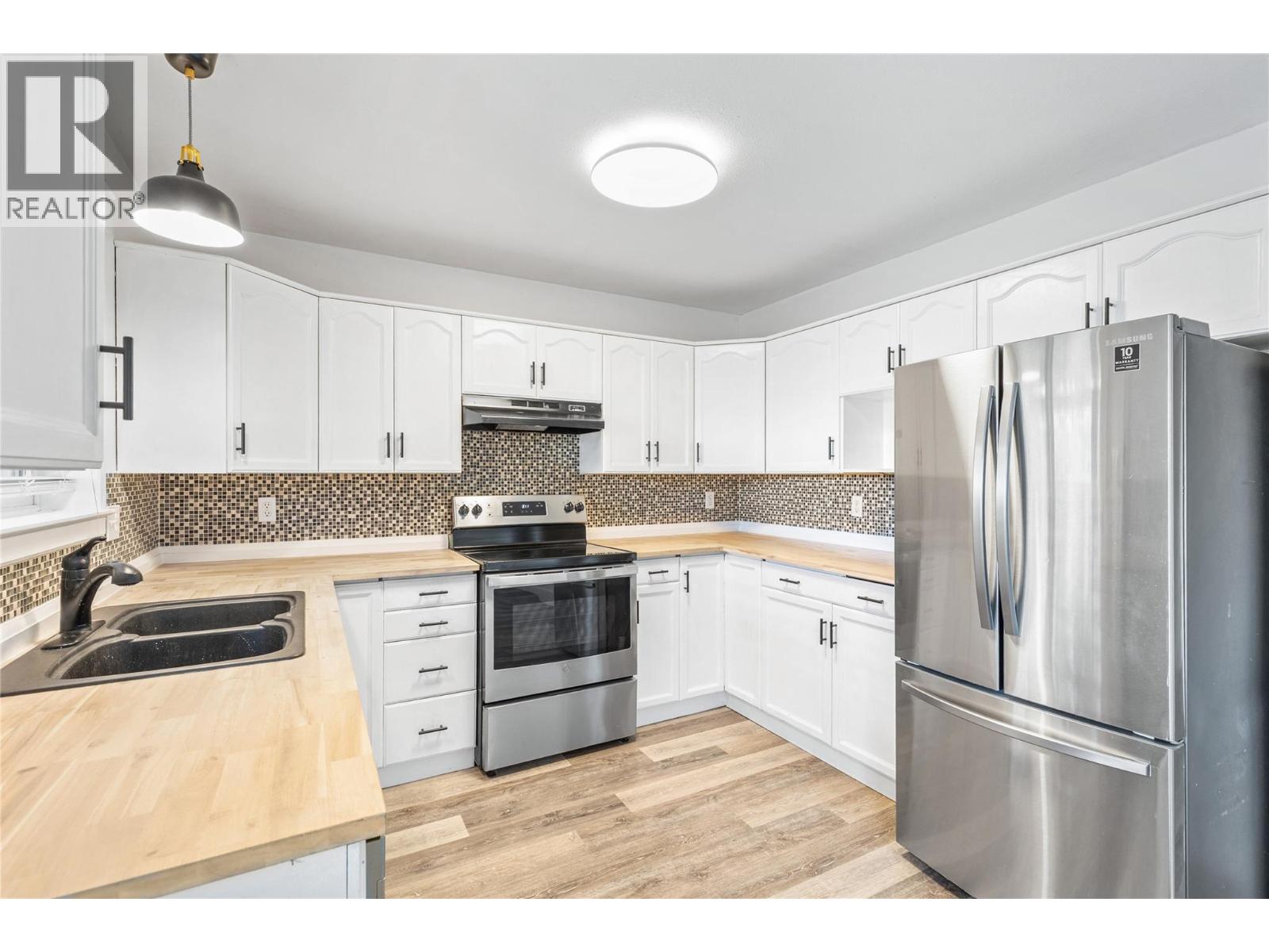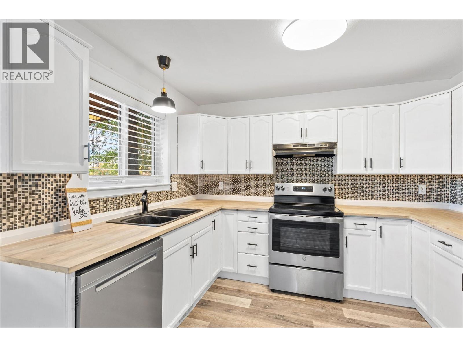 Welcome to Lakeshore Village — a highly desirable community just one street from the sparkling waters of Okanagan Lake. This spacious three-level standalone home offers over 1700 sq. ft. of comfortable living space with 5 bedrooms and 3.5 bathrooms, perfectly suited for families or anyone seeking extra space. Set on a quiet cul-de-sac surrounded by green space, this home is steps from Marshall Fields, Lakers Park Disc Golf Course, and the shores of Okanagan Lake. Combining functionality, comfort, and location, this Lakeshore Village gem offers the best of Vernon’s relaxed lake lifestyle with a welcoming, community feel. Thoughtfully updated and well cared for, the home features a new roof (2023), replaced Poly-B plumbing, fresh interior paint, new front steps, a newer A/C unit, updated flooring, refreshed kitchen counters, and modern lighting throughout. The main floor offers an inviting flow between the kitchen, dining, and living areas—ideal for gatherings and everyday living. Upstairs, generous bedrooms provide plenty of space for family or guests, while the fully finished lower level with a separate entrance opens the door to multiple possibilities, including an in-law suite, home office, or rental opportunity. The single-bay garage adds extra storage and convenience. Enjoy the charm of the covered front porch—perfect for morning coffee or evening visits with neighbors—and unwind on the covered back deck overlooking the peaceful yard. (id:58842)