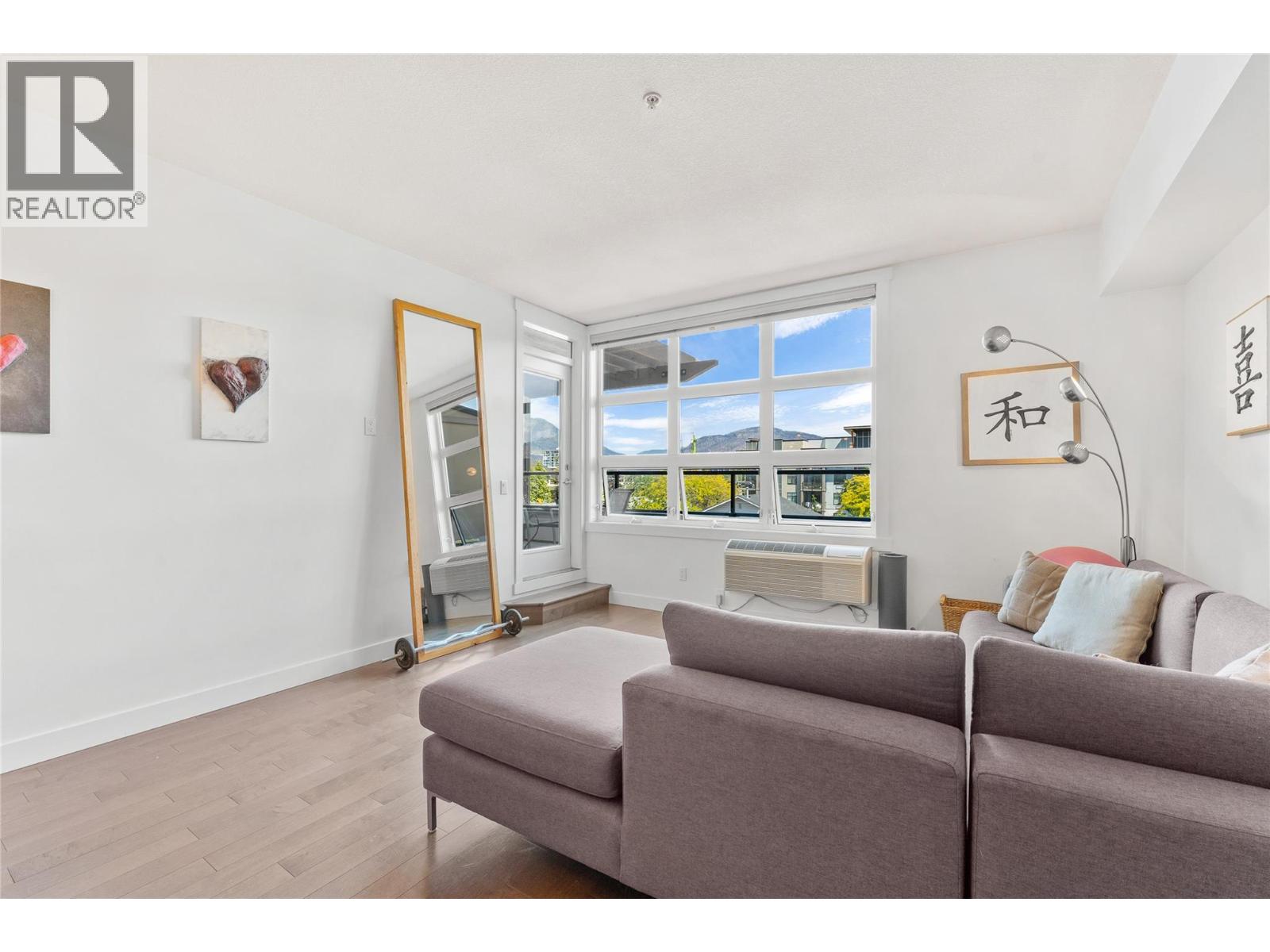 Welcome to #307 700 Martin Avenue! Located at the Martin Lofts – a boutique condo building in downtown Kelowna – this beautiful, well-appointed north-facing 1-bedroom, 1-bathroom unit includes 736 sq. Ft of living space with a huge outdoor balcony! This unit features a modern design, with bright, open living space and natural light throughout. The kitchen is equipped with white cabinets, modern backsplash, black appliances, and opens onto the dining area and living room with direct access to a large private balcony – perfect for morning coffee, evening relaxation, or entertaining friends. Whether you are a first-time home buyer, investor, or looking for a low-maintenance home in a prime location, this unit offers the lifestyle and convenience you are looking for. Located just outside of the downtown core – walk to restaurants, breweries, wineries, public transit, Waterfront Boardwalk, and City Park. One heated underground parking stall and storage locker included. Amenities include a fitness centre, secure bike storage, and electric vehicle (EV) charging stations. Rentals are allowed, with restrictions (min. 30 days), and pets are also allowed, with restrictions (one dog or one cat). (id:58842)