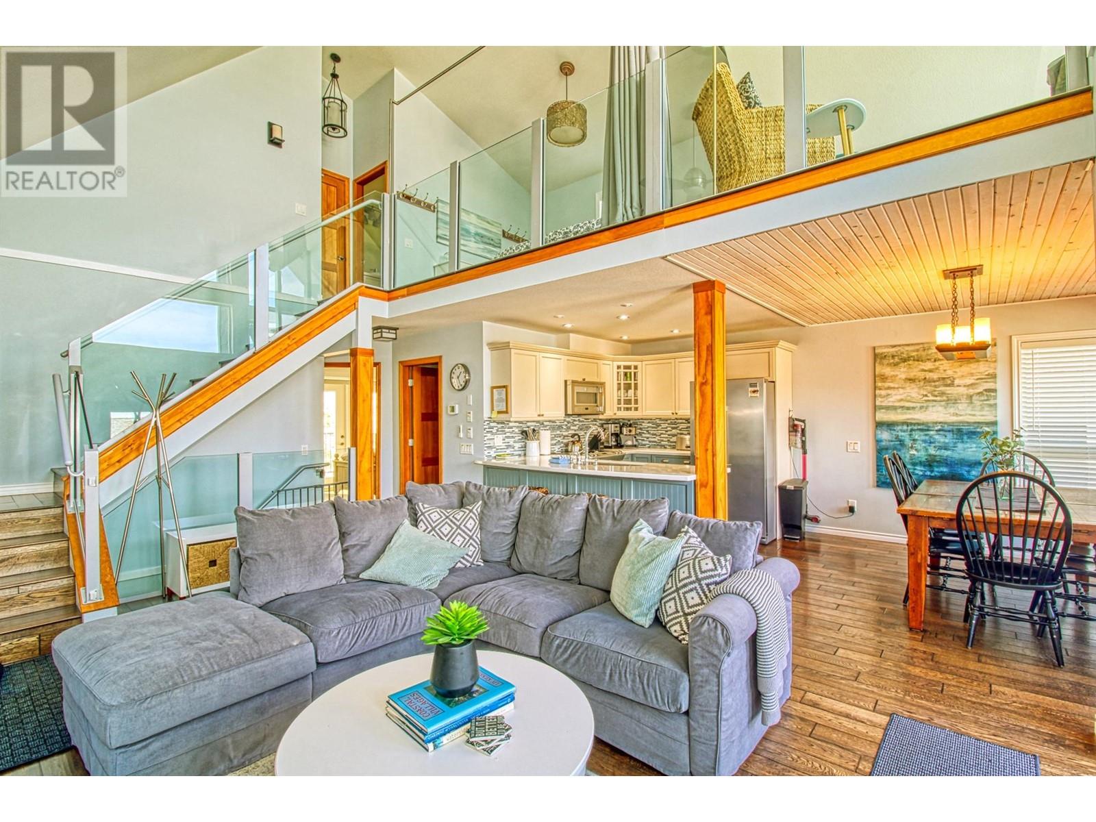 Beautifully presented La Casa Cottage CLOSE TO LAKE & Marina with LARGE DECKS front & rear, LAKE VIEW from front deck & living/dining area. SHORT TERM RENTALS ALLOWED, offered Fully Furnished & Turnkey ready for you or your guests. High Quality finishes & Appliances throughout. Lots of space to relax with 3 Bedrooms plus Den plus Finished Basement Rec room. Large PRIVATE REAR DECK to catch or escape the Okanagan Sun depending on the time of day, accessed from both Main floor bedrooms & walk around from entry landing . Garage/basement Rec Room accessed inside from Main floor. Easy care grounds with concrete driveway & synthetic lawn. Easy Short Walk or golf cart ride to the beach & marina. La Casa Resort is Freehold ownership, open YEAR-ROUND for you or VACATION RENTAL guests to enjoy (La Casa is unaffected by recent Air bnb restrictions). You choose whether to keep for yourself, rent out some of the time or use an on-site company if you want a 'hands-off' investment. La Casa Resort Amenities: Beaches, sundecks, Marina with 100 slips & boat launch, 2 Swimming Pools & 3 Hot tubs, 3 Aqua Parks, Mini golf, Playground, 2 Tennis/Pickleball Courts, Volleyball, FirePits, Dog Beach, Upper View Park and Beach area Gated & Private Security, Owners Lounge, Owners Fitness/Gym Facility. Grocery/liquor store on site plus Restaurant. (id:58842)
