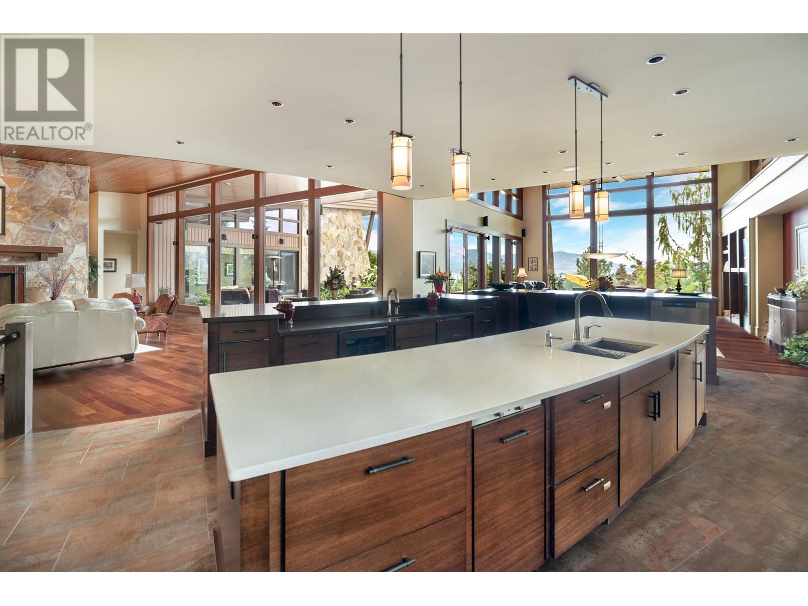 rchitectural masterpiece in the sought-after Upper Mission, where luxury meets nature in a tranquil, gated setting. This spectacular 1.2-acre property is a landmark residence seamlessly blending into its mature, park-like surroundings. With breathtaking views of the city and lake, this home offers timeless sophistication & serenity. From the moment you step inside, you’ll be captivated by the grand elegance. Soaring ceilings, from 20 to 22 ft, and expansive windows bathe the interior in natural light, highlighting the craftsmanship. The custom wood and rock detailing on the exterior is carried into the interior, creating a seamless connection. Inside, every detail has been meticulously crafted, from the Brazilian cherry hardwood floors & Italian porcelain tile to the wool carpets and walnut cabinetry. The gourmet kitchen is a chef’s dream, featuring 3 islands, professional appliances, and ample space for entertaining. The main floor primary retreat is a sanctuary of luxury, with an opulent ensuite & 2 walk-in closets. 3 add’l beds offer comfort and privacy for family & guests. This home is designed for entertainment and relaxation, boasting amenities such as a temp-controlled wine cellar, home theatre, expansive rec room, and a home gym. Outside, the resort-style backyard is a true oasis, featuring a tiered landscaping, a saltwater pool w/ a water feature, seating areas, a BBQ area, grassy play spaces, fenced dog run, and private courtyards. This residence is a rare find. (id:58842)